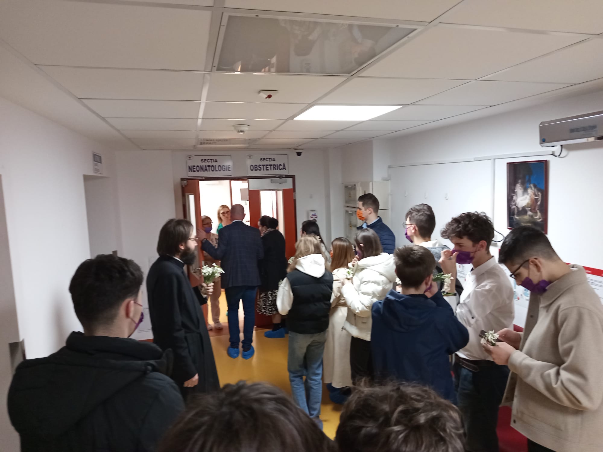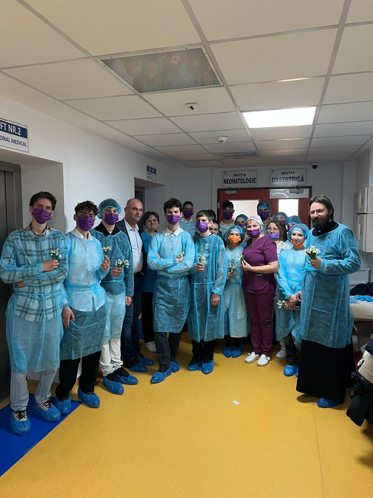 Ultima oprire a fost la Rădăuți, la Spitalul Municipal „Sfinții Doctori Cosma și Damian”. Însoțiți de domnul manager Bogdan Alupoaie și de doamna director de Îngrijiri medicale Foca Angelica, tinerii noștri au oferit flori multe mămicilor de la Neonatologie, Maternitate-Ginecologie și femeilor internate la Secțiile Chirurgie Generală, Ortopedie Traumatologie, Oncologie și Neurologie.