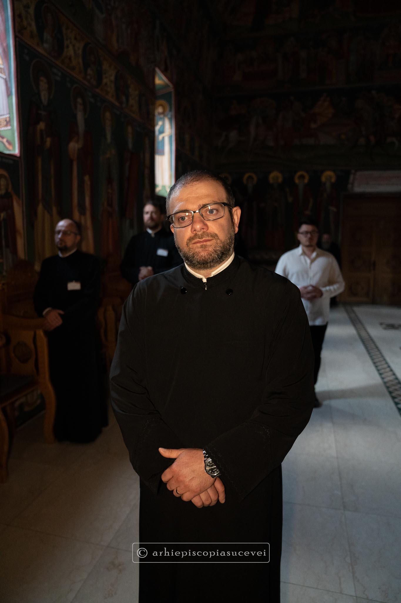 În dimineața zilei de luni, 17 iunie 2024, 18 clerici din cele 5 protopopiate ale eparhiei, precum și membri ai Sectorului Educațional-Teologic al Centrului Eparhial Suceava, pr. Ionuț Isopescu, consilier eparhial, și arhid. Marius Gabriel Filip, director departament, au participat la Sfânta și Dumnezeiasca Liturghie săvârșită de către Preasfințitul Părinte Damaschin Dorneanul, Episcop-Vicar, în biserica mare a Mănăstirii Sihăstria Râșcăi, cu hramul „Sfântul Ioan de la Râșca și Secu”. Aceștia au audiat apoi prelegerile susținute de formatorii invitați în cadrul evenimentului și au luat parte la sesiunile de dialog.
