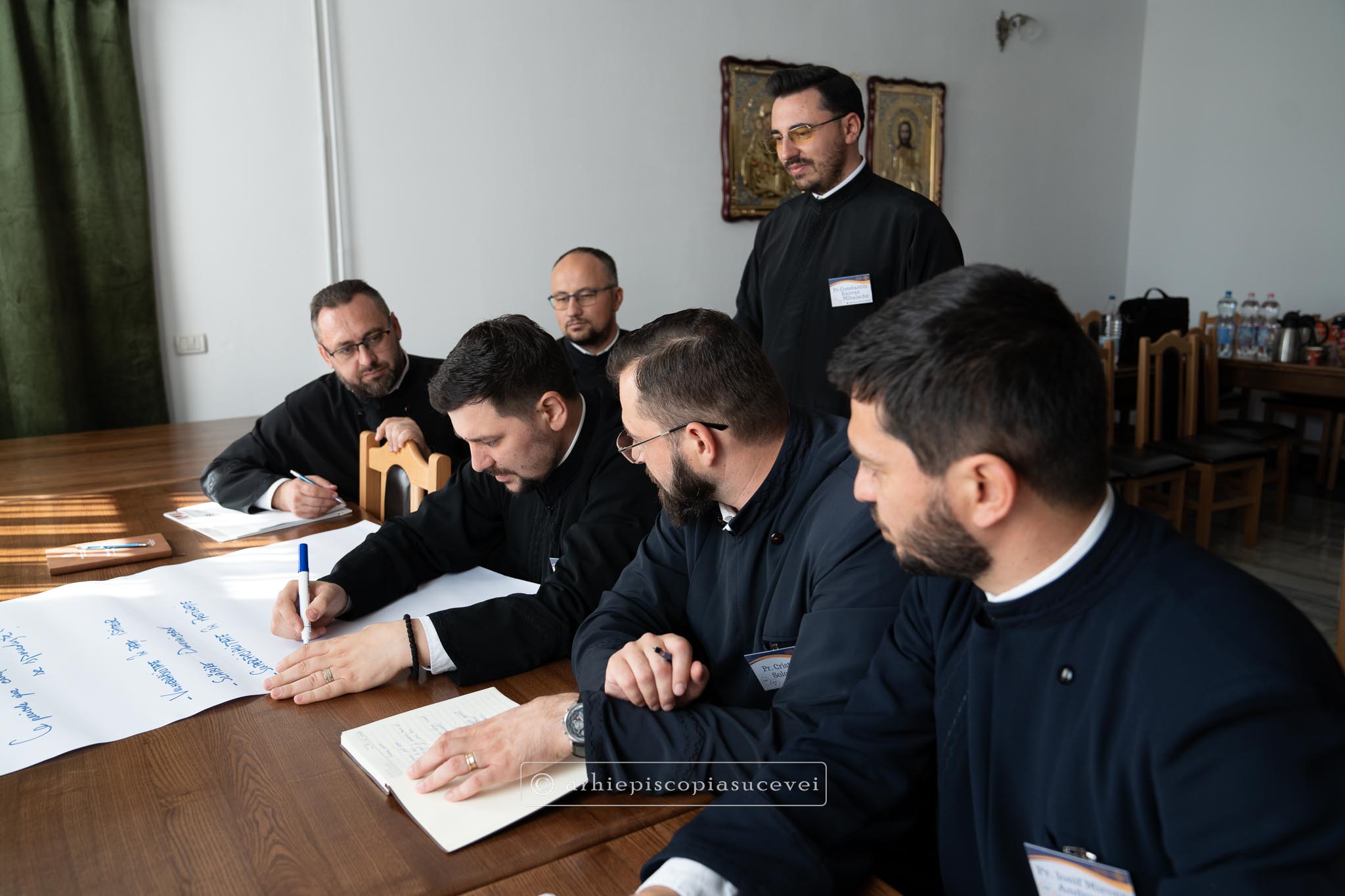 Urmând îndemnurile regăsite în Decalogul preotului, text alcătuit de Înaltpreasfințitul Părinte Calinic, Arhiepiscop al Sucevei și Rădăuților, între care „Fă-te pildă păstoriților tăi pentru a câștiga sufletele lor pentru veșnicie prin modul tău de a fi, cu slujirea, cu cuvântul și cu fapta, cu credința și dragostea”, zilele acestea se desfășoară în eparhia noastră cea de-a doua ediție a cursurilor de formare pentru tinerii preoți ai eparhiei. Potrivit organizatorilor, programul de formare conceput în mod special pentru a veni în sprijinul preoților recent hirotoniți oferă prilejul aprofundării și sintetizării informațiilor asimilate în timpul anilor de studiu, dar și experiențe concrete în cadrul atelierelor și seminariilor care vizează componenta practică a vocației în slujirea preoțească. La finalul cursului participanții se vor bucura de „un bagaj de resurse motivant și formator, precum și de o traiectorie verificată în ceea ce privește misiunea pastorală”.