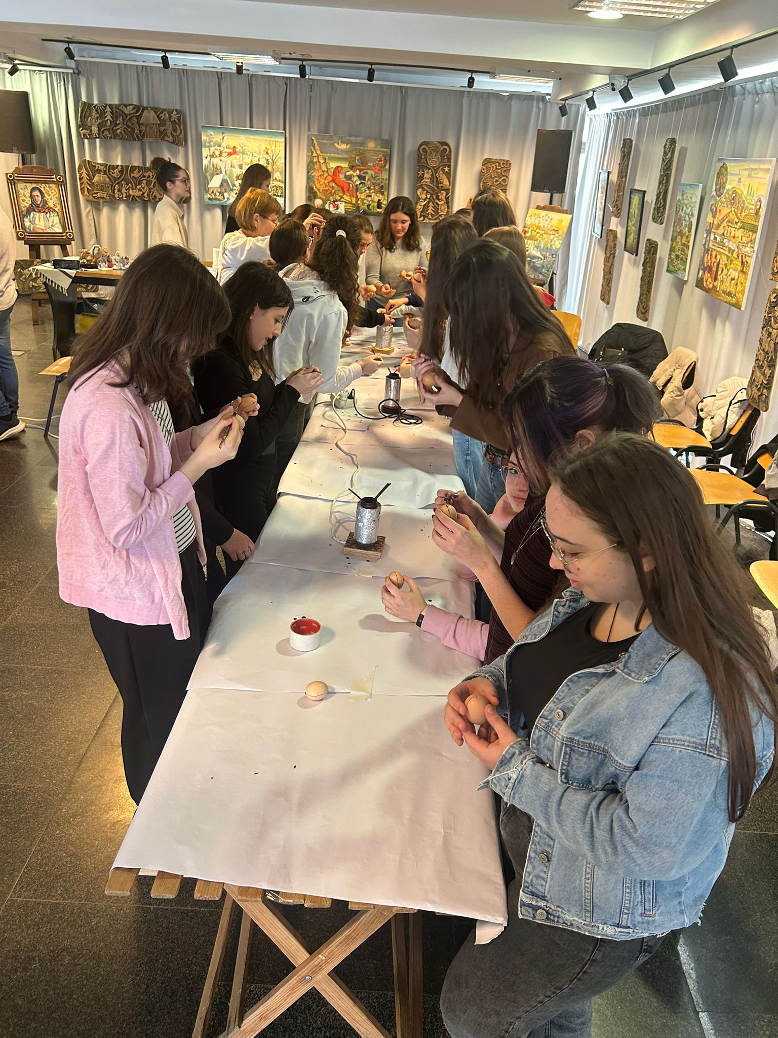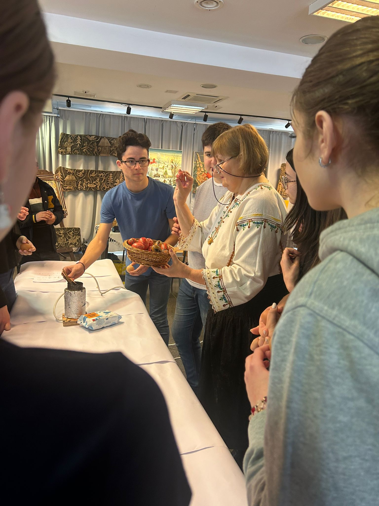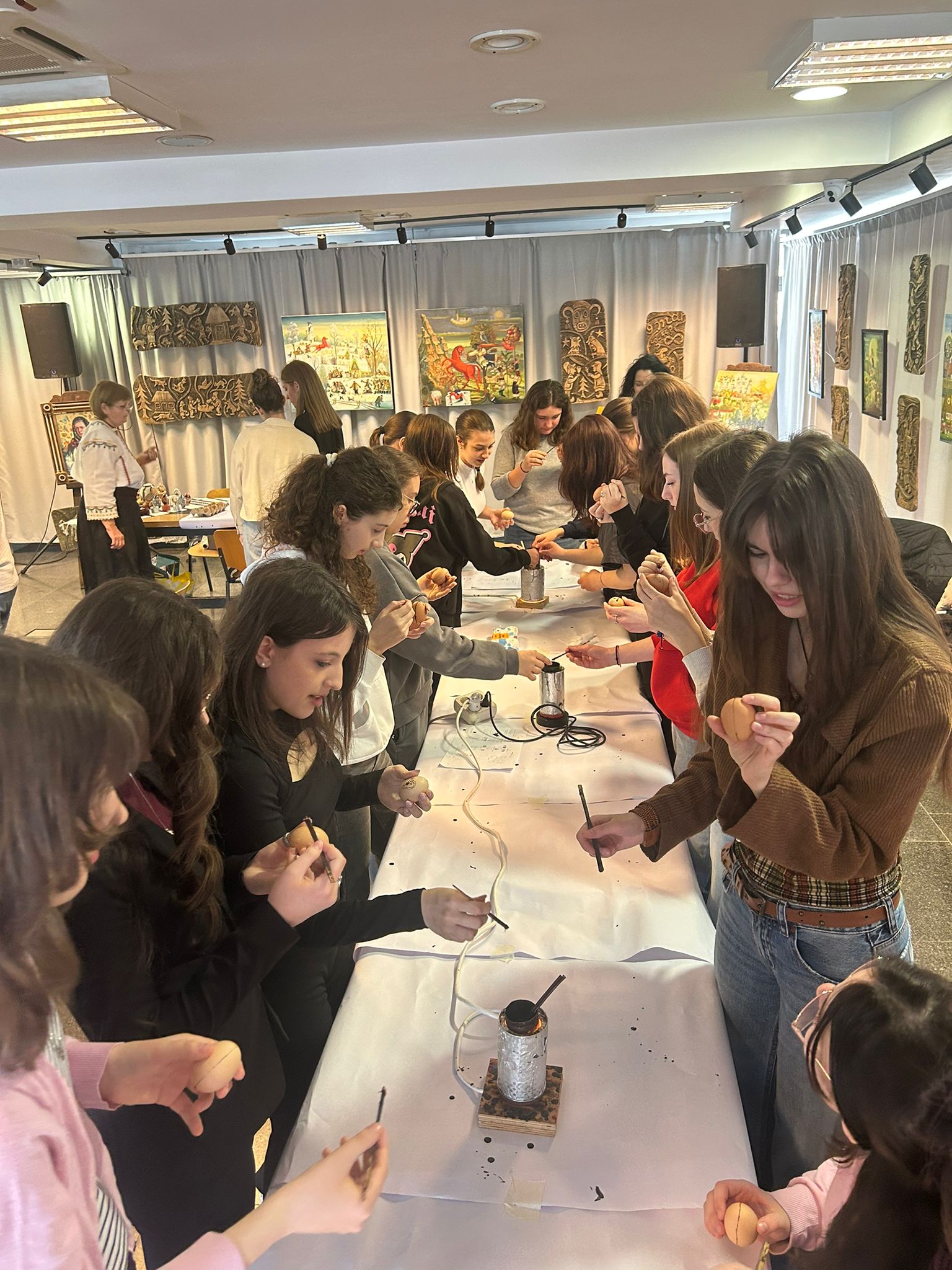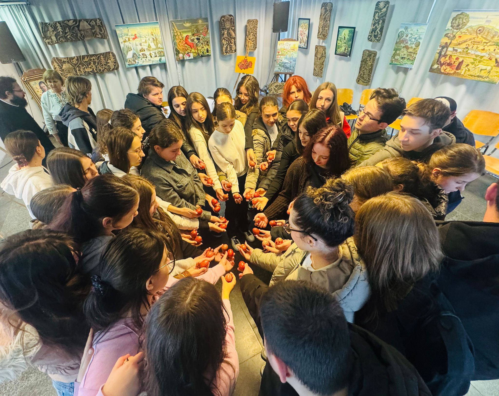 Bucurie mare a fost pentru tineri admirarea unei mici expoziții de ouă încondeiate (ouă de găină, de gâscă, de prepeliță și de struț). După acest moment au urmat tineri artiști muzicieni talentați, care au susținut un concert și au cântat la pian.