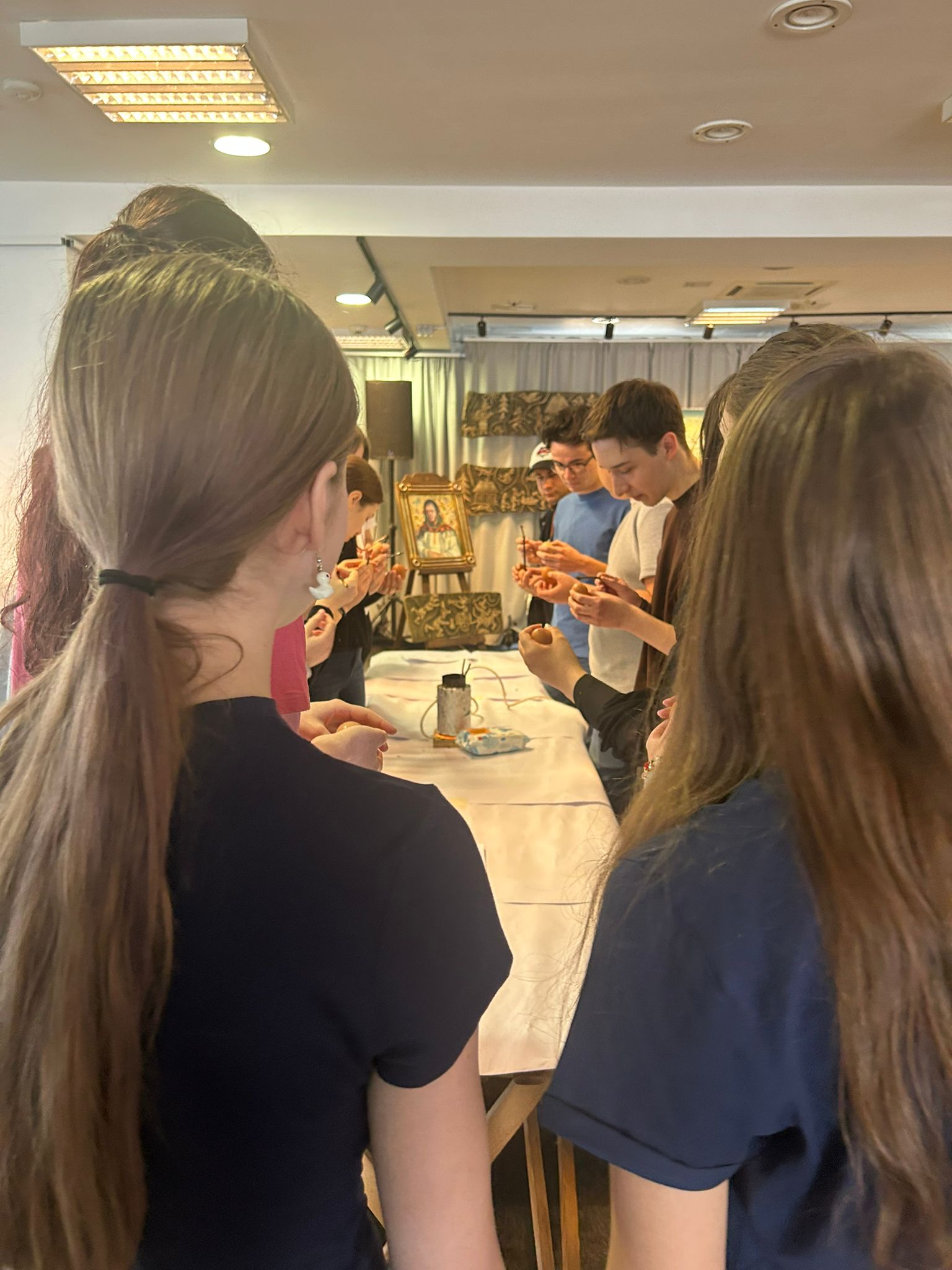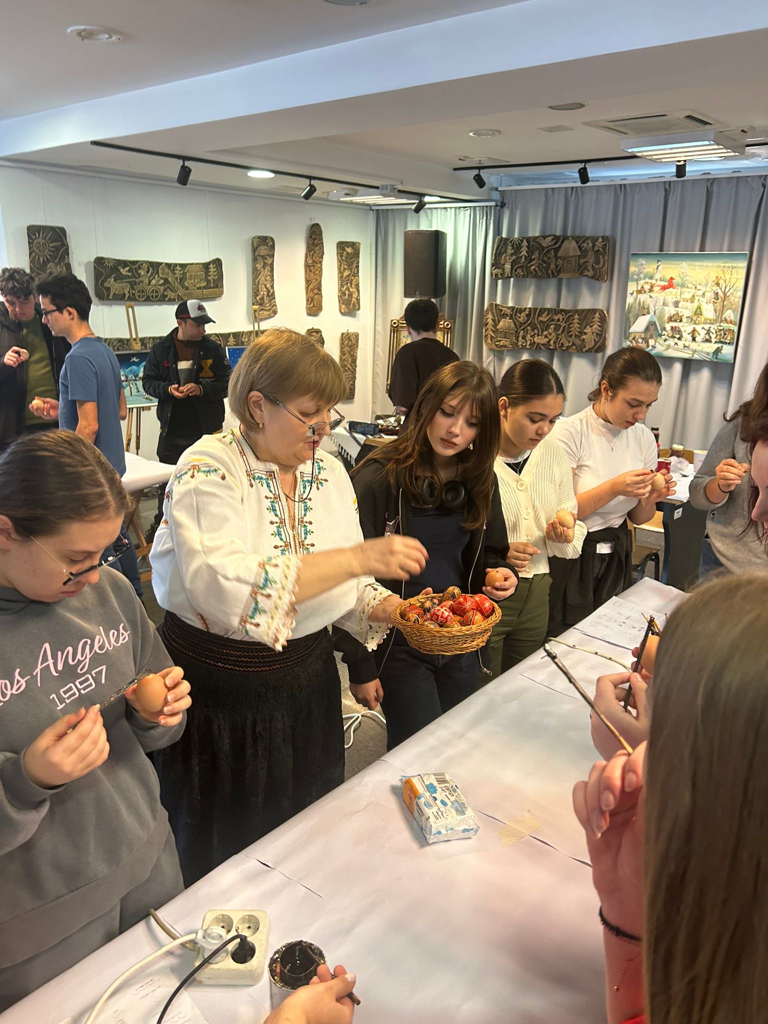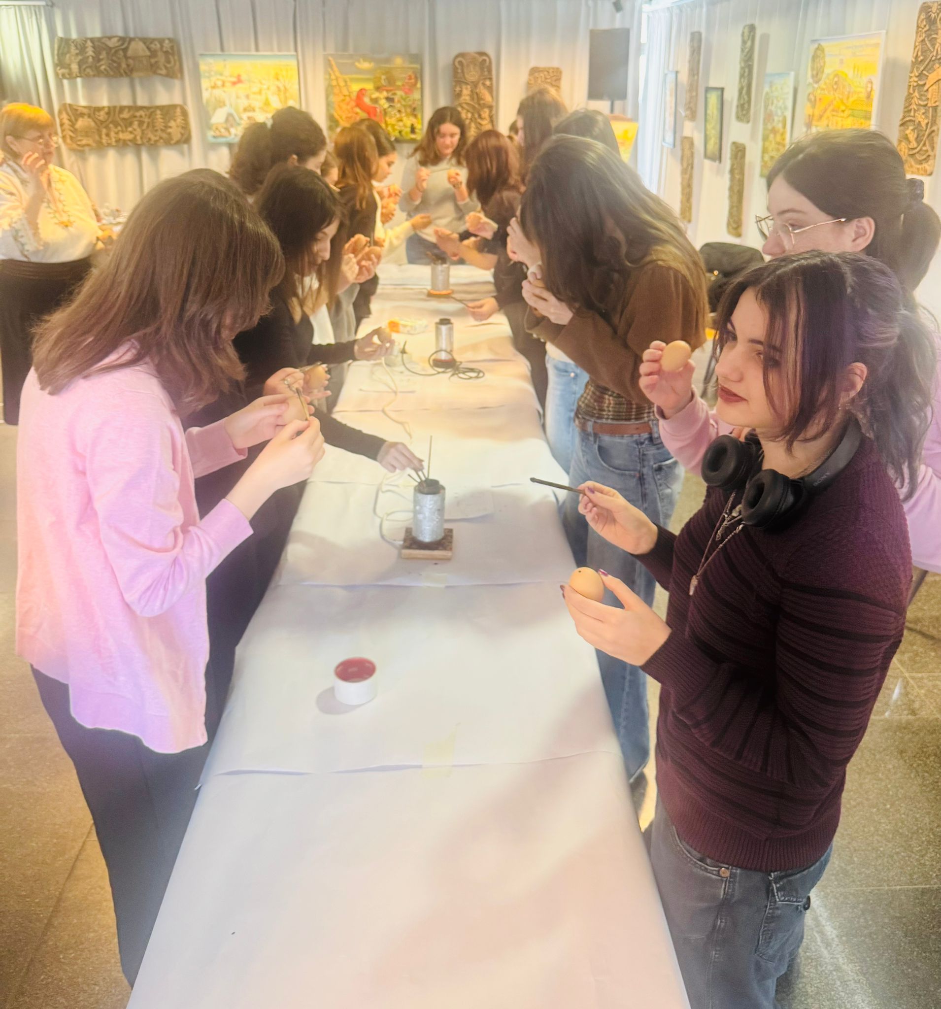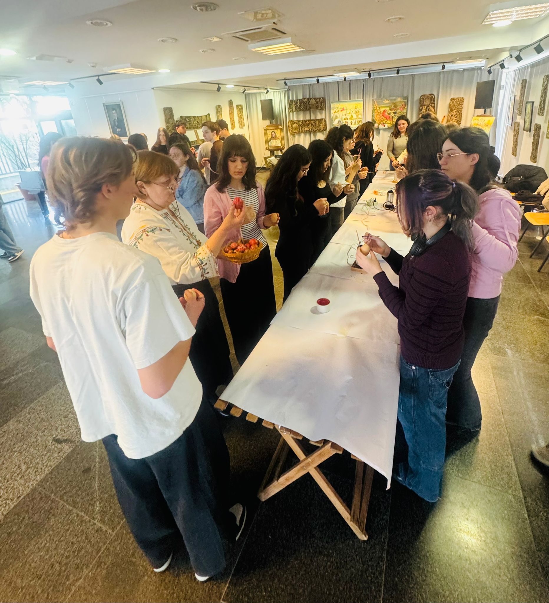 Bucurie mare a fost pentru tineri admirarea unei mici expoziții de ouă încondeiate (ouă de găină, de gâscă, de prepeliță și de struț). După acest moment au urmat tineri artiști muzicieni talentați, care au susținut un concert și au cântat la pian.