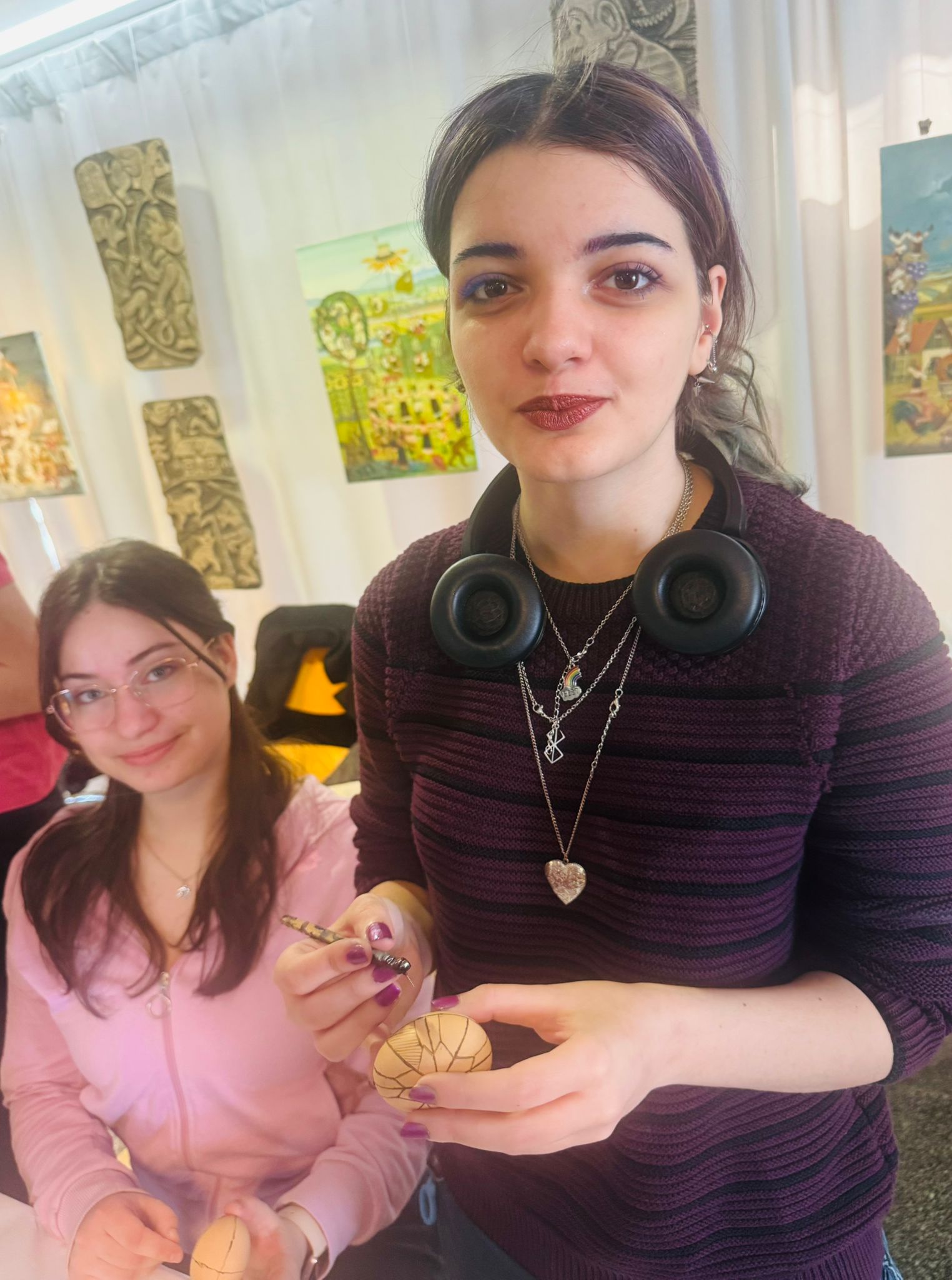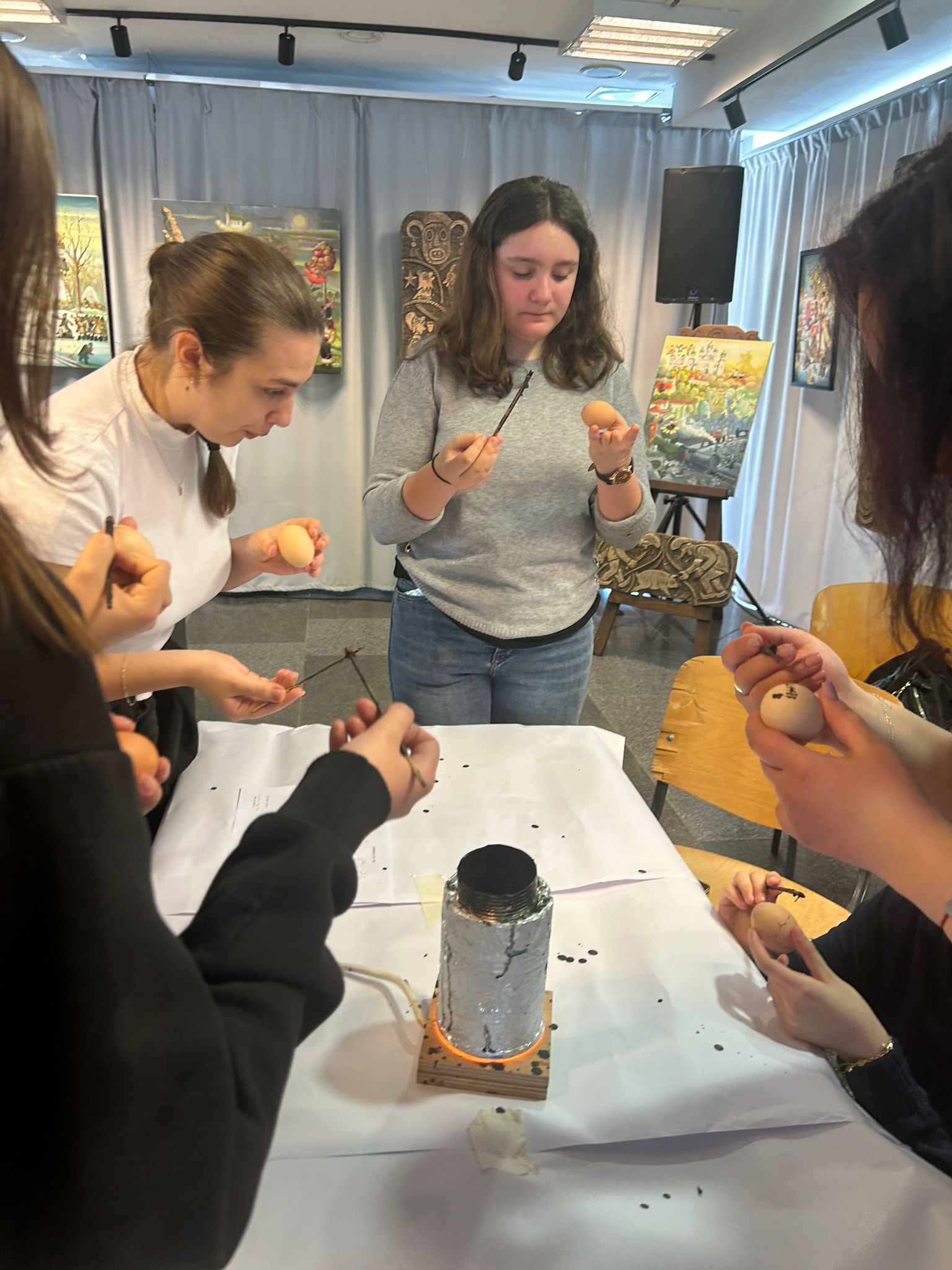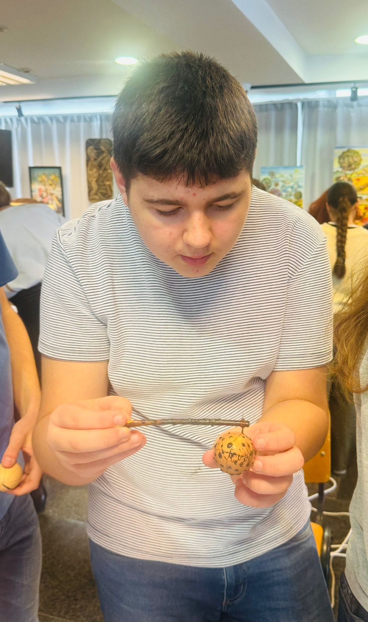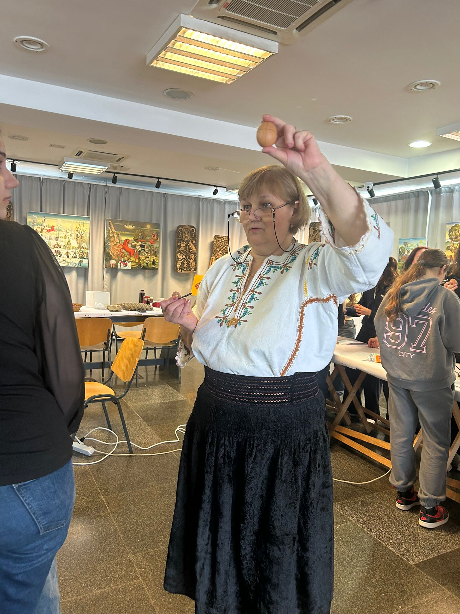 Bucurie mare a fost pentru tineri admirarea unei mici expoziții de ouă încondeiate (ouă de găină, de gâscă, de prepeliță și de struț). După acest moment au urmat tineri artiști muzicieni talentați, care au susținut un concert și au cântat la pian.