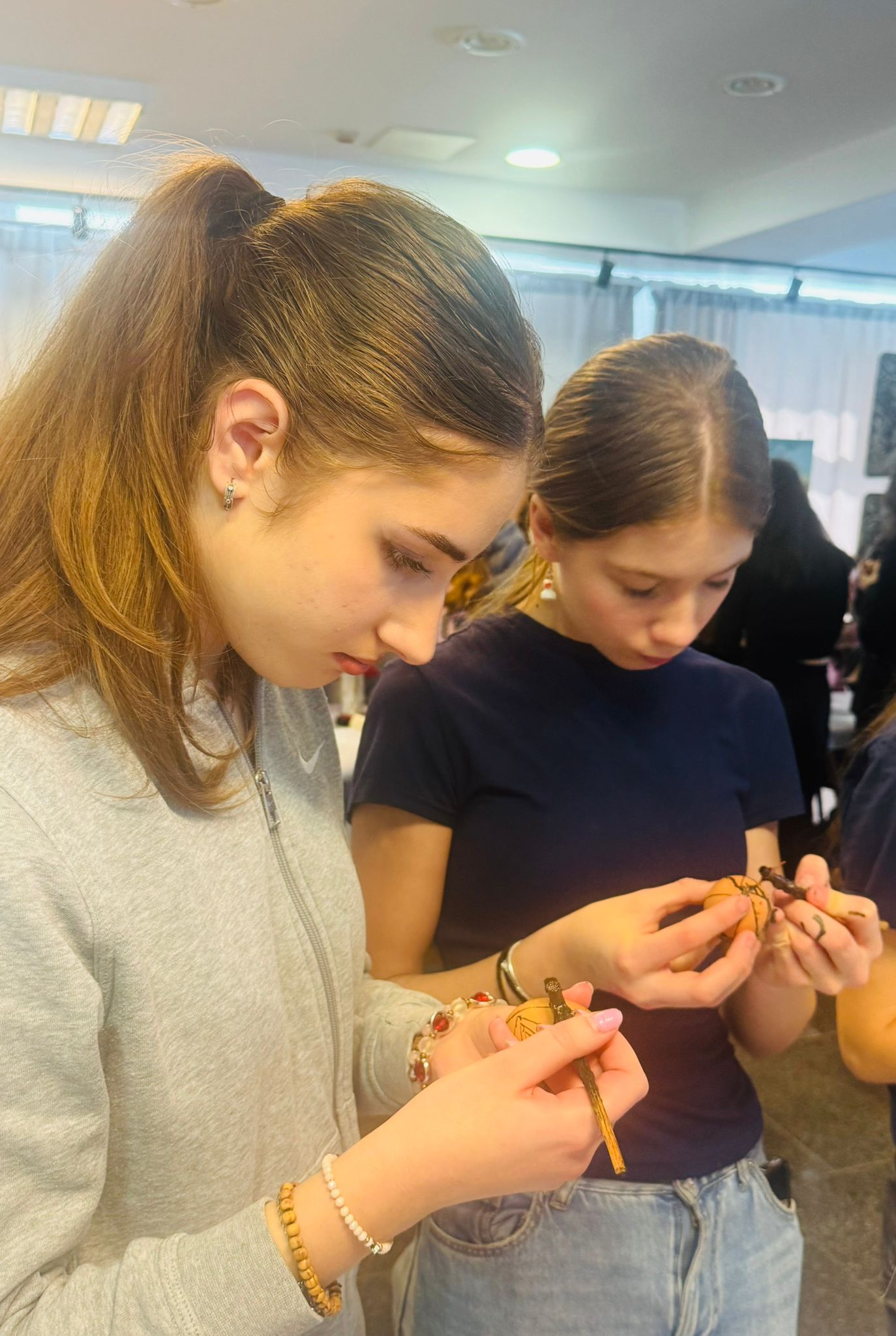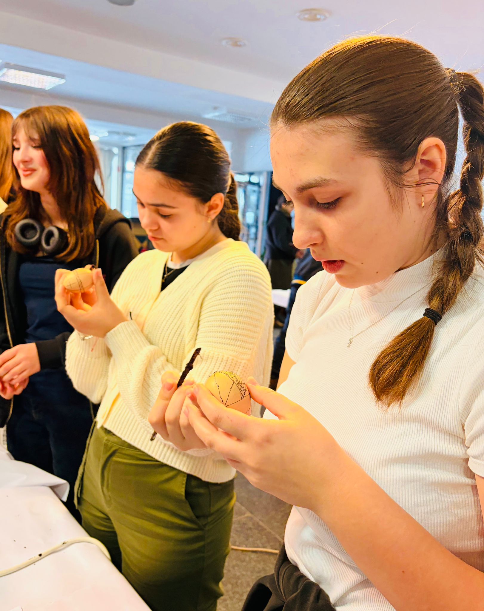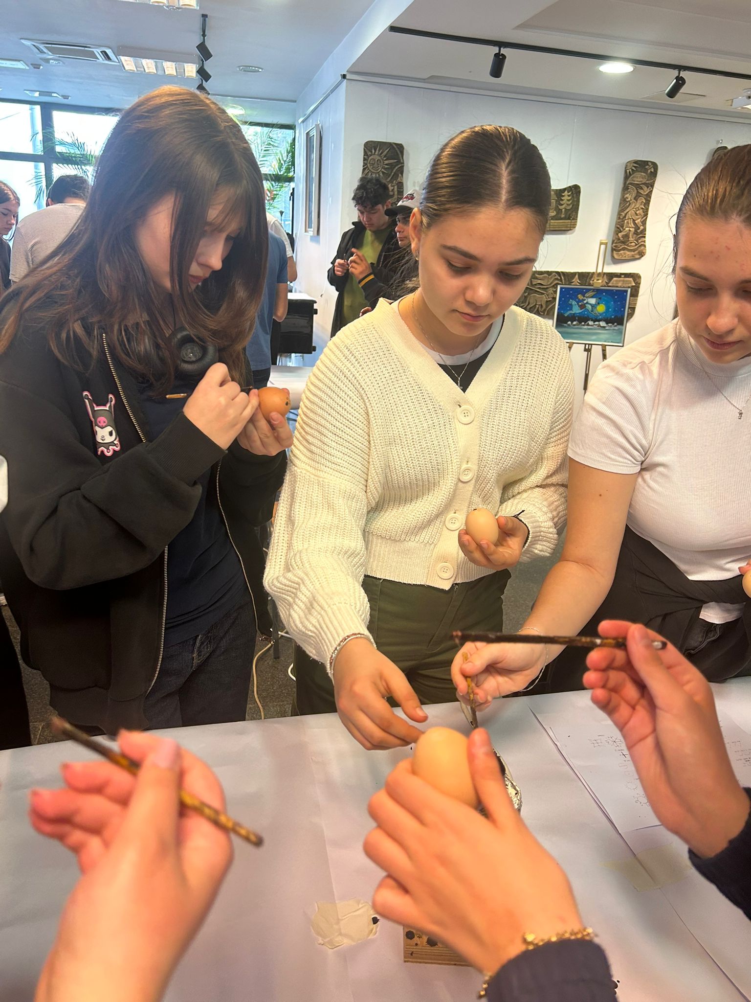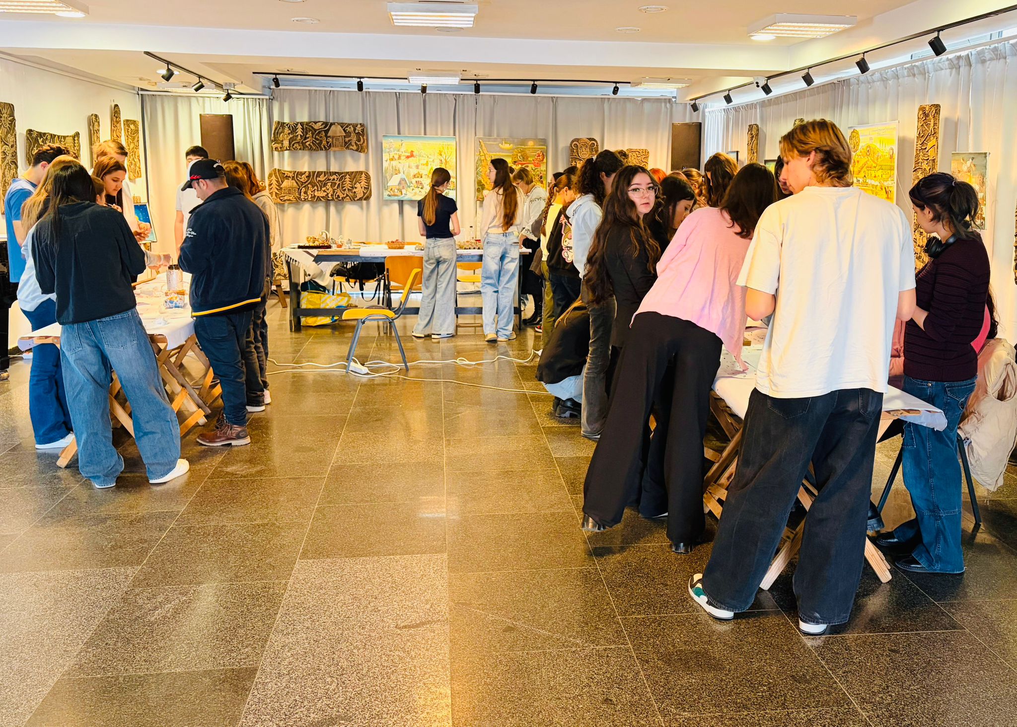 Bucurie mare a fost pentru tineri admirarea unei mici expoziții de ouă încondeiate (ouă de găină, de gâscă, de prepeliță și de struț). După acest moment au urmat tineri artiști muzicieni talentați, care au susținut un concert și au cântat la pian.