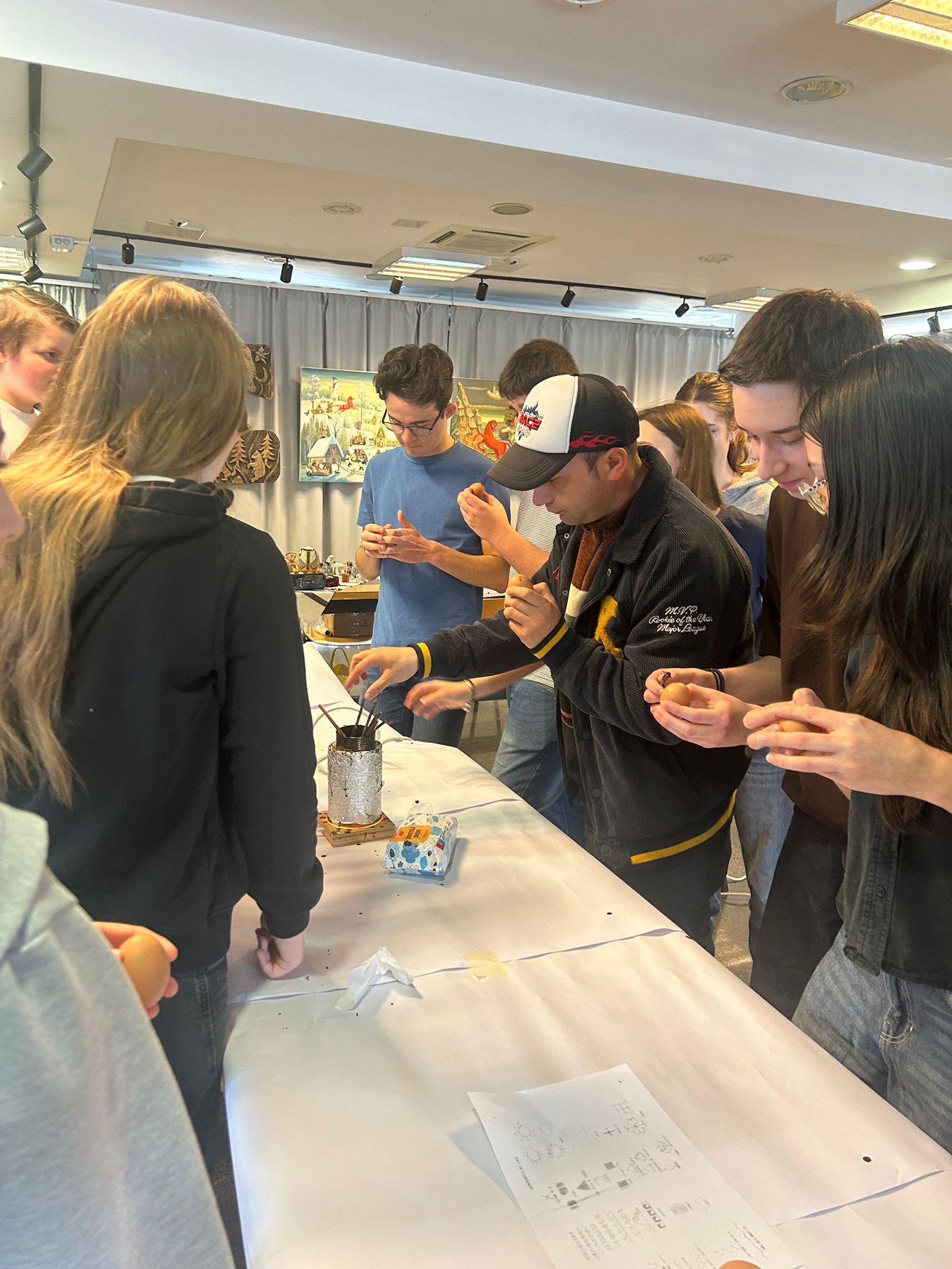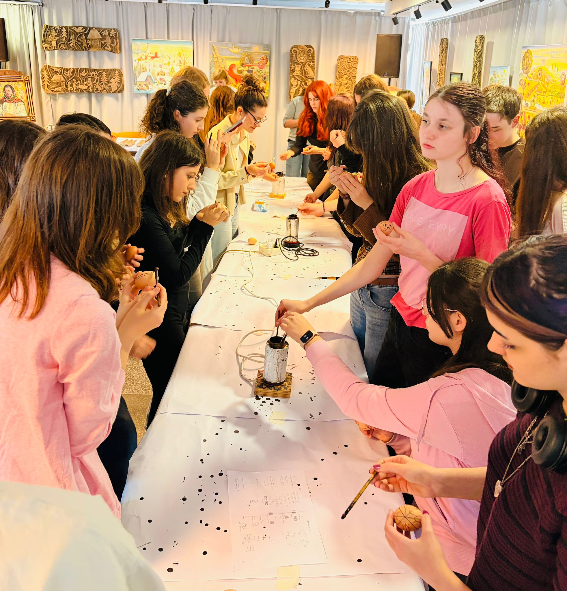 Au participat tineri din cadrul Asociației Tinerilor Ortodocși Suceveni (ATOS) și alți tineri suceveni, dornici să deprindă meșteșugul încondeierii ouălor. Ei au fost curioși, silitori și foarte interesați. Au avut la dispoziție Catalog cu modele tradiționale bucovinene și materialele necesare: chișițe, lămpi, ouă, ceară. Rodul mâinilor lor au fost ouă frumos împodobite, unele dintre ele chiar deosebite, ca și cum ar fi fost realizate de meșteri experimentați și nu de tineri începători în acest meșteșug vechi.