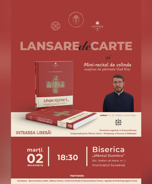Cu binecuvântarea Înaltpreasfințitului Părinte Calinic, Arhiepiscopia Sucevei și Rădăuților organizează marți, 02 decembrie 2025, începând cu orele 18:30, un eveniment cultural, în cadrul căruia va fi lansat volumul Simbolismul veșmintelor...