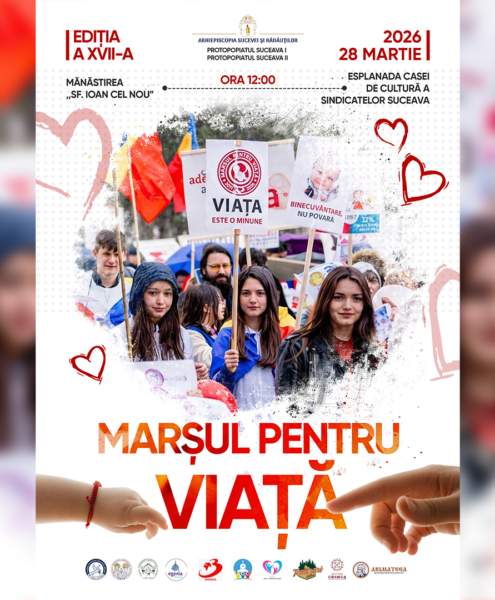 Arhiepiscopia Sucevei și Rădăuților invită toți credincioșii, familiile, tinerii și pe toți oamenii de bună-credință să participe la Marșul pentru Viață 2026, care va avea loc sâmbătă, 28 martie 2026, în Suceava,...