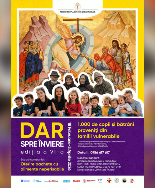 Cu binecuvântarea Înaltpreasfințitului Părinte Calinic, Arhiepiscop al Sucevei și Rădăuților, Sectorul de Asistență Socială și Medicală anunță începutul celei de-a șasea ediții a campaniei filantropice DAR spre Înviere. Campania se...