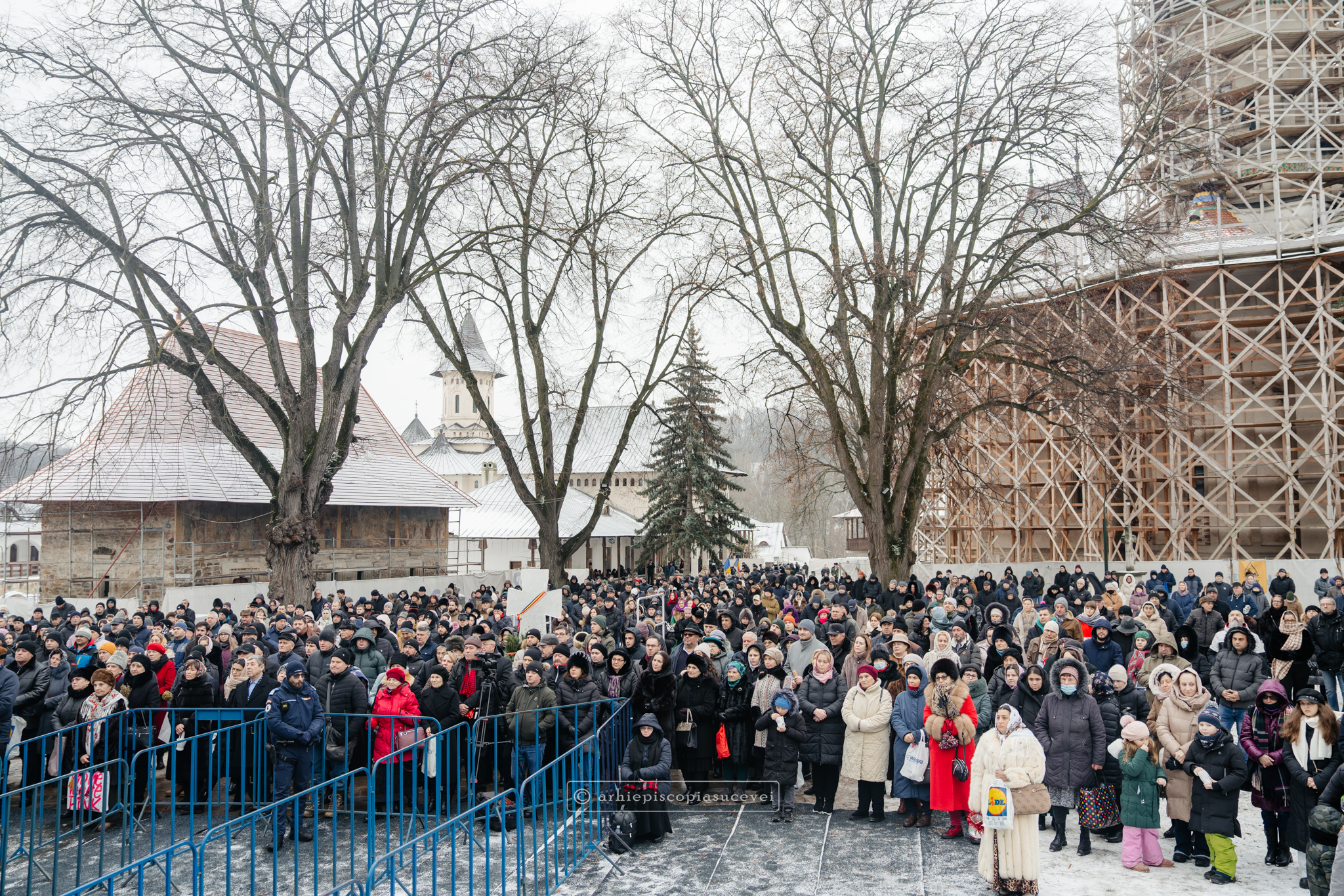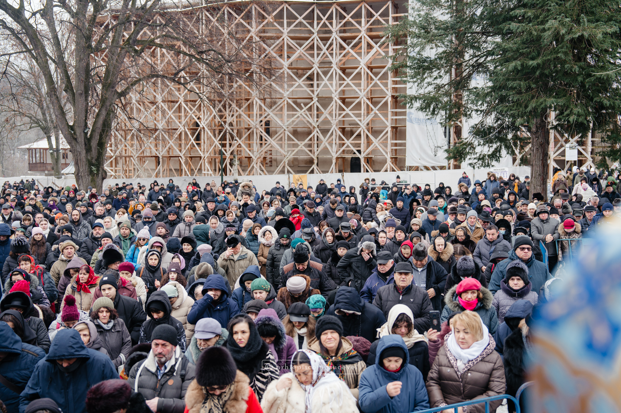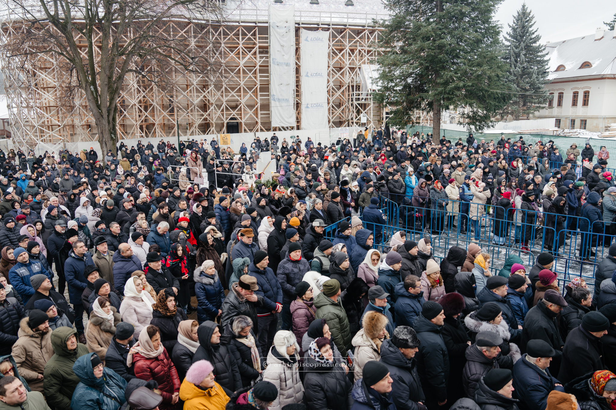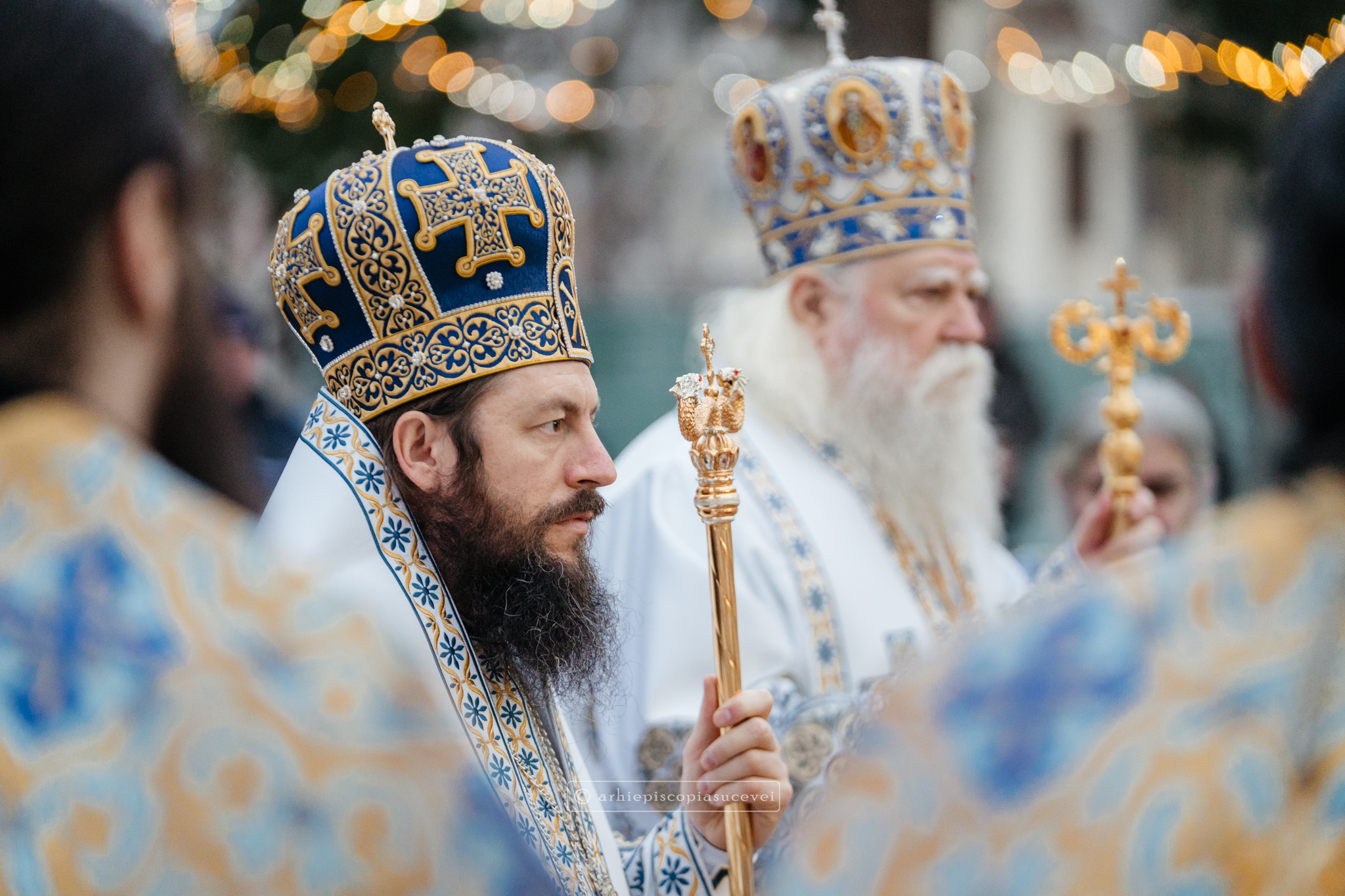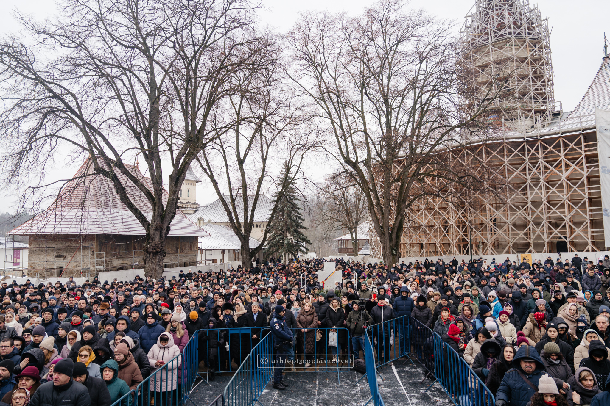 Și în acest an, praznicul împărătesc al Bobotezei – Epifania Domnului, momentul care rememorează evenimentul petrecut în urmă cu aproximativ 2000 de ani, când în apa Iordanului S-a revelat Preasfânta Treime, a fost prilej de înaltă trăire duhovnicească, fiind sărbătorit cu aleasă bucurie și rugăciune la Catedrala Arhiepiscopală din Suceava – Mănăstirea „Sfântul Ioan cel Nou”, unde mii de credincioși au primit binecuvântarea celor doi ierarhi ai Eparhiei Sucevei și Rădăuților, Înaltpreasfințitul Părinte Arhiepiscop Calinic și Preasfințitul Damaschin Dorneanul, Episcop-Vicar. După ce s-au închinat la racla cu cinstitele moaște ale marelui mucenic ce ocrotește țara noastră de peste șase veacuri, odor neprețuit aflat în Paraclisul așezământului monahal, aceștia au săvârșit Sfânta și Dumnezeiasca Liturghie a Sfântului Ioan Gură de Aur la altarul exterior al locașului de cult, împreună cu un numeros sobor de preoți și diaconi.