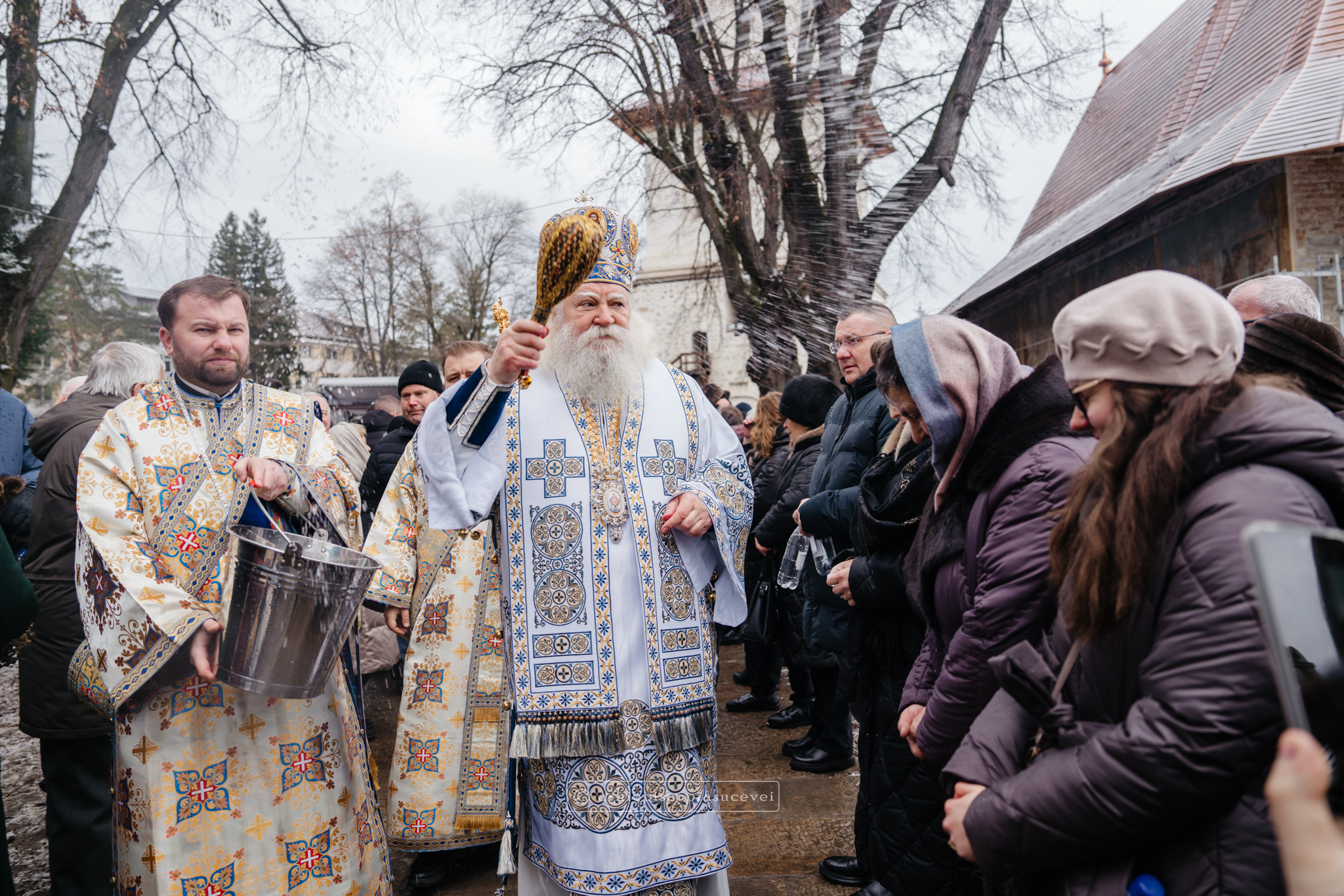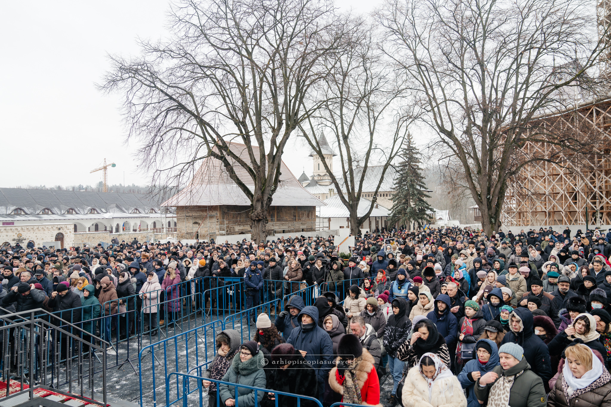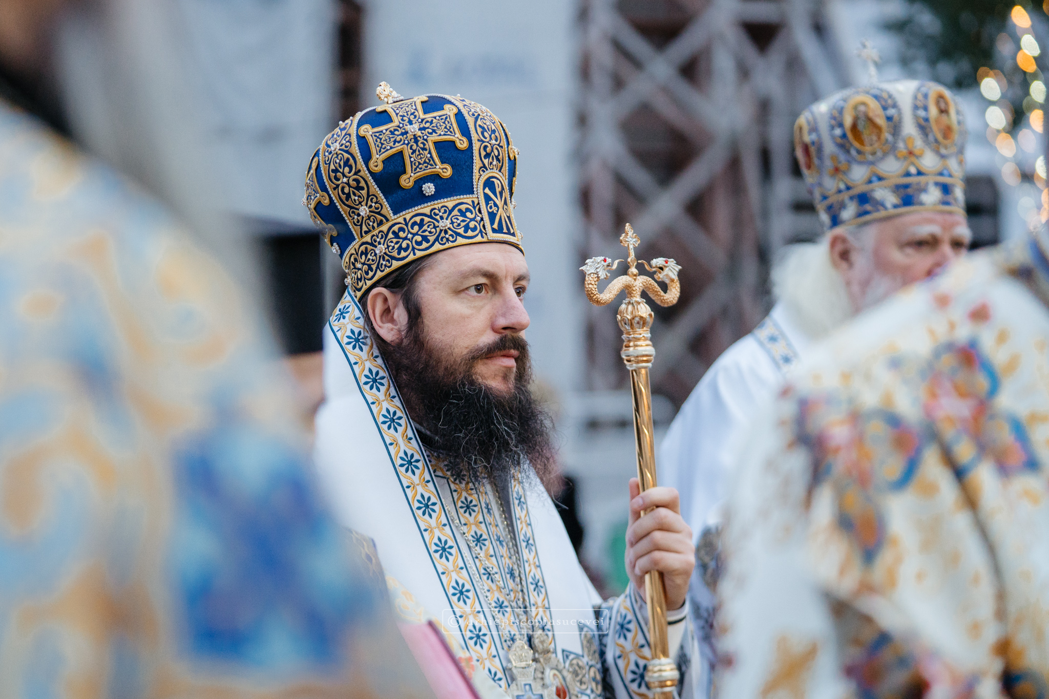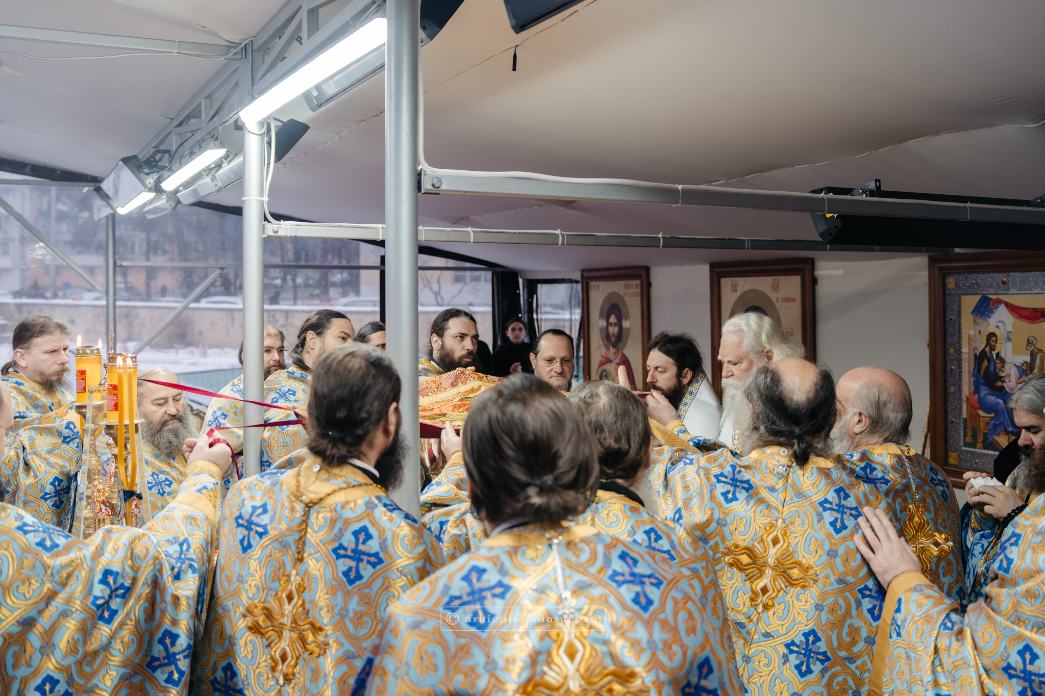 Și în acest an, praznicul împărătesc al Bobotezei – Epifania Domnului, momentul care rememorează evenimentul petrecut în urmă cu aproximativ 2000 de ani, când în apa Iordanului S-a revelat Preasfânta Treime, a fost prilej de înaltă trăire duhovnicească, fiind sărbătorit cu aleasă bucurie și rugăciune la Catedrala Arhiepiscopală din Suceava – Mănăstirea „Sfântul Ioan cel Nou”, unde mii de credincioși au primit binecuvântarea celor doi ierarhi ai Eparhiei Sucevei și Rădăuților, Înaltpreasfințitul Părinte Arhiepiscop Calinic și Preasfințitul Damaschin Dorneanul, Episcop-Vicar. După ce s-au închinat la racla cu cinstitele moaște ale marelui mucenic ce ocrotește țara noastră de peste șase veacuri, odor neprețuit aflat în Paraclisul așezământului monahal, aceștia au săvârșit Sfânta și Dumnezeiasca Liturghie a Sfântului Ioan Gură de Aur la altarul exterior al locașului de cult, împreună cu un numeros sobor de preoți și diaconi.