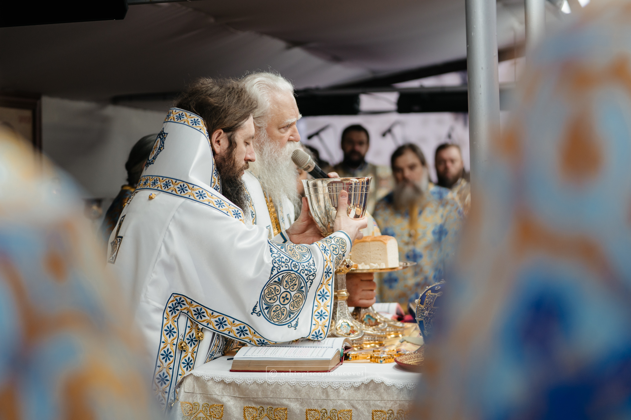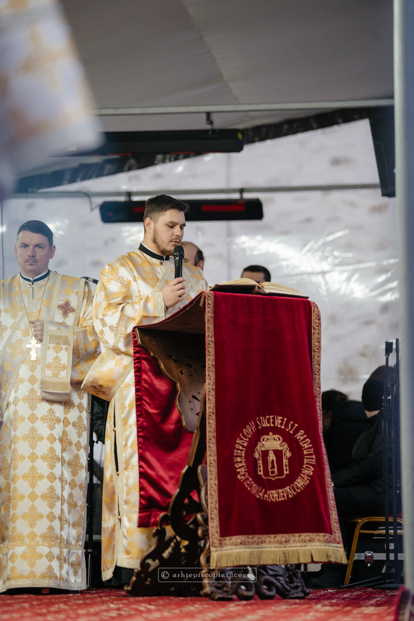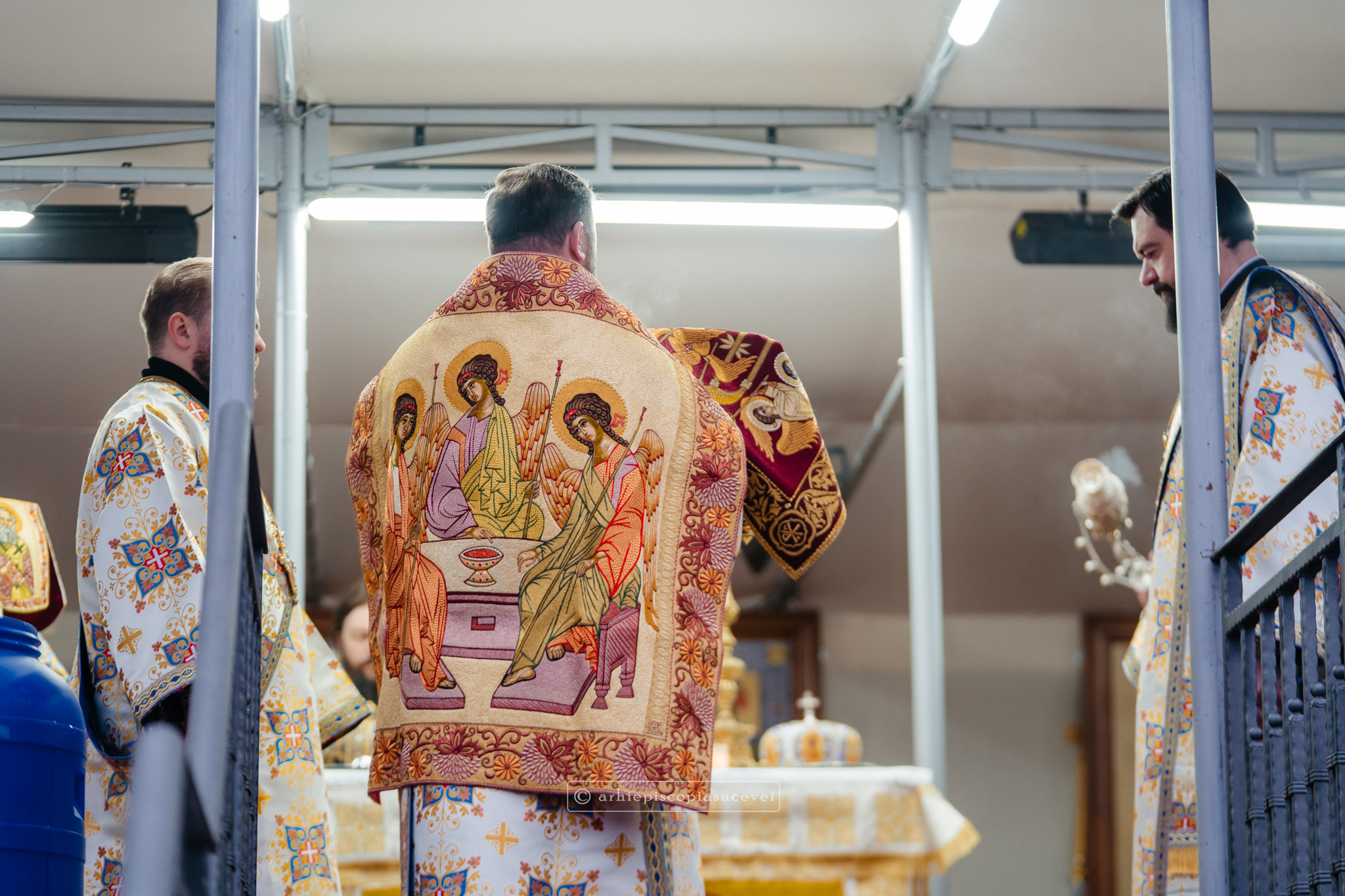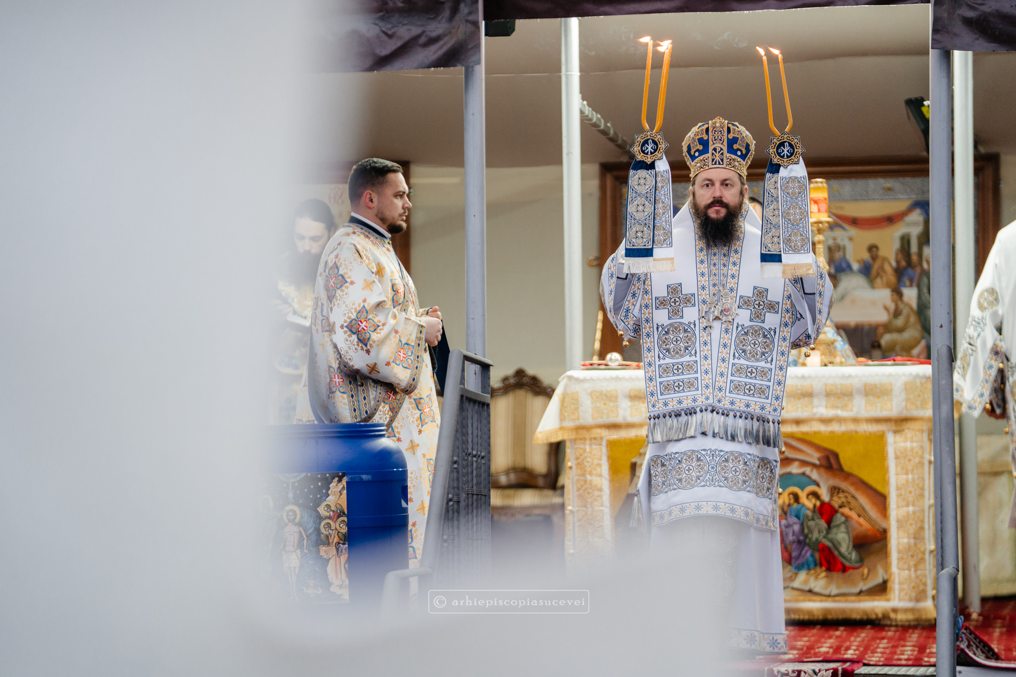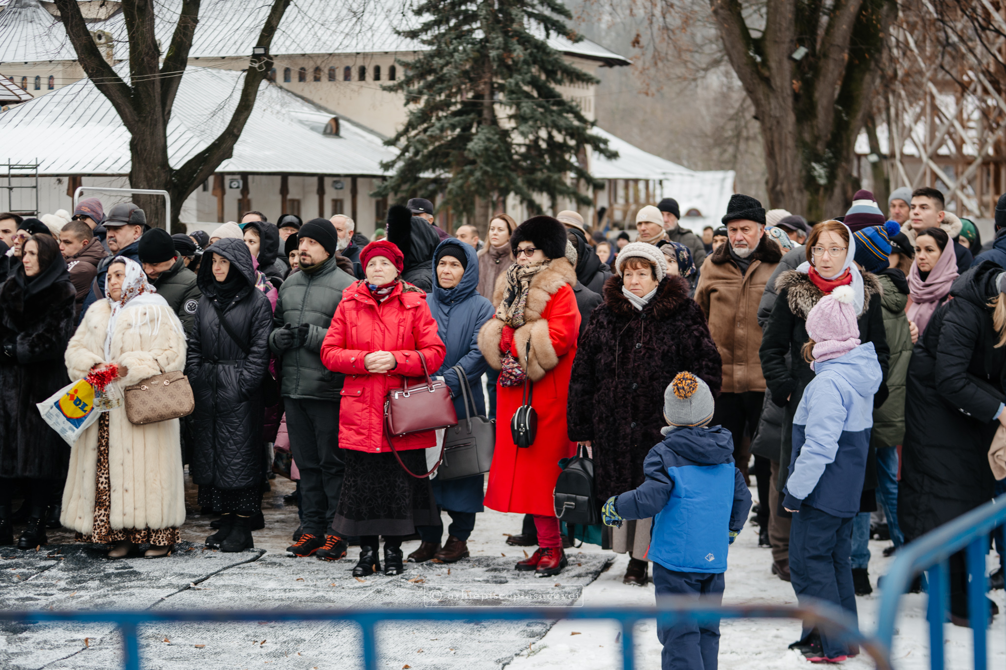 Și în acest an, praznicul împărătesc al Bobotezei – Epifania Domnului, momentul care rememorează evenimentul petrecut în urmă cu aproximativ 2000 de ani, când în apa Iordanului S-a revelat Preasfânta Treime, a fost prilej de înaltă trăire duhovnicească, fiind sărbătorit cu aleasă bucurie și rugăciune la Catedrala Arhiepiscopală din Suceava – Mănăstirea „Sfântul Ioan cel Nou”, unde mii de credincioși au primit binecuvântarea celor doi ierarhi ai Eparhiei Sucevei și Rădăuților, Înaltpreasfințitul Părinte Arhiepiscop Calinic și Preasfințitul Damaschin Dorneanul, Episcop-Vicar. După ce s-au închinat la racla cu cinstitele moaște ale marelui mucenic ce ocrotește țara noastră de peste șase veacuri, odor neprețuit aflat în Paraclisul așezământului monahal, aceștia au săvârșit Sfânta și Dumnezeiasca Liturghie a Sfântului Ioan Gură de Aur la altarul exterior al locașului de cult, împreună cu un numeros sobor de preoți și diaconi.