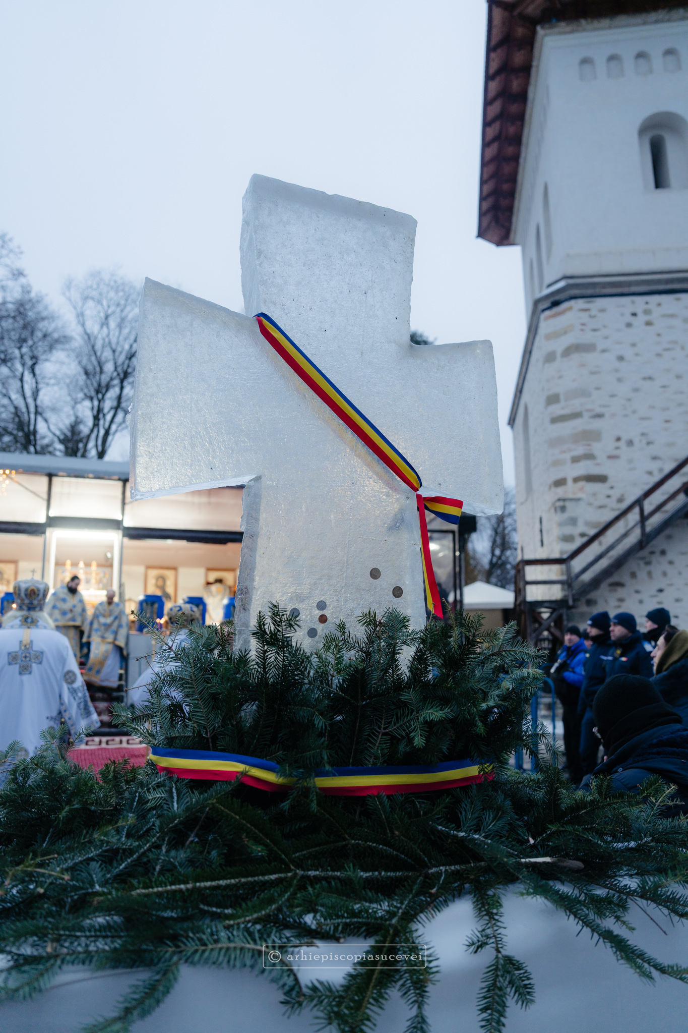 Cu sprijinul fiilor duhovnicești ai mănăstirii a cărei obște este îndrumată duhovnicește de arhim. Serafim Grigoraș, la sărbătoarea Botezului Domnului așezământul monahal s-a bucurat de o cruce de gheață sculptată.