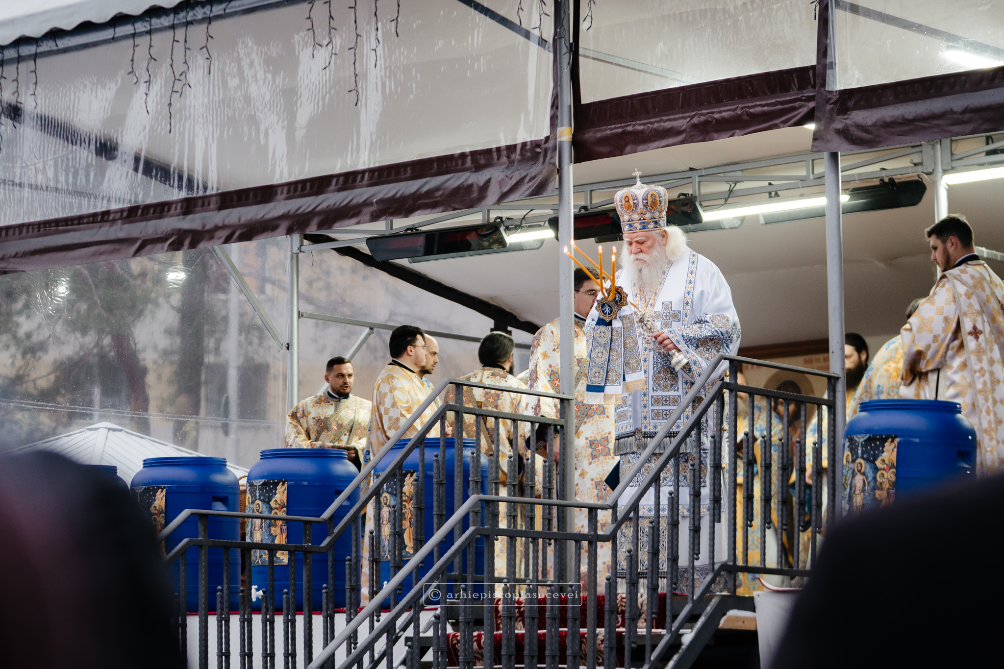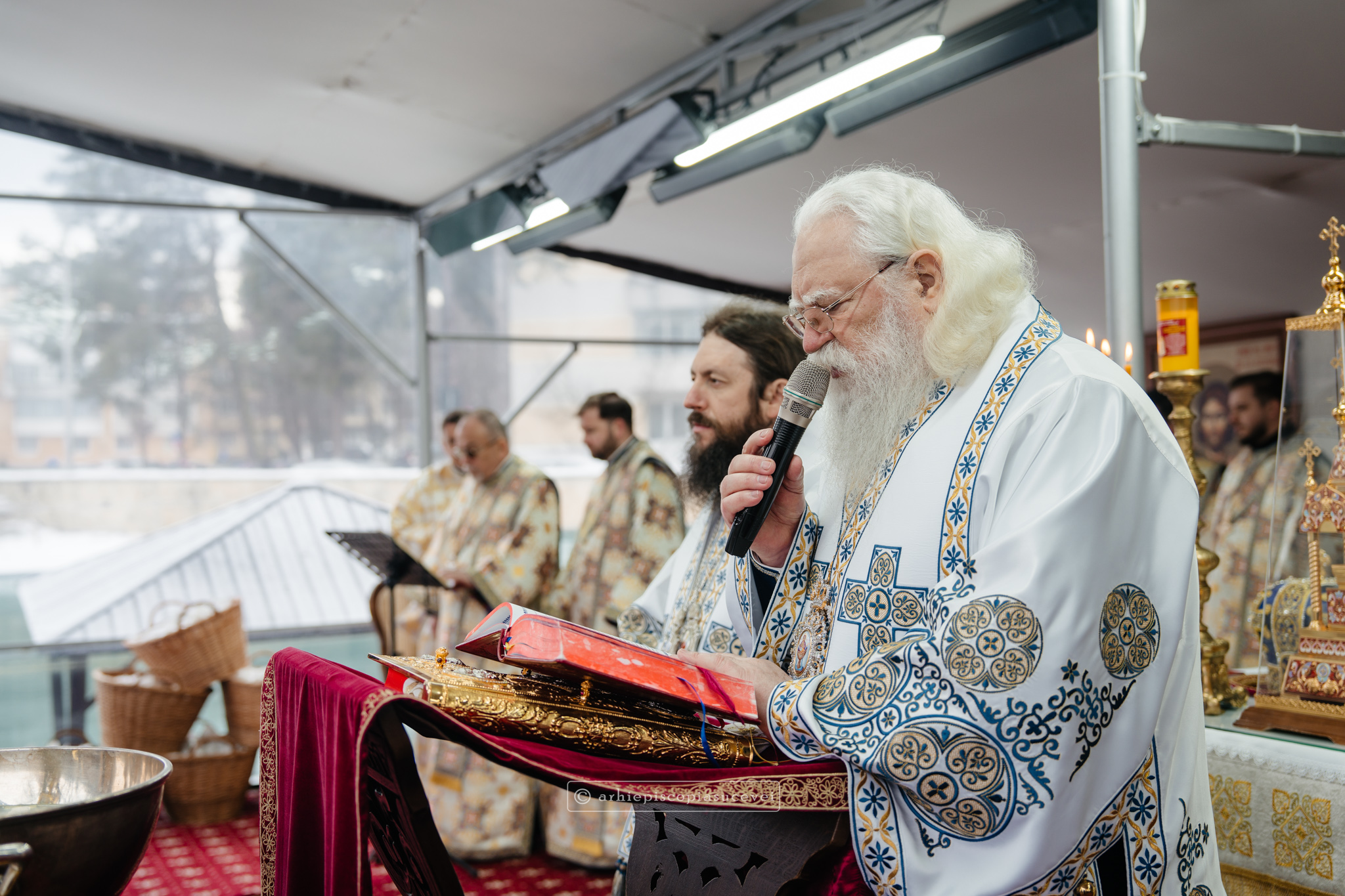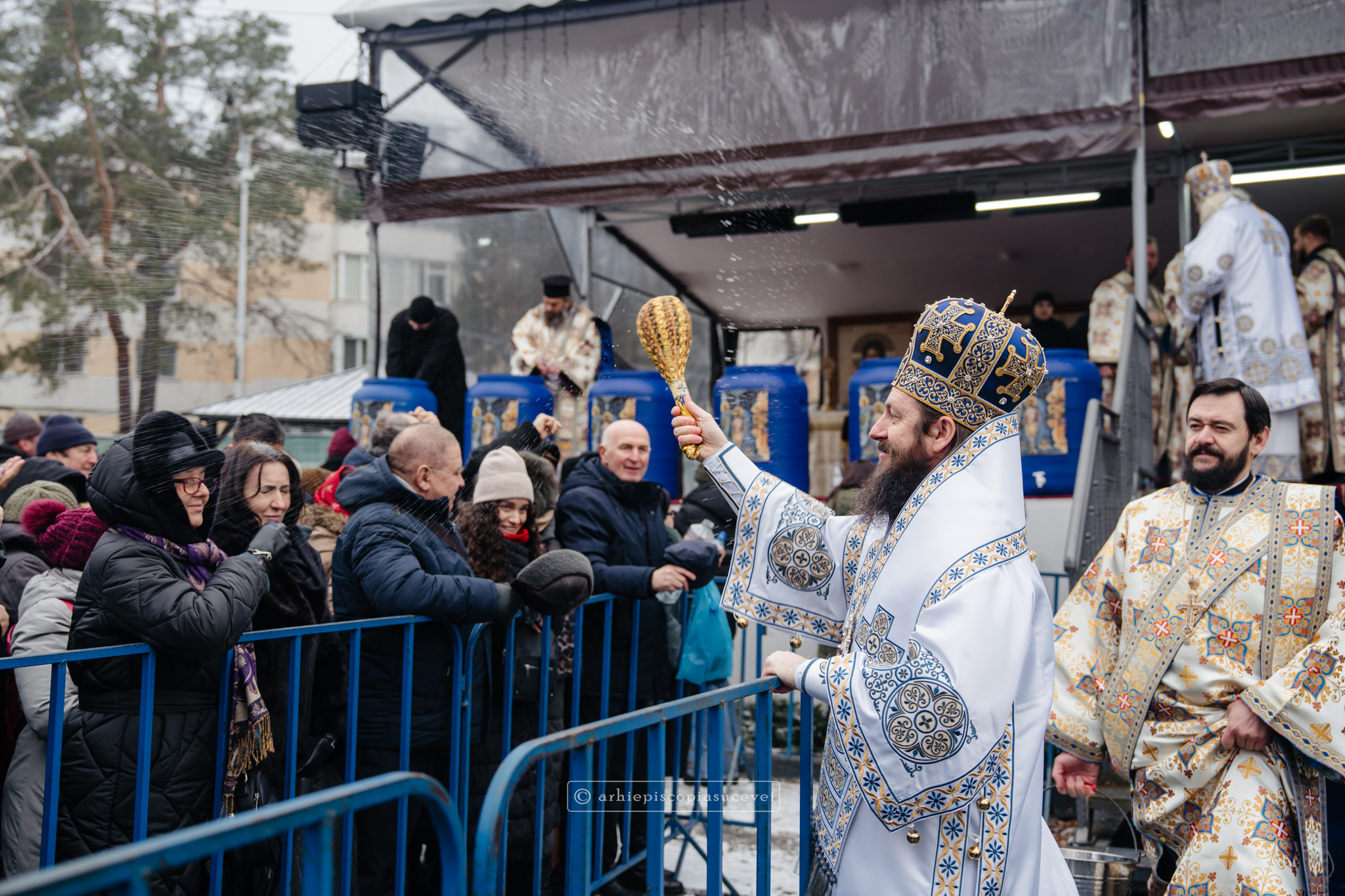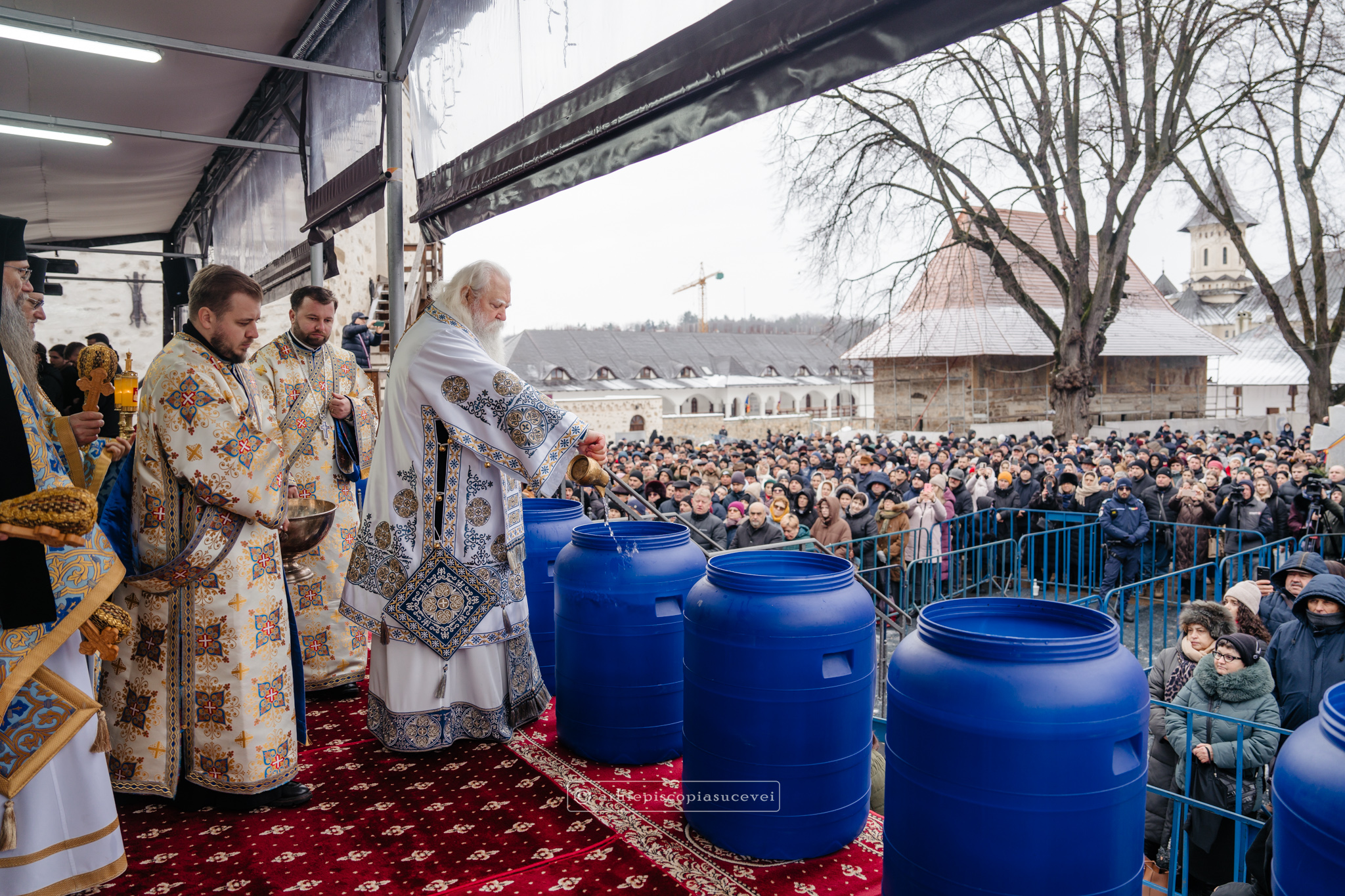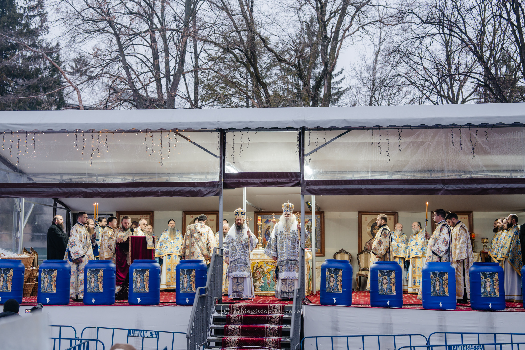 La final, cei doi ierarhi au oficiat Slujba sfințirii celei mari a apei, cei prezenți la Praznicul Botezului Domnului fiind binecuvântați apoi cu Agheasmă Mare. Rânduiala cuprinde și o rugăciune înălțătoare, menită să exprime taina reînnoirii și a restaurării creației, precum și împăcarea dintre cele cerești și cele pământești. „Astăzi, cele de sus cu cele de jos împreună prăznuiesc, și cele de jos împreună cu cele de sus vorbesc. Astăzi, păcatele oamenilor se curățesc în apele Iordanului. Astăzi, raiul s-a deschis oamenilor. Astăzi, toată făptura se adapă cu curgeri tainice. Astăzi, Stăpânul merge la Botez, ca să ridice firea omenească la înălțime. Astăzi, împărăția cerurilor am dobândit. Astăzi, pământul și marea s-au împărtășit de bucuria lumii și lumea de veselie s-a umplut. Astăzi, întunericul lumii se risipește cu arătarea Dumnezeului nostru.”