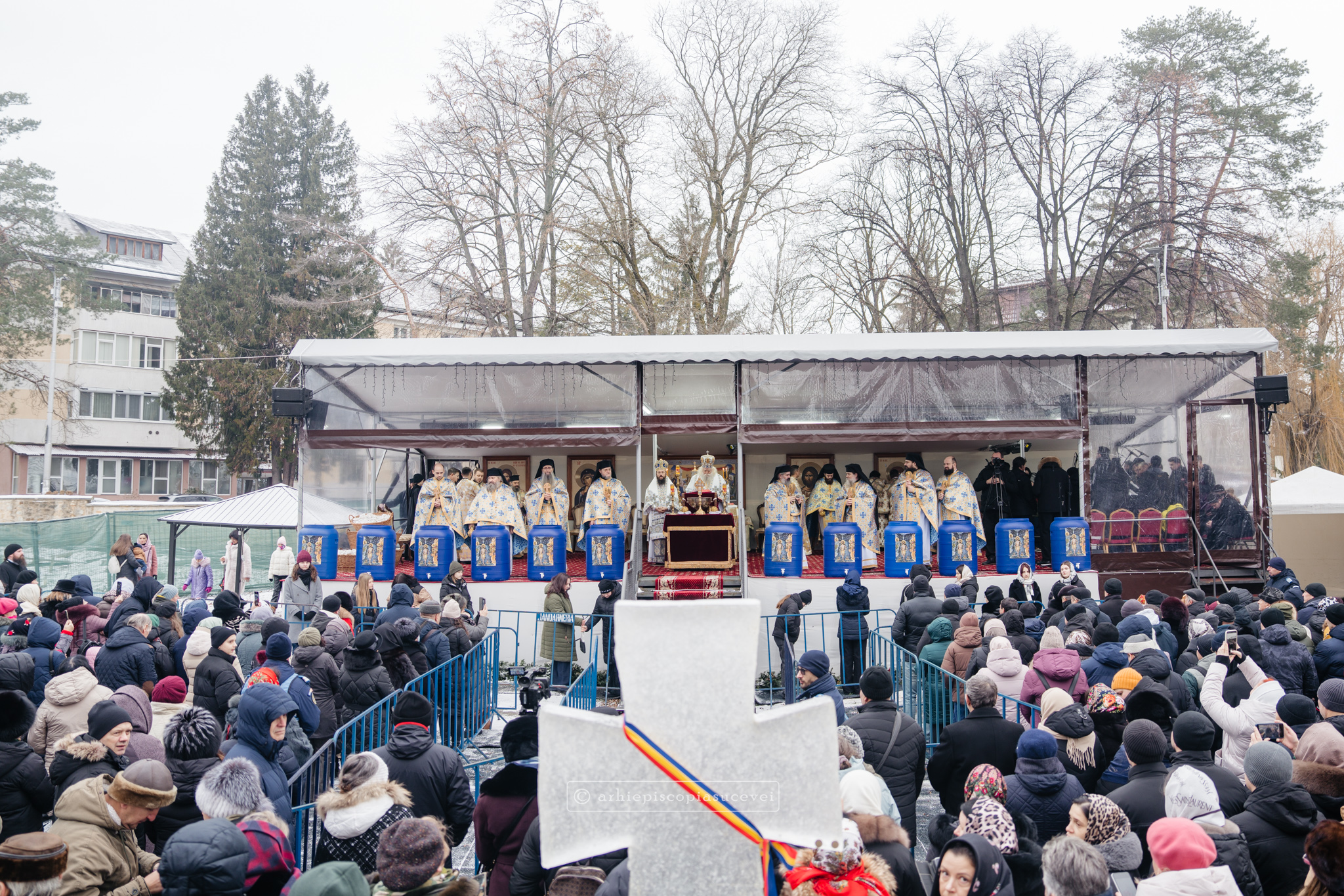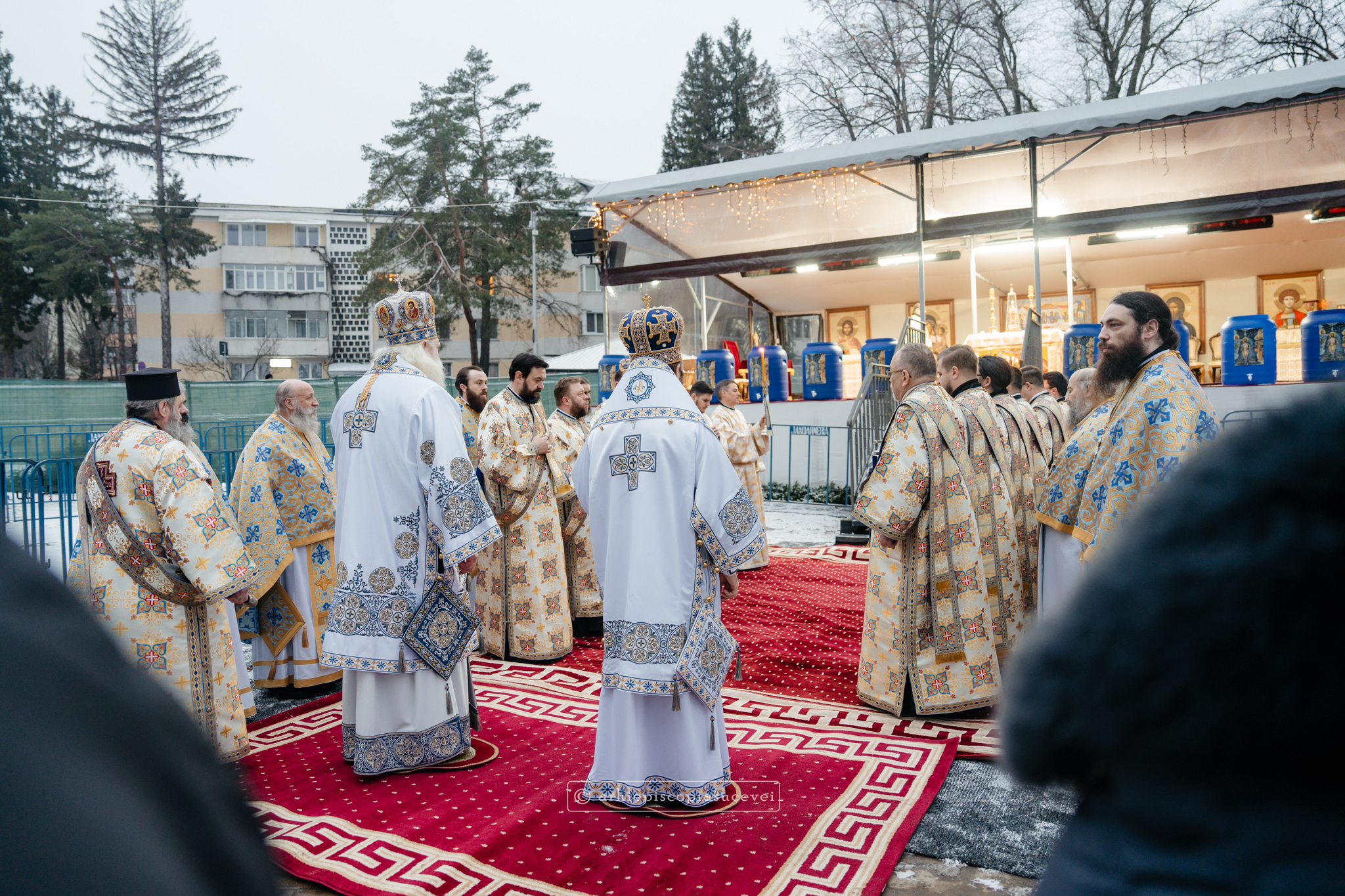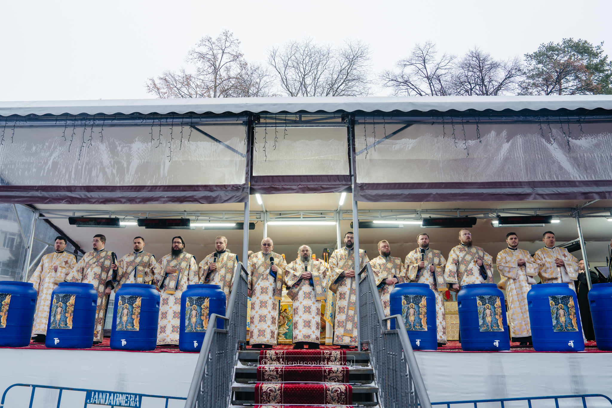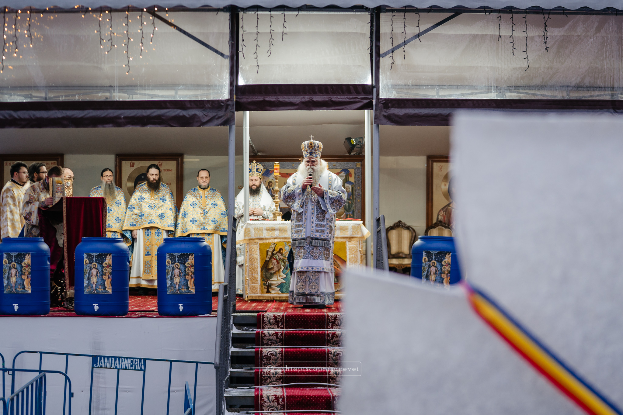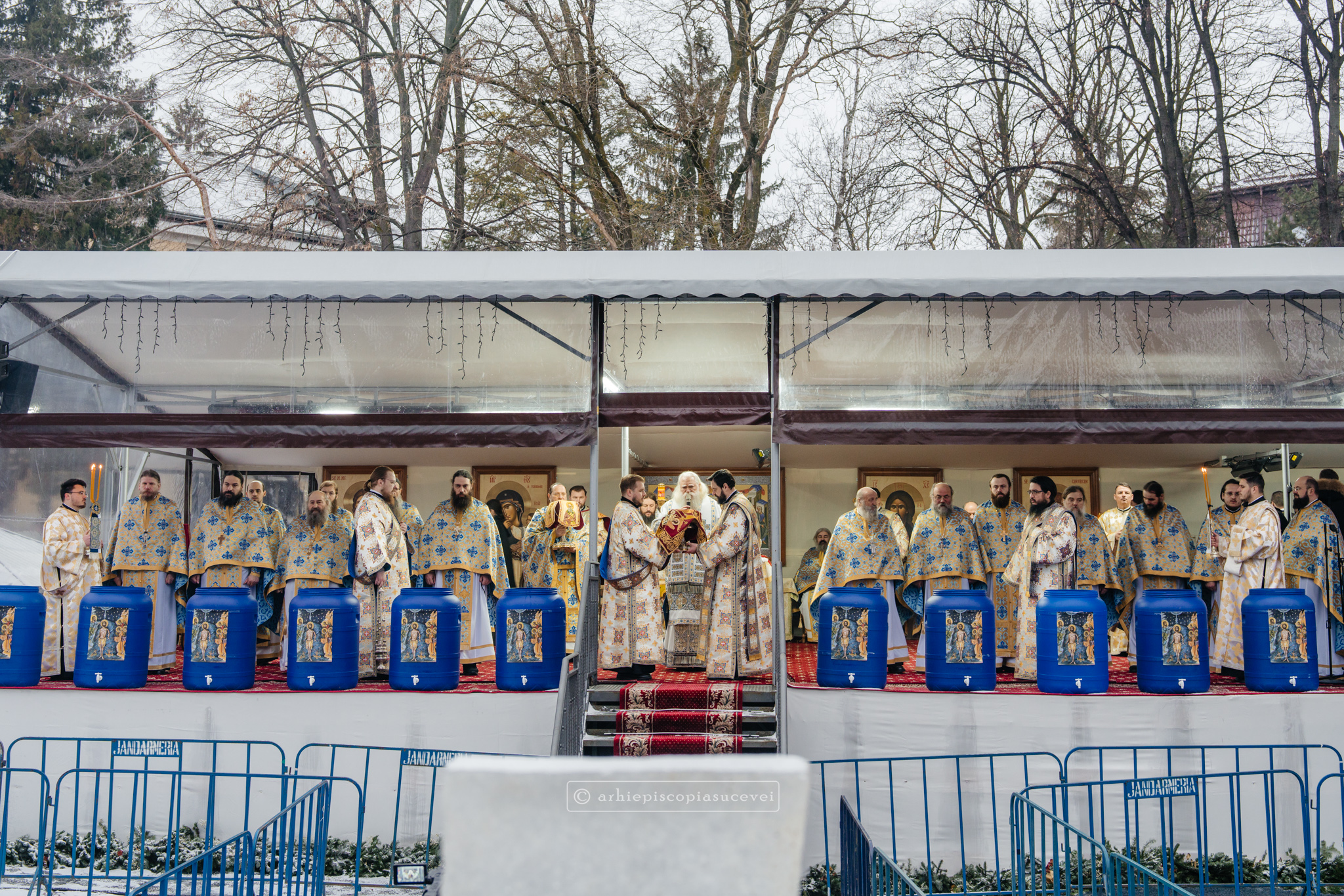 La final, cei doi ierarhi au oficiat Slujba sfințirii celei mari a apei, cei prezenți la Praznicul Botezului Domnului fiind binecuvântați apoi cu Agheasmă Mare. Rânduiala cuprinde și o rugăciune înălțătoare, menită să exprime taina reînnoirii și a restaurării creației, precum și împăcarea dintre cele cerești și cele pământești. „Astăzi, cele de sus cu cele de jos împreună prăznuiesc, și cele de jos împreună cu cele de sus vorbesc. Astăzi, păcatele oamenilor se curățesc în apele Iordanului. Astăzi, raiul s-a deschis oamenilor. Astăzi, toată făptura se adapă cu curgeri tainice. Astăzi, Stăpânul merge la Botez, ca să ridice firea omenească la înălțime. Astăzi, împărăția cerurilor am dobândit. Astăzi, pământul și marea s-au împărtășit de bucuria lumii și lumea de veselie s-a umplut. Astăzi, întunericul lumii se risipește cu arătarea Dumnezeului nostru.”
