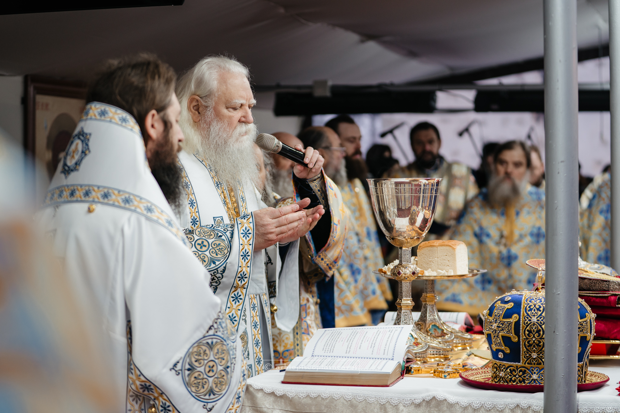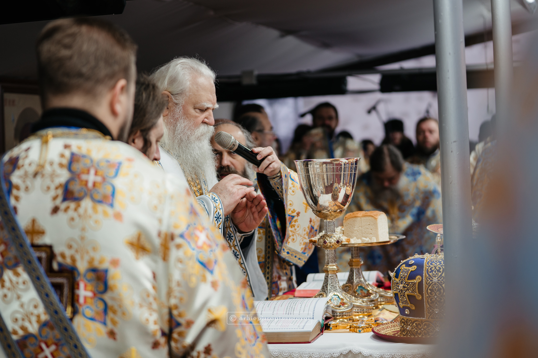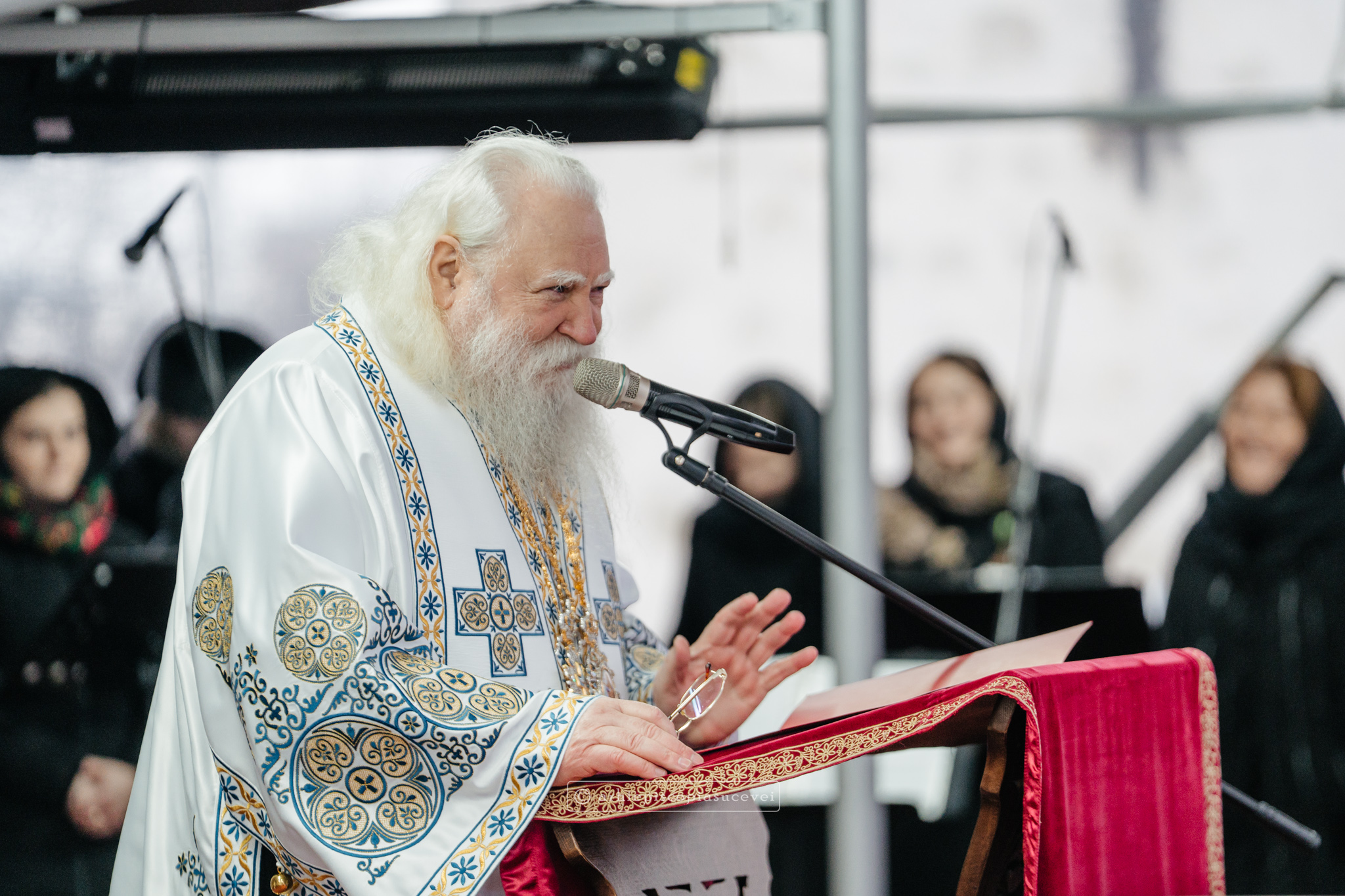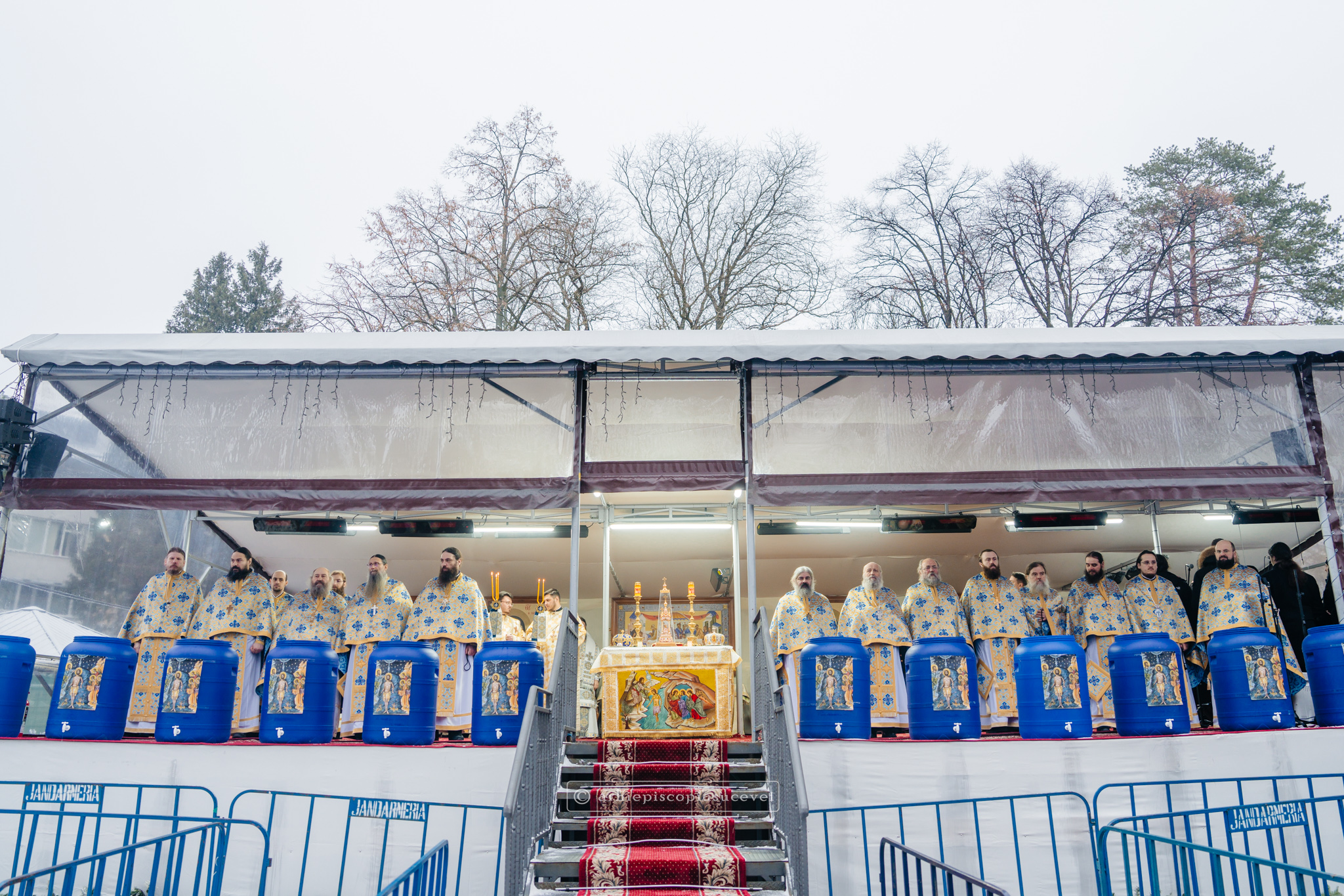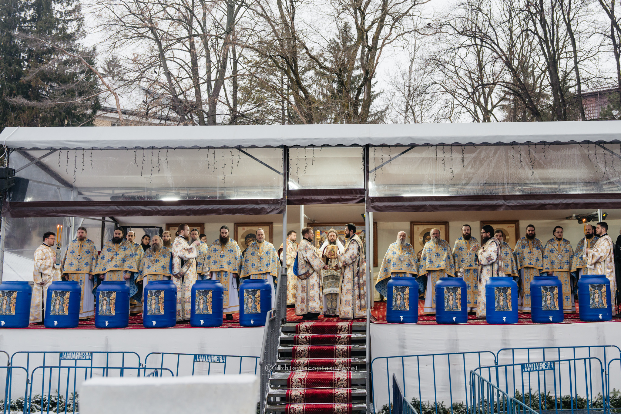La final, cei doi ierarhi au oficiat Slujba sfințirii celei mari a apei, cei prezenți la Praznicul Botezului Domnului fiind binecuvântați apoi cu Agheasmă Mare. Rânduiala cuprinde și o rugăciune înălțătoare, menită să exprime taina reînnoirii și a restaurării creației, precum și împăcarea dintre cele cerești și cele pământești. „Astăzi, cele de sus cu cele de jos împreună prăznuiesc, și cele de jos împreună cu cele de sus vorbesc. Astăzi, păcatele oamenilor se curățesc în apele Iordanului. Astăzi, raiul s-a deschis oamenilor. Astăzi, toată făptura se adapă cu curgeri tainice. Astăzi, Stăpânul merge la Botez, ca să ridice firea omenească la înălțime. Astăzi, împărăția cerurilor am dobândit. Astăzi, pământul și marea s-au împărtășit de bucuria lumii și lumea de veselie s-a umplut. Astăzi, întunericul lumii se risipește cu arătarea Dumnezeului nostru.”