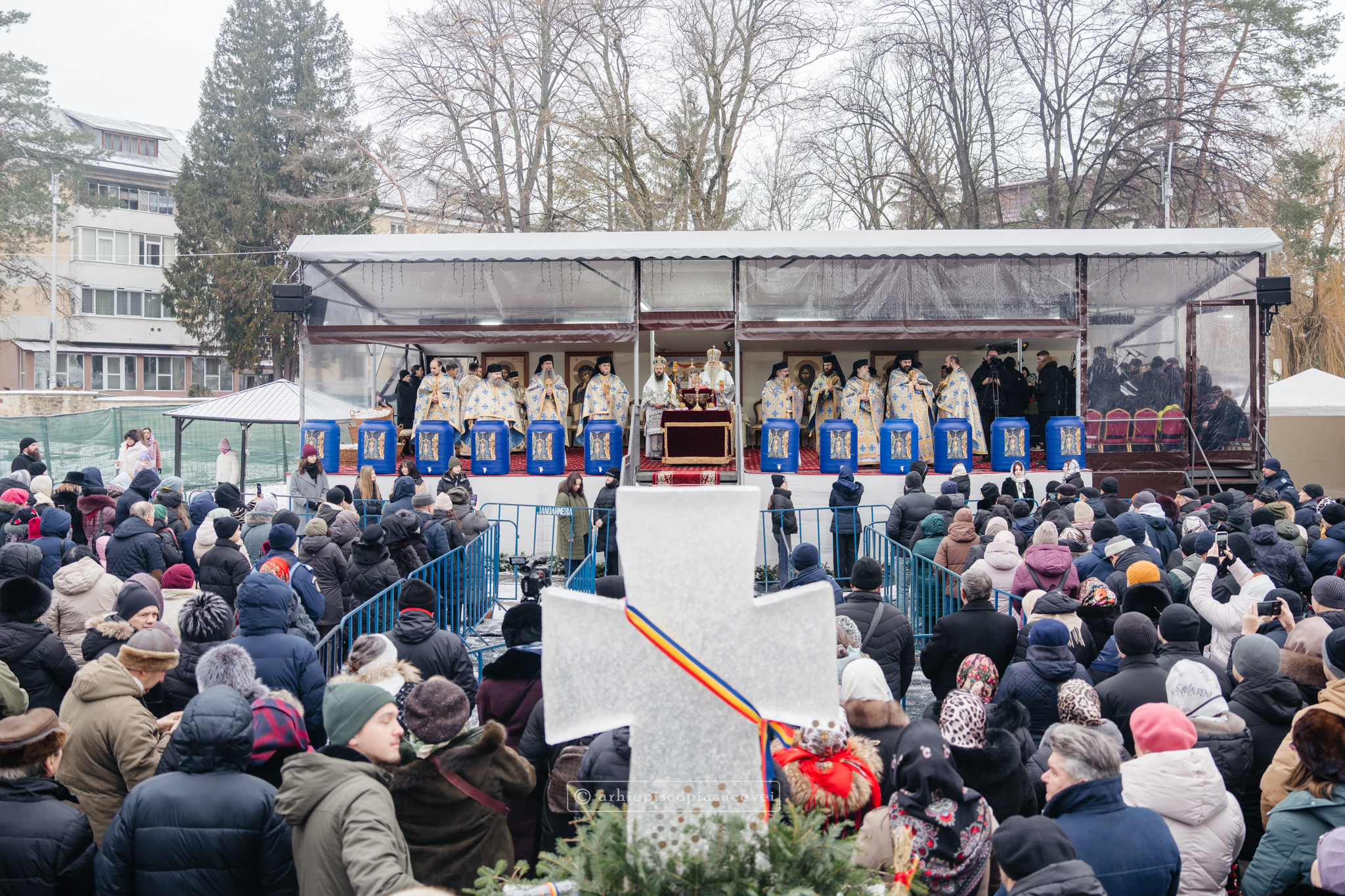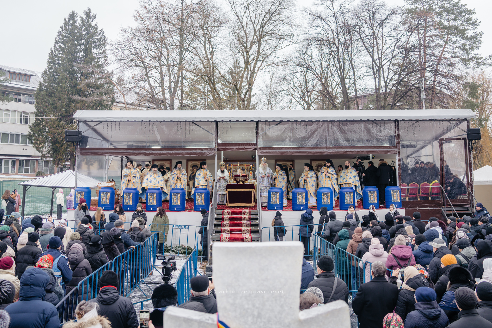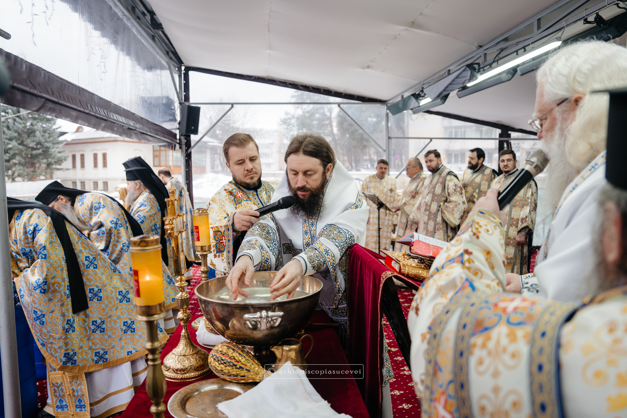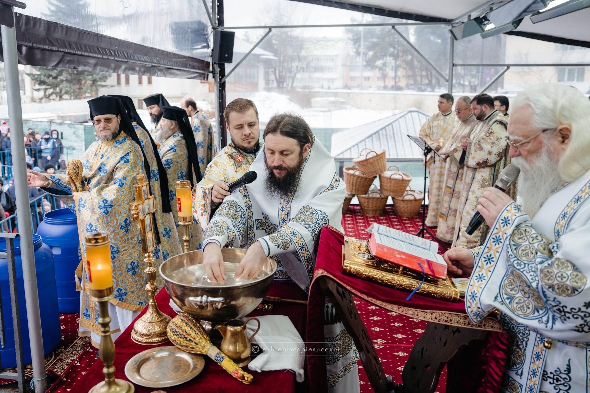 „Pentru ziua în care se săvârșește sfințirea cea mare a apei, slujbă care amintește de sfințirea apelor și ridicarea firii omenești la înălțime prin intrarea Fiului întrupat al lui Dumnezeu în râul Iordan și primirea botezului prin mâna Înaintemergătorului Său, Sfântul Ioan Botezătorul, Înaltpreasfințitul Părinte Calinic, Arhiepiscop al Sucevei și Rădăuților, a subliniat în cadrul unui Decalog atât părtășia noastră cu Mântuitorul nostru Iisus Hristos la acest mare eveniment din viața Sa pământească, cât și mulțimea binefacerilor revărsate asupra celor care pătrund taina actului creator și sfințitor al Preasfintei Treimi.”