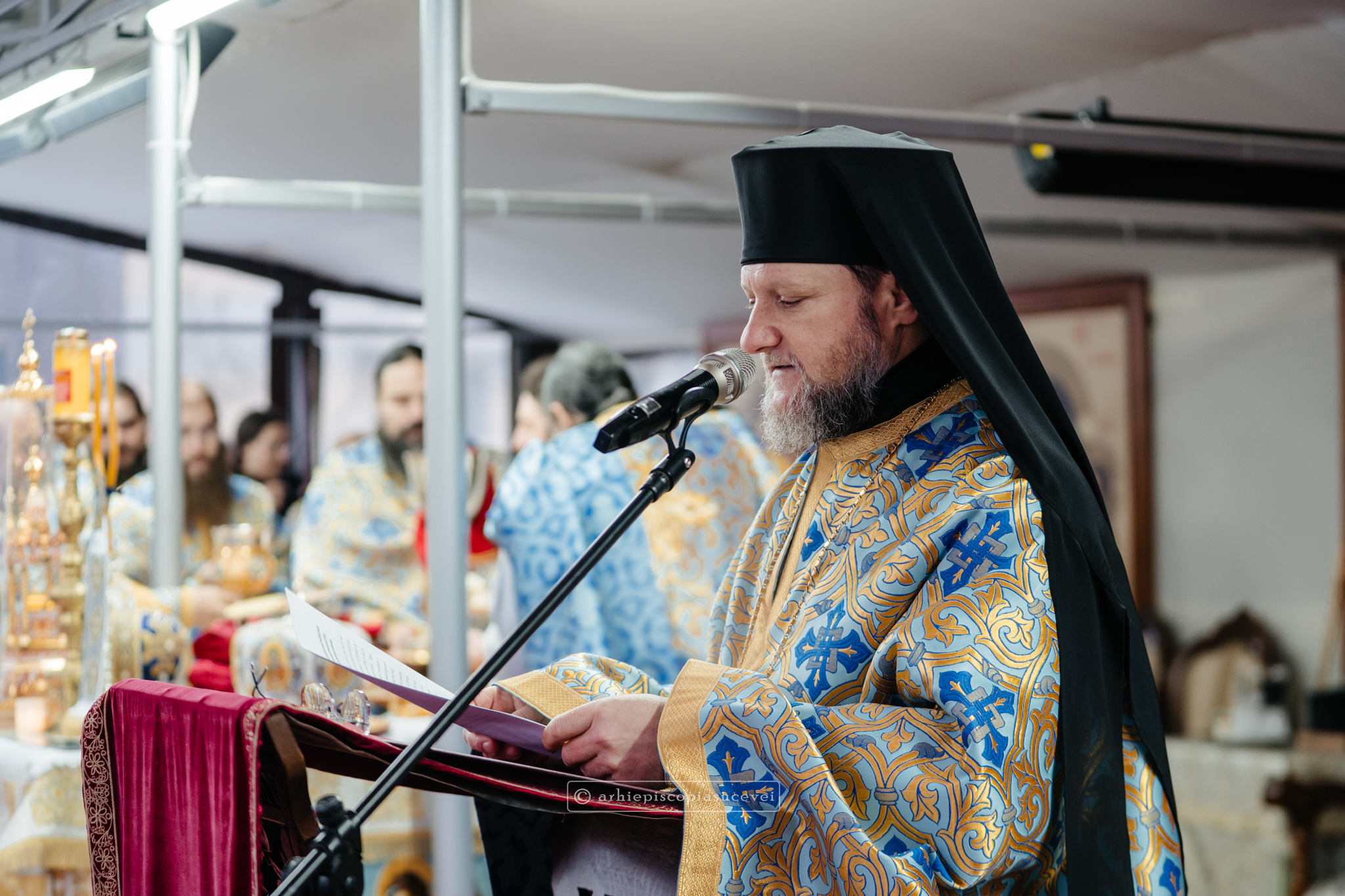 În timpul împărtășirii clericilor, arhim. Serafim Grigoraș, stareț al Mănăstirii „Sfântul Ioan cel Nou” și exarh de zonă, a dat citire cuvântului Înaltpreasfințitului Părinte Arhiepiscop Calinic la sărbătoarea Botezului Domnului. Potrivit predicii ierarhului, sărbătoarea Botezului Domnului ne oferă ocazia de a analiza profunzimile sufletului nostru și de a evalua acțiunile noastre până în acest moment, precum și de a reînnoi hotărârea de a ne pune întreaga viață în slujba lui Dumnezeu. „Numai așa ne vom putea păstra vie conștiința nobleței de fii după har ai lui Dumnezeu–Tatăl și de frați ai lui Hristos în Duhul Sfânt.”