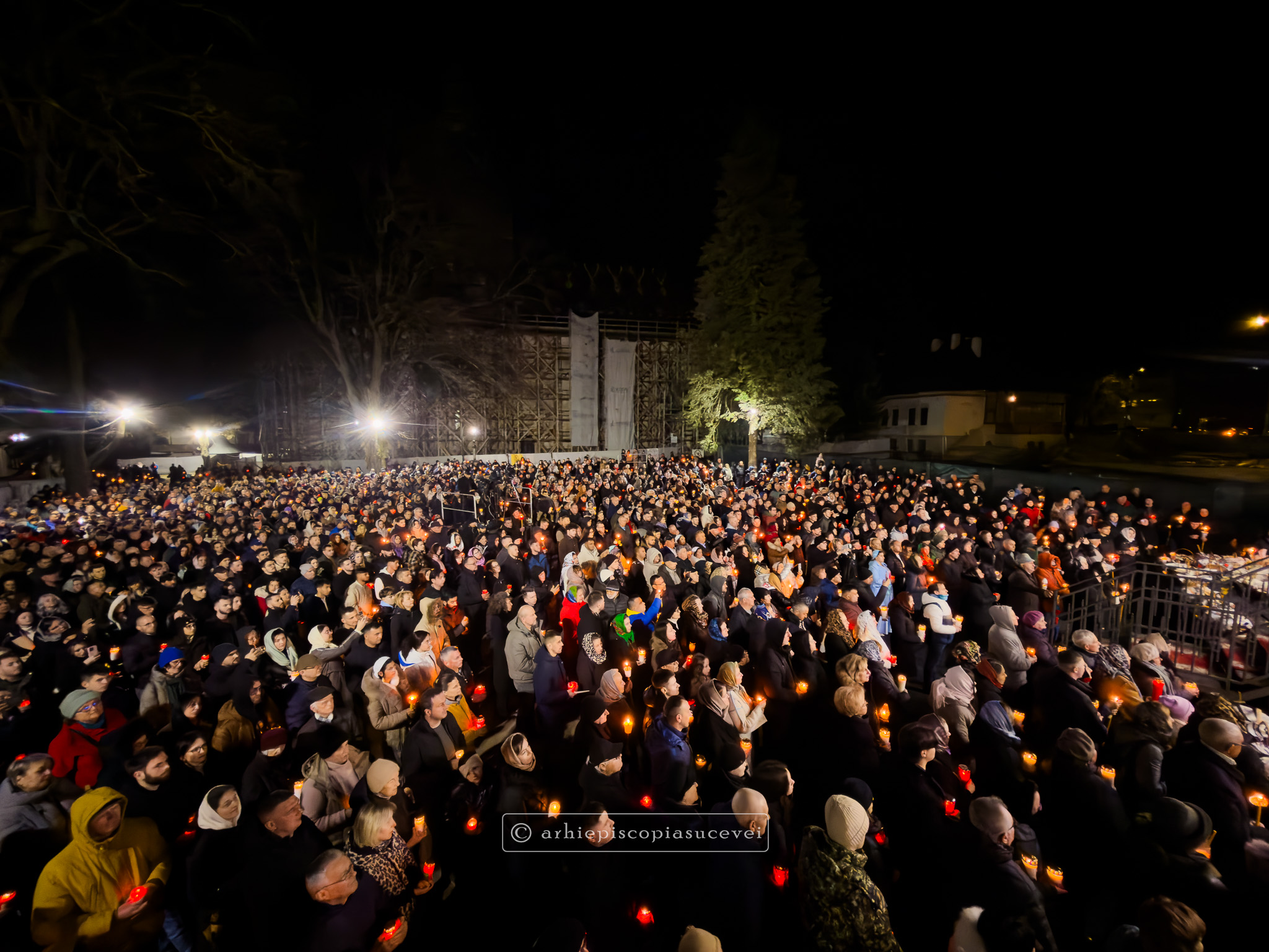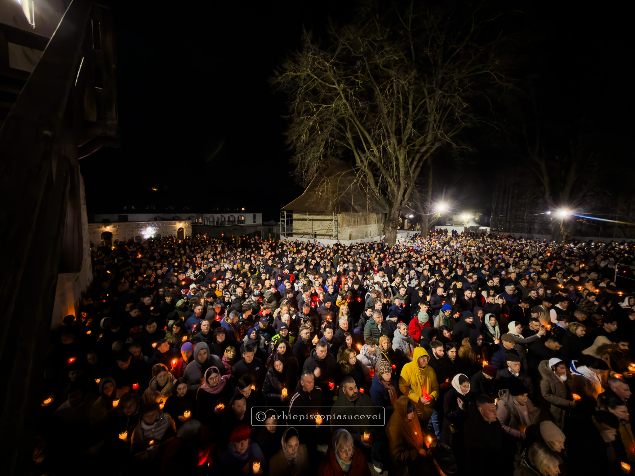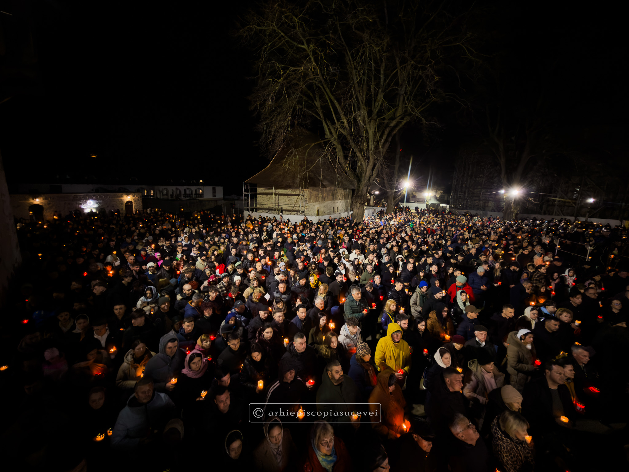 Sfânta Lumină a fost adusă apoi la Mănăstirea „Sfântul Ioan cel Nou”, unde Preasfinția Sa a mulțumit Preamilostivului Dumnezeu pentru că și anul acesta a rânduit binecuvântarea cu acest mare dar, sfânta lumină de la mormântul cel de viață făcător al Domnului nostru Iisus Hristos și pe meleagurile sucevene, continuându-se astfel tradiția începută în anul 2009.