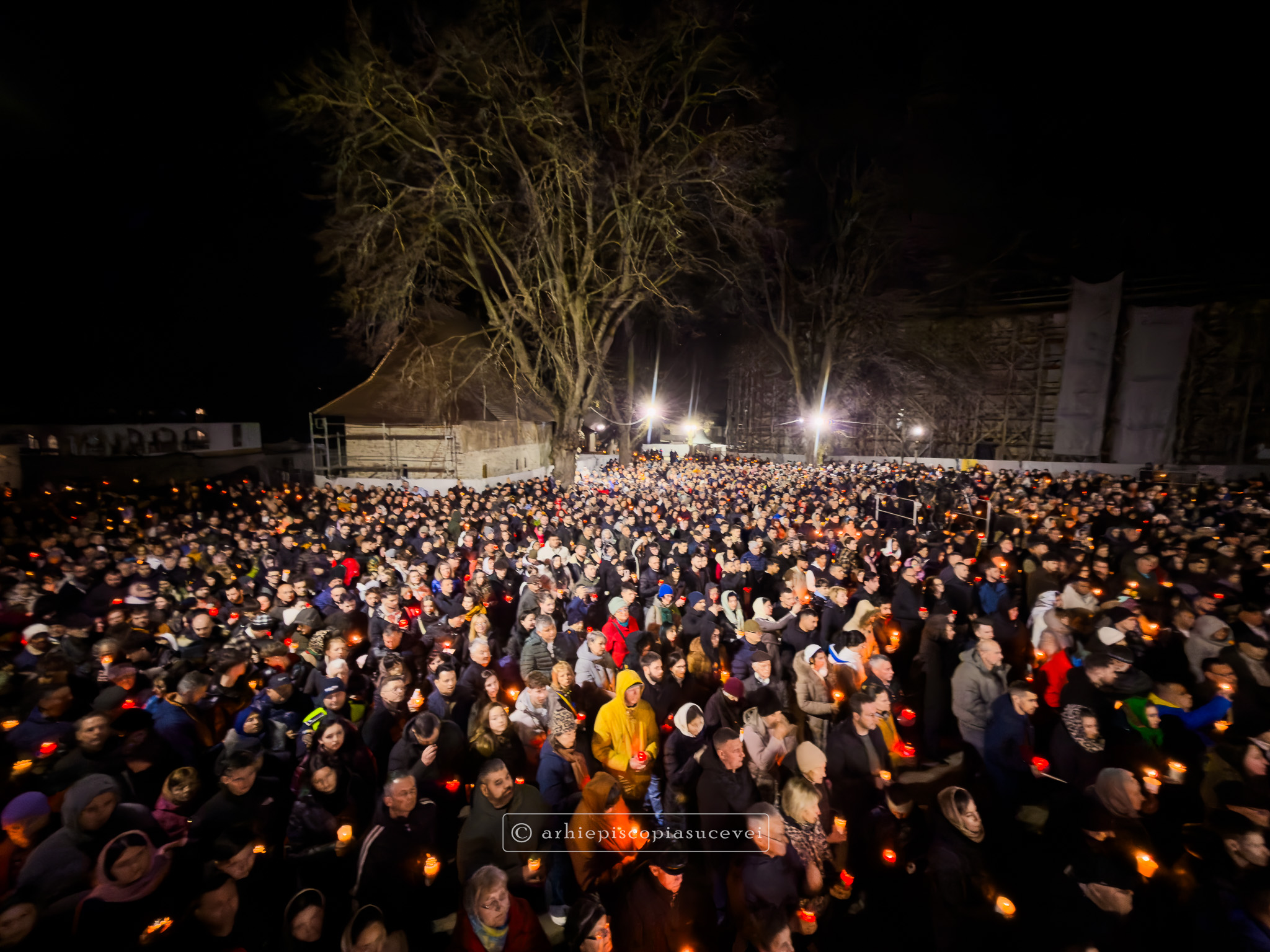 În cea de-a patra strajă a dimineții, Înaltpreasfințitul Părinte Arhiepiscop Calnic a mulțumit Preamilostivului Dumnezeu și tuturor celor care au împodobit lucrarea Bisericii prin prezență: sobor, cor și credincioși, pentru frumoasa noapte petrecută în rugăciune.