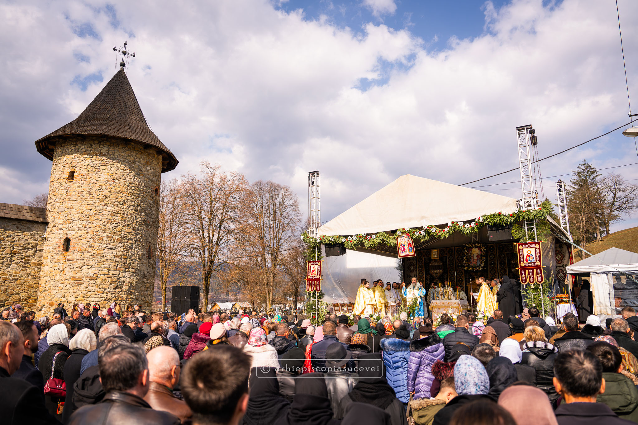 La evenimentul dedicat praznicului împărătesc al Bunei Vestiri au participat stareți și starețe de la mănăstirile bucovinene, oficialități județene și locale, precum și numeroși credincioși veniți din împrejurimi.