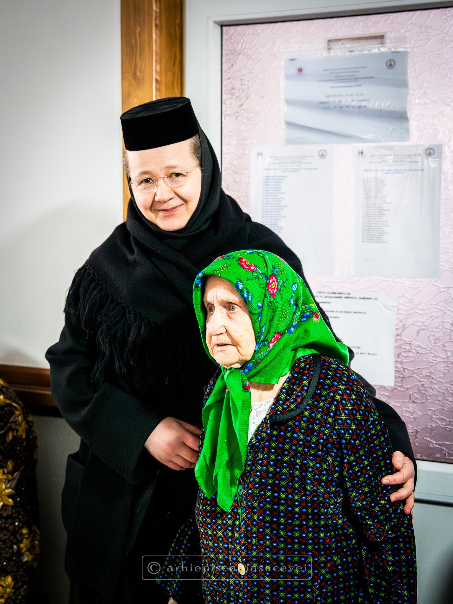 Lect. univ. dr. Polixenia Nistor a punctat rolul dragostei în slujirea aproapelui și a mulțumit chiriarhului locului pentru susținerea acestor inițiative cu caracter social-filantropic. „Aș dori ca evenimentul de astăzi să fie o lecție pentru noi, dar și pentru studenți, că asistența socială nu se face doar din cărți, ci din practica vieții de zi cu zi, și să înțelegem că poate este rostul nostru mai mult decât oricând să dăruim și să iubim. Astăzi am avut oportunitatea să primim binecuvântarea unor oameni care au dăruit și au iubit o viață întreagă. Noi am venit să le întoarcem această dragoste, pentru că o simțim ca pe o datorie a asistenților sociali. Acest lucru s-a întâmplat datorită implicării Înaltpreasfințitului Părinte Arhiepiscop Calinic, căruia îi mulțumim cu foarte multă recunoștință pentru tot ajutorul pe care ni l-a oferit și pentru arhiereasca binecuvântare de a desfășura aceste activități în cadrul mănăstirii Bogdănești, inclusiv a Centrului.”