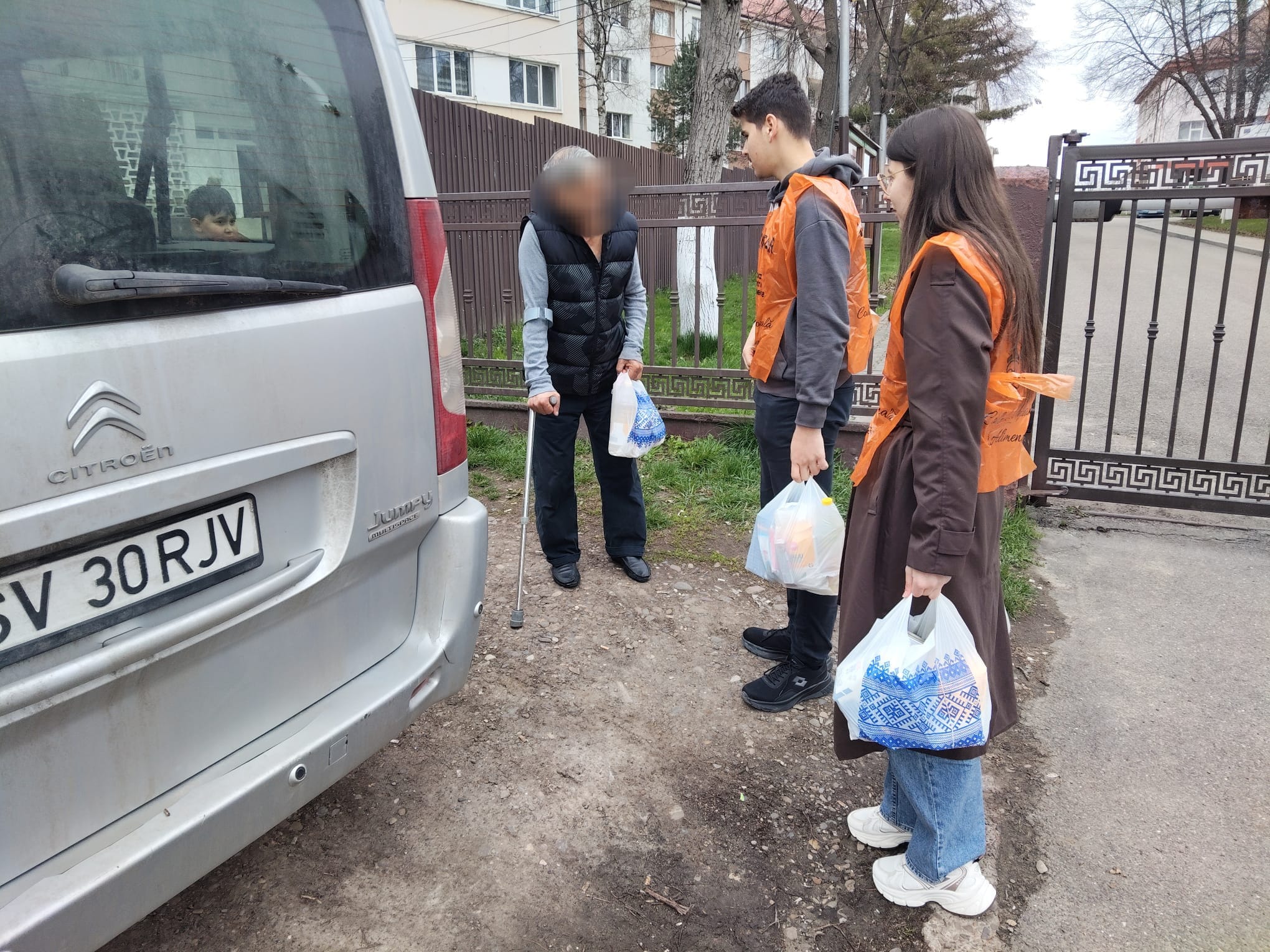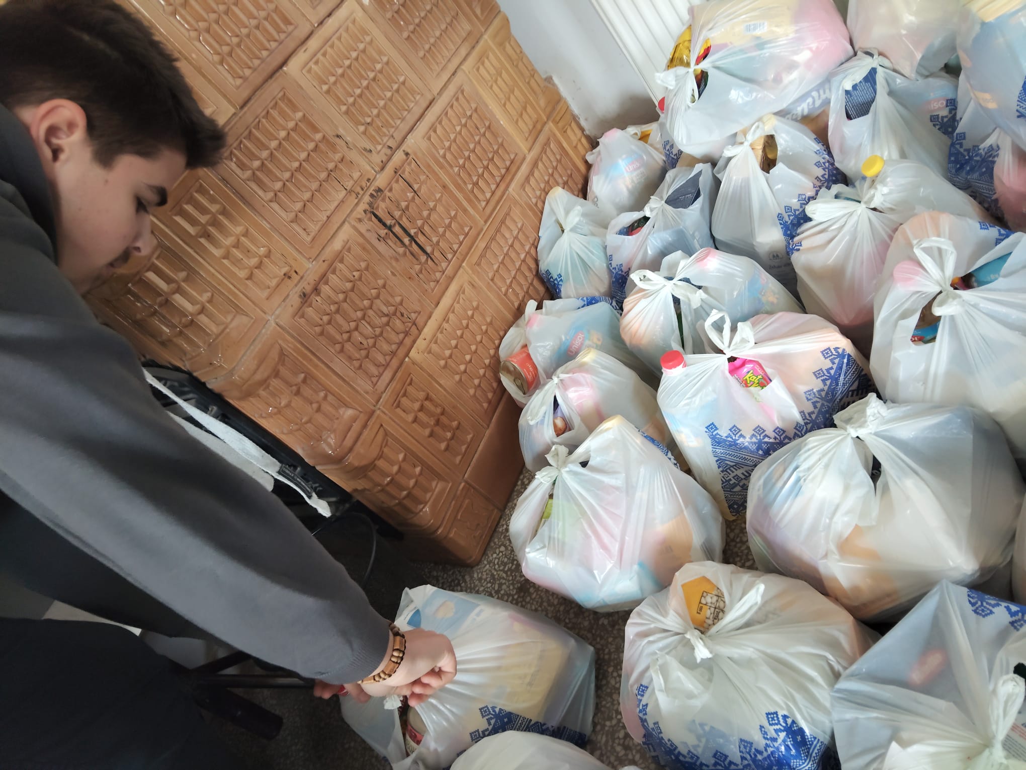 100 de pachete cu alimente au fost dăruite persoanelor nevoiașe din Suceava (blocul 48 din fața Colegiului Național „Mihai Eminescu” și blocul social de lângă Inspectoratul Școlar), precum și din Pătrăuți, Mitoc, Adâncata și Mușenița.
