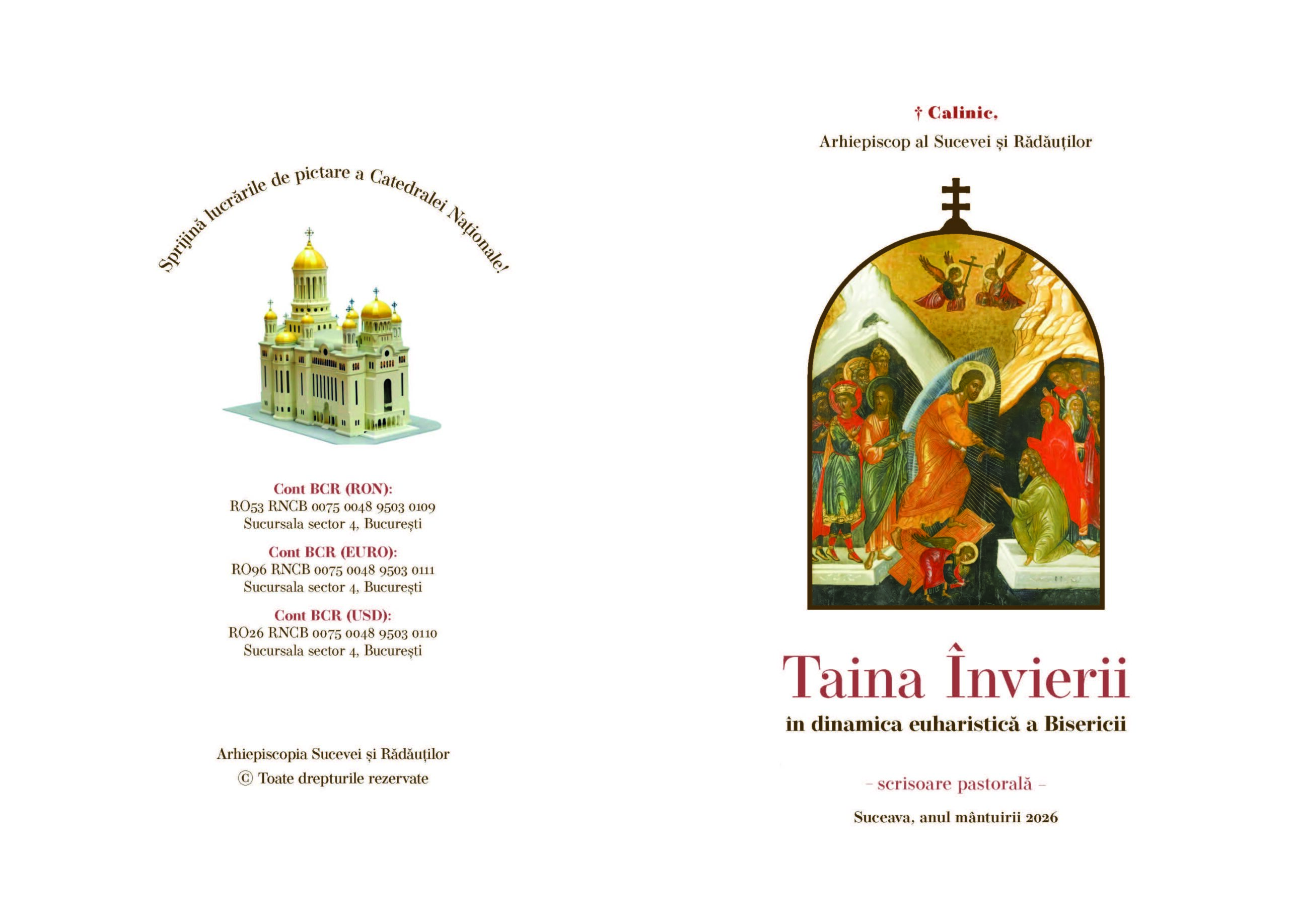 † CALINIC PRIN HARUL LUI DUMNEZEU, ARHIEPISCOP AL SUCEVEI ȘI RĂDĂUȚILOR PREACUVIOSULUI CIN MONAHAL, PREACUCERNICULUI CLER ȘI DREPTMĂRITORILOR CREȘTINI DIN ARHIEPISCOPIA SUCEVEI ȘI RĂDĂUȚILOR Har, pace și ajutor de la preamilostivul Dumnezeu, iar de la noi, arhierească binecuvântare! Preacuvioși și preacucernici părinți, preacuvioase maici, iubiți credincioși și credincioase, Hristos a înviat! „Hristos a înviat!” este...Citește mai departe