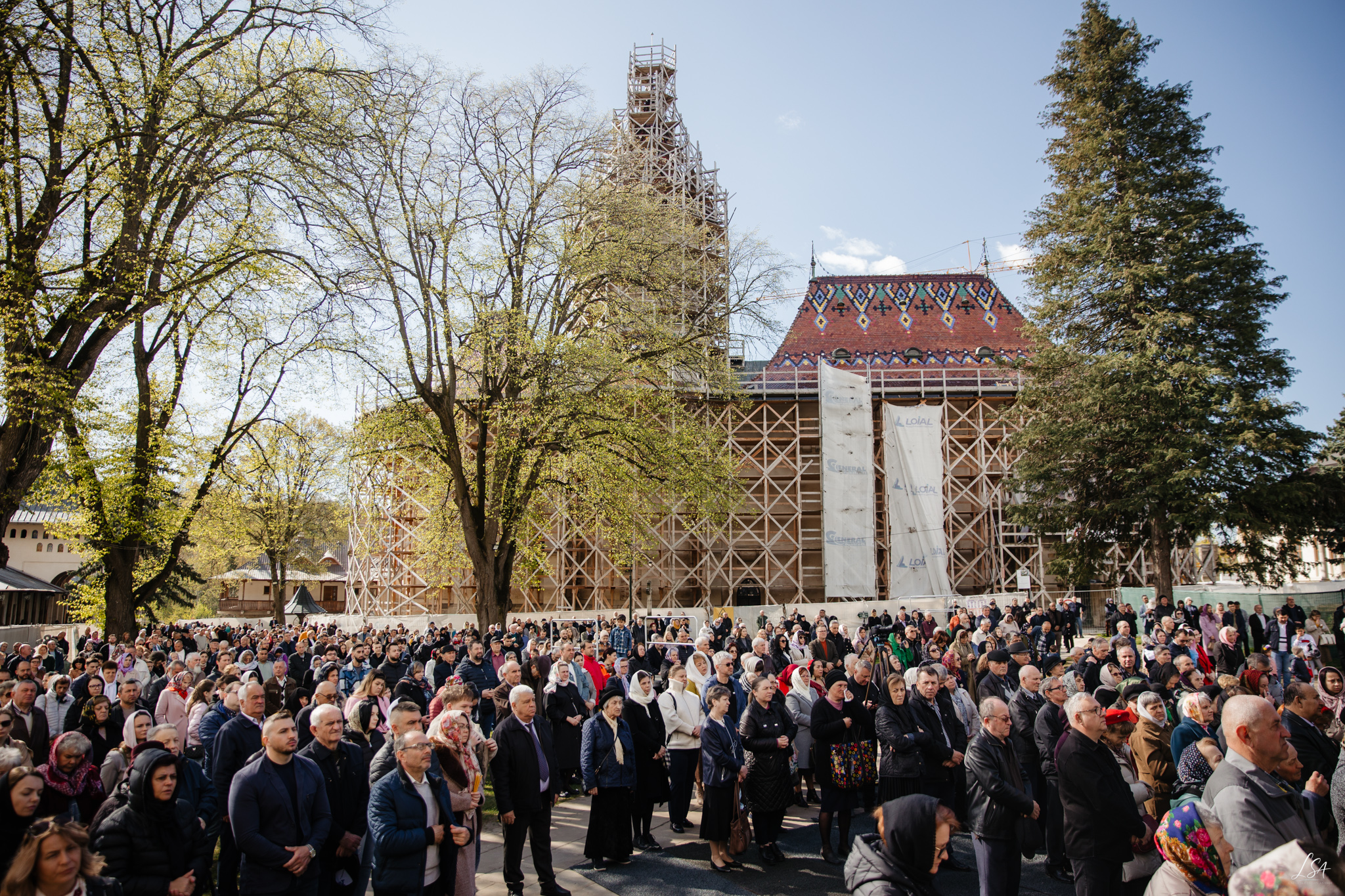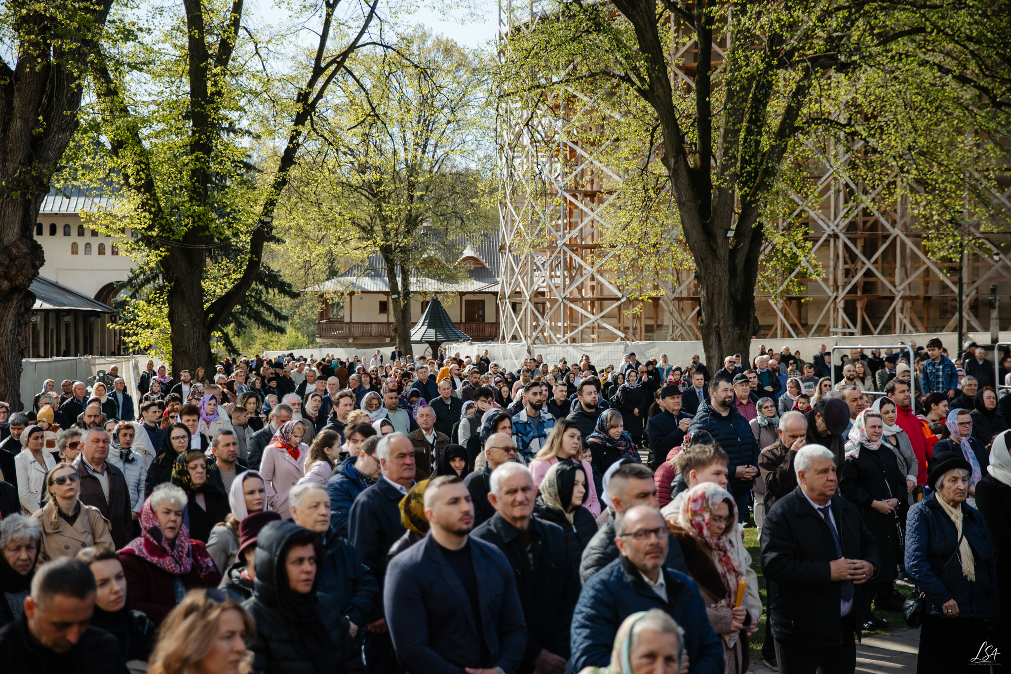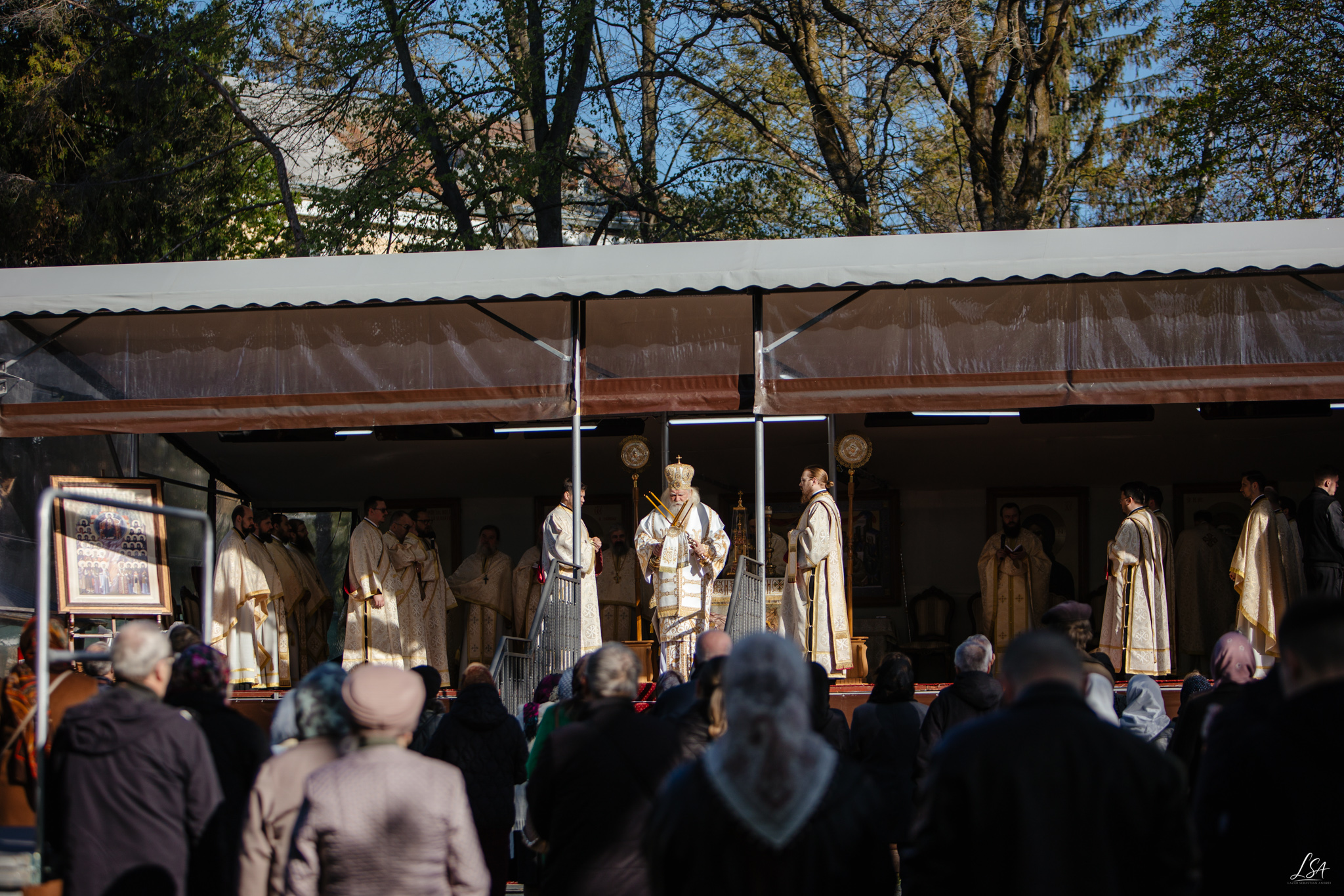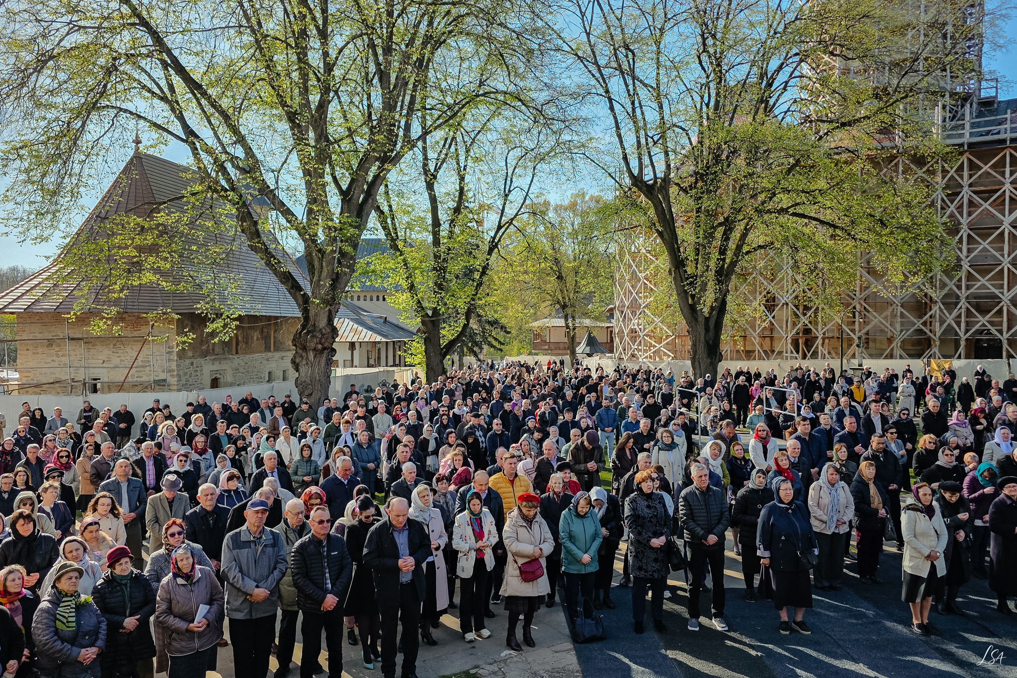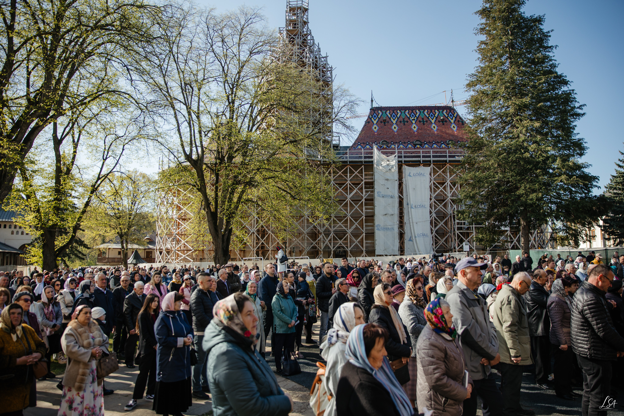 În duminica afierosită în Biserica Ortodoxă celor dintâi mărturisitoare ale Învierii Mântuitorului nostru Iisus Hristos, Sfintele Femei Mironosițe, și, prin extensie, tuturor femeilor creștine, Înaltpreasfințitul Părinte Calinic, Arhiepiscop al Sucevei și Rădăuților, a săvârșit Sfânta și Dumnezeiasca Liturghie la altarul amenajat lângă turnul-clopotniță al așezământului monahal care de peste cinci veacuri este reper de viață spirituală în Cetatea Sucevei. În comuniune liturgică i s-a alăturat un sobor de preoți și diaconi, slujitori ai Catedralei Arhiepiscopale și ai Mănăstirii „Sfântul Ioan cel Nou”, sub protia arhim. Valerian Radu, mare eclesiarh.