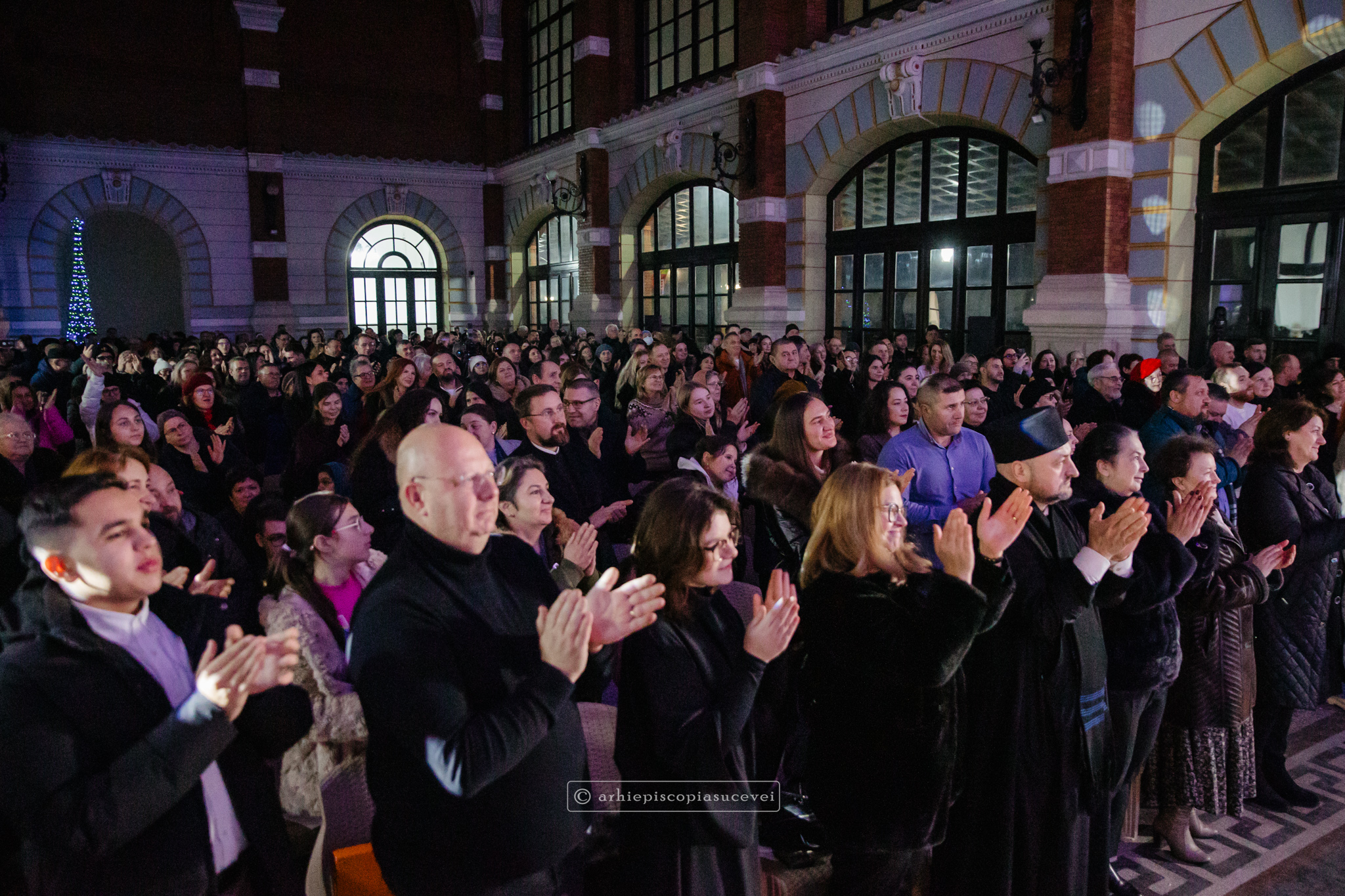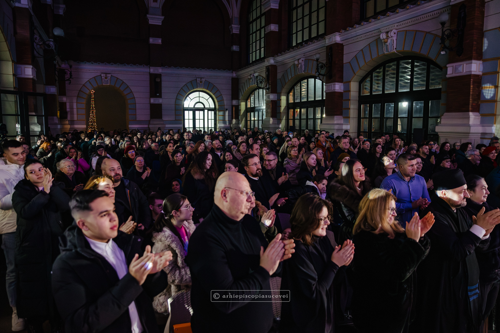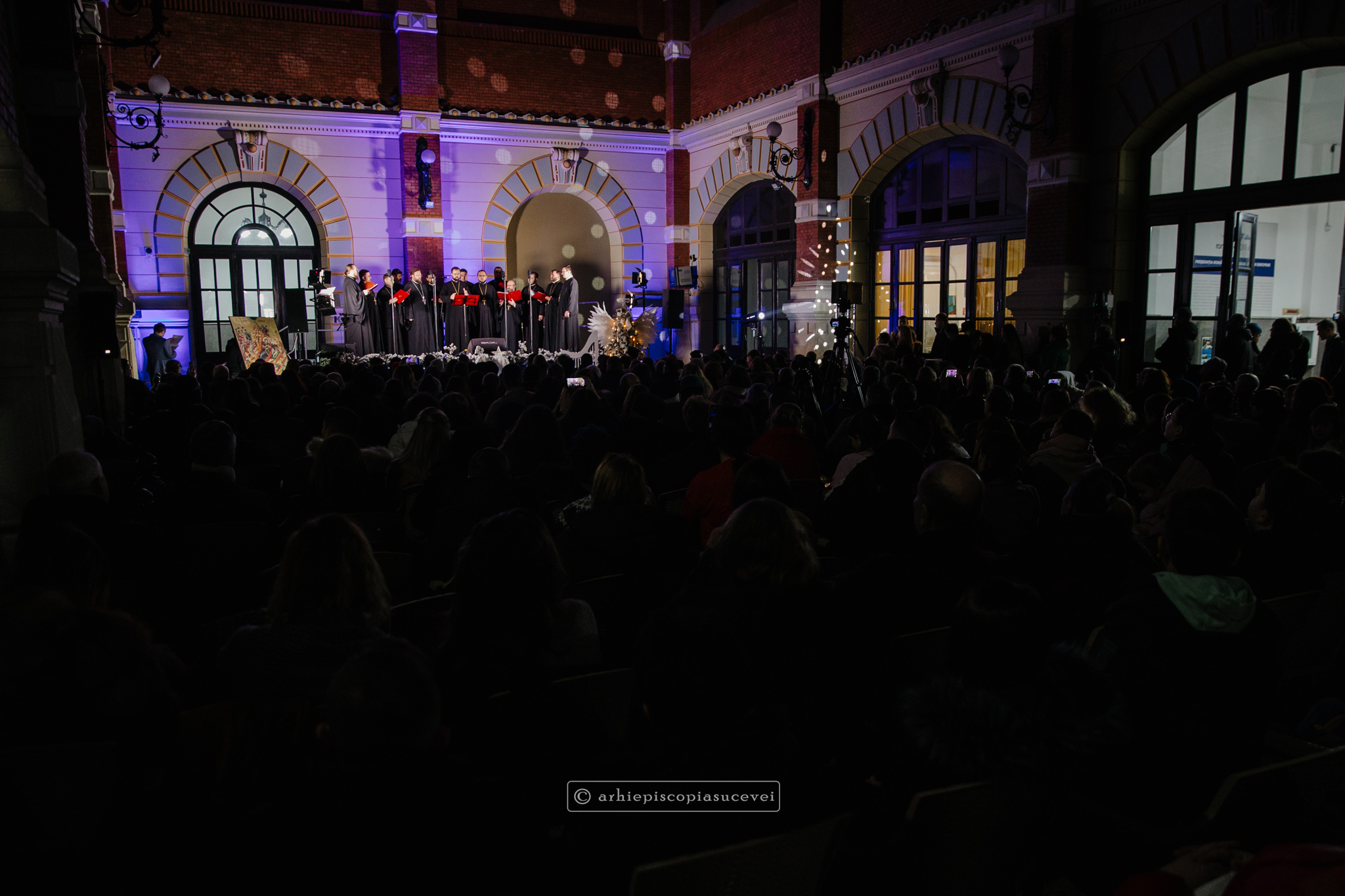 În Duminica dinaintea Nașterii Domnului, în Sala de festivități a Gării Burdujeni, care odată cu debutul concertului s-a dovedit a fi neîncăpătoare, Grupul Psaltic „Dimitrie Suceveanu” al Catedralei Arhiepiscopale din Suceava și Corala „Armonia” din Constanța, alături de tineri artiști de pe meleaguri bucovinene, au povestit în glas de colindă despre întruparea Celui Care a venit în lume ca să o mântuiască.