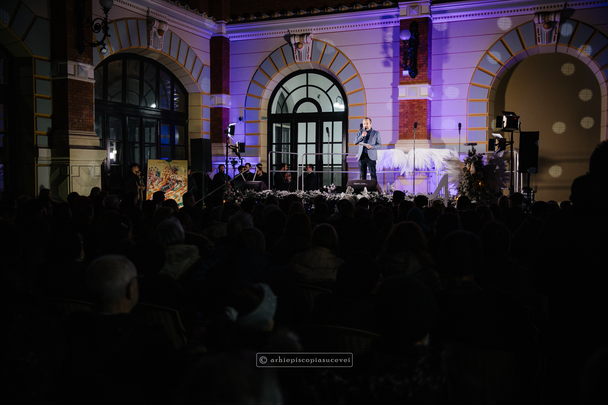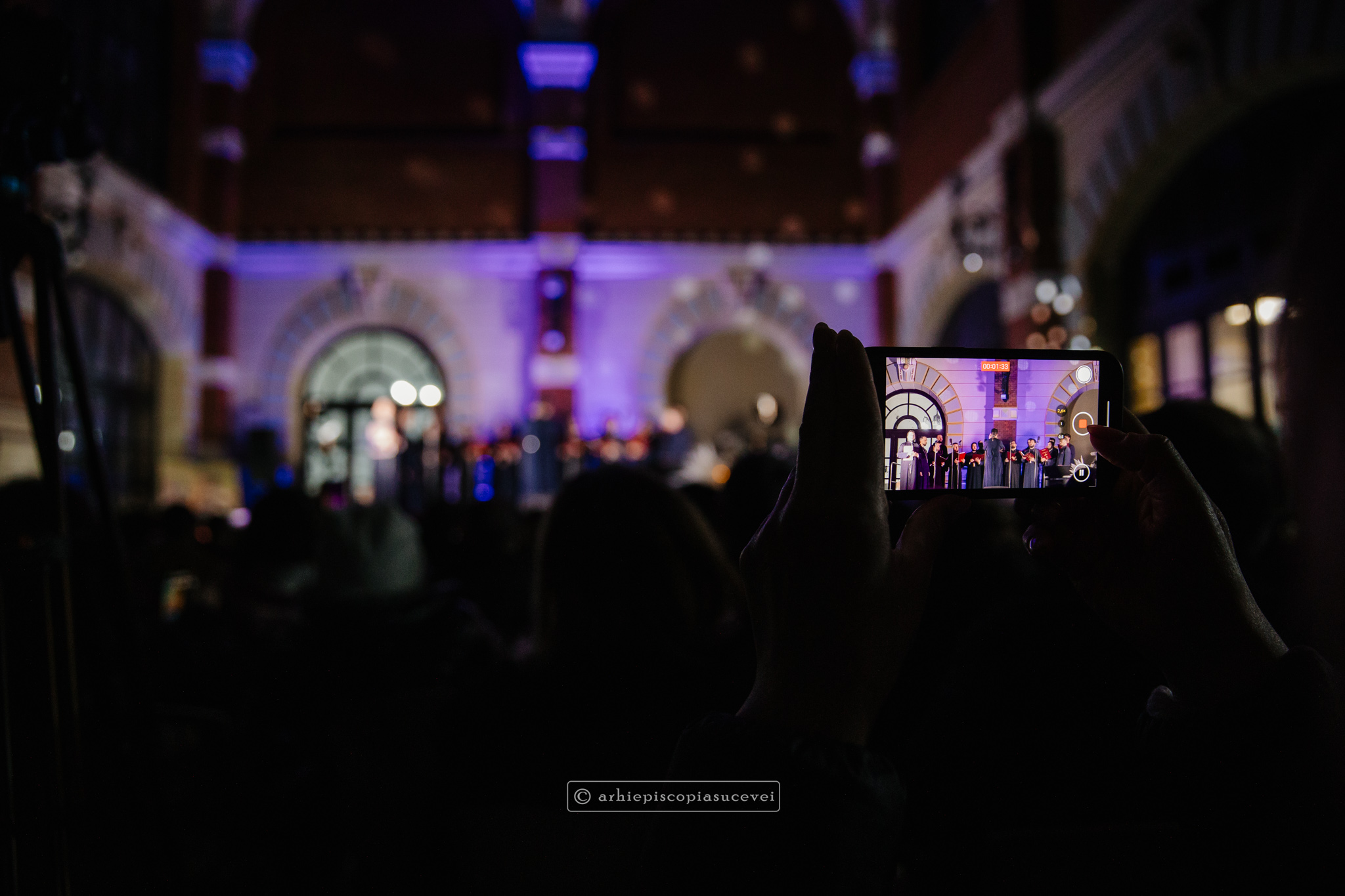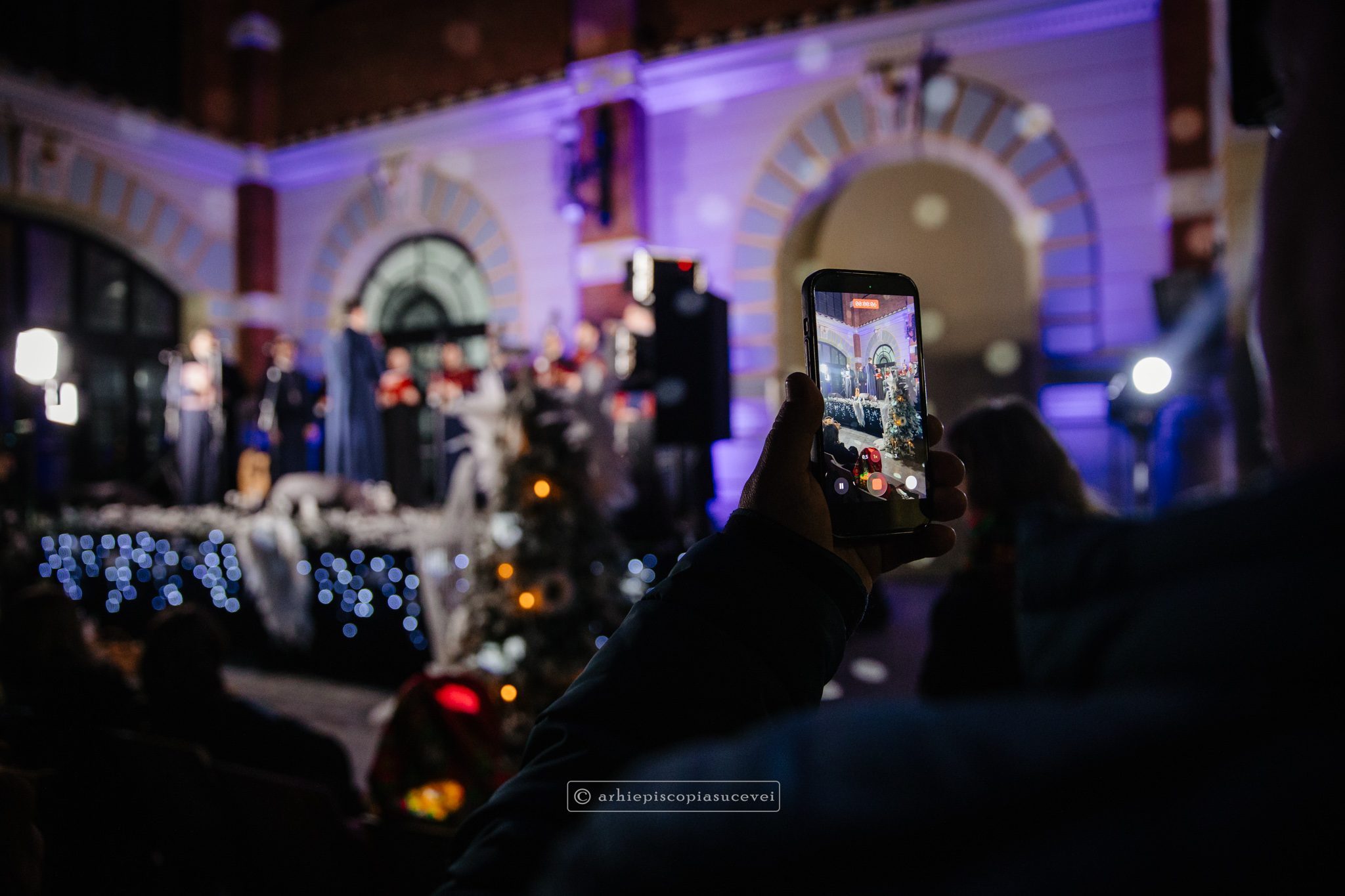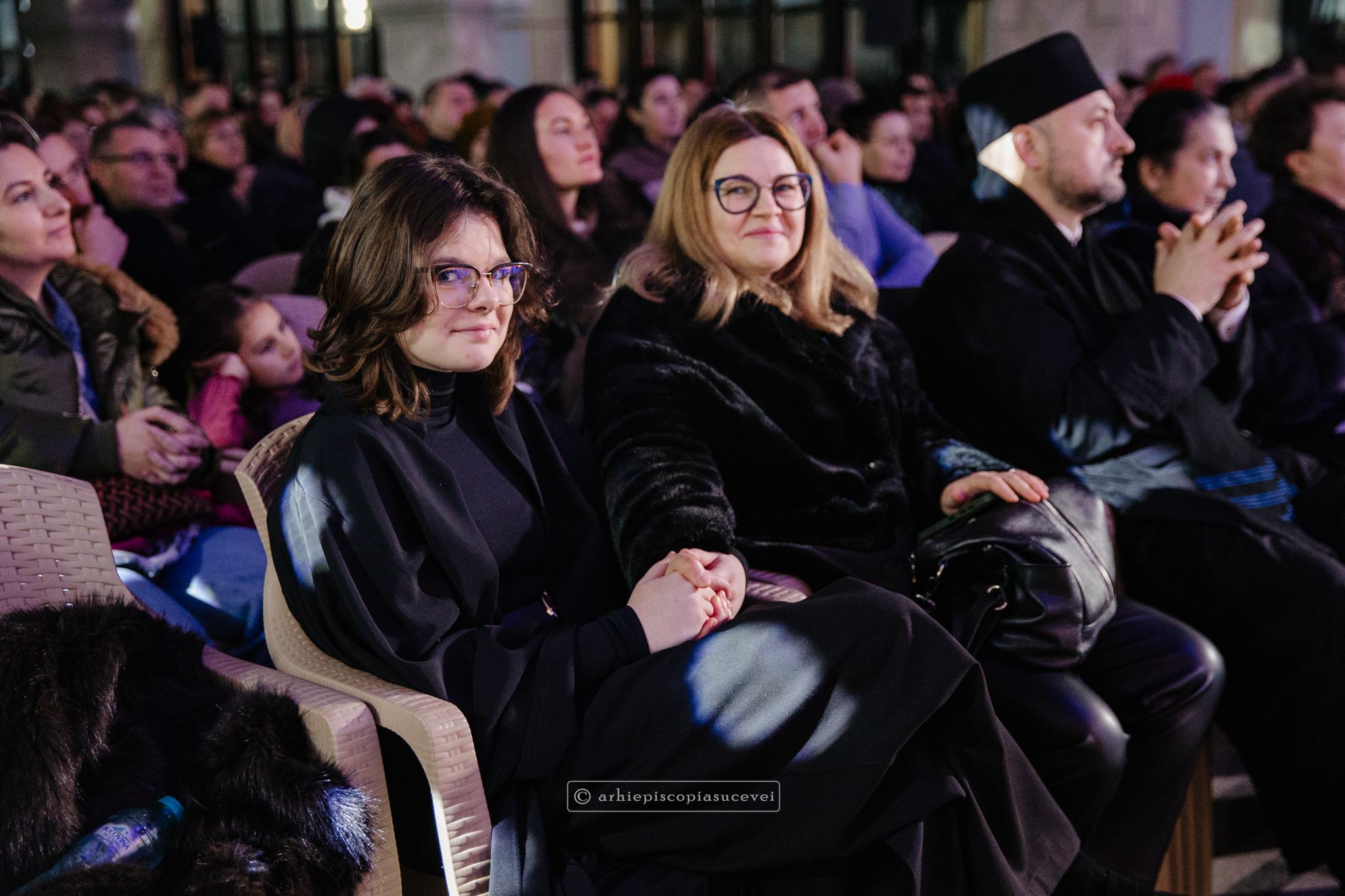 În Duminica dinaintea Nașterii Domnului, în Sala de festivități a Gării Burdujeni, care odată cu debutul concertului s-a dovedit a fi neîncăpătoare, Grupul Psaltic „Dimitrie Suceveanu” al Catedralei Arhiepiscopale din Suceava și Corala „Armonia” din Constanța, alături de tineri artiști de pe meleaguri bucovinene, au povestit în glas de colindă despre întruparea Celui Care a venit în lume ca să o mântuiască.