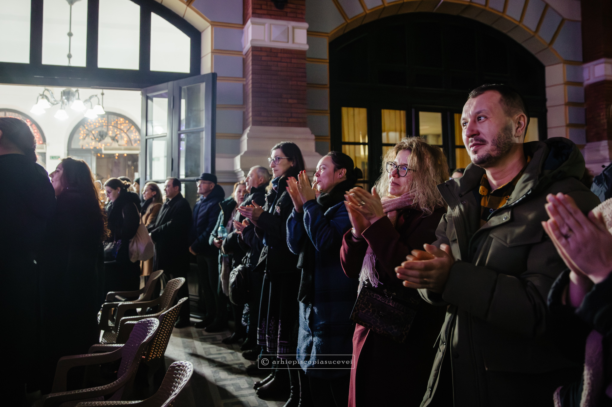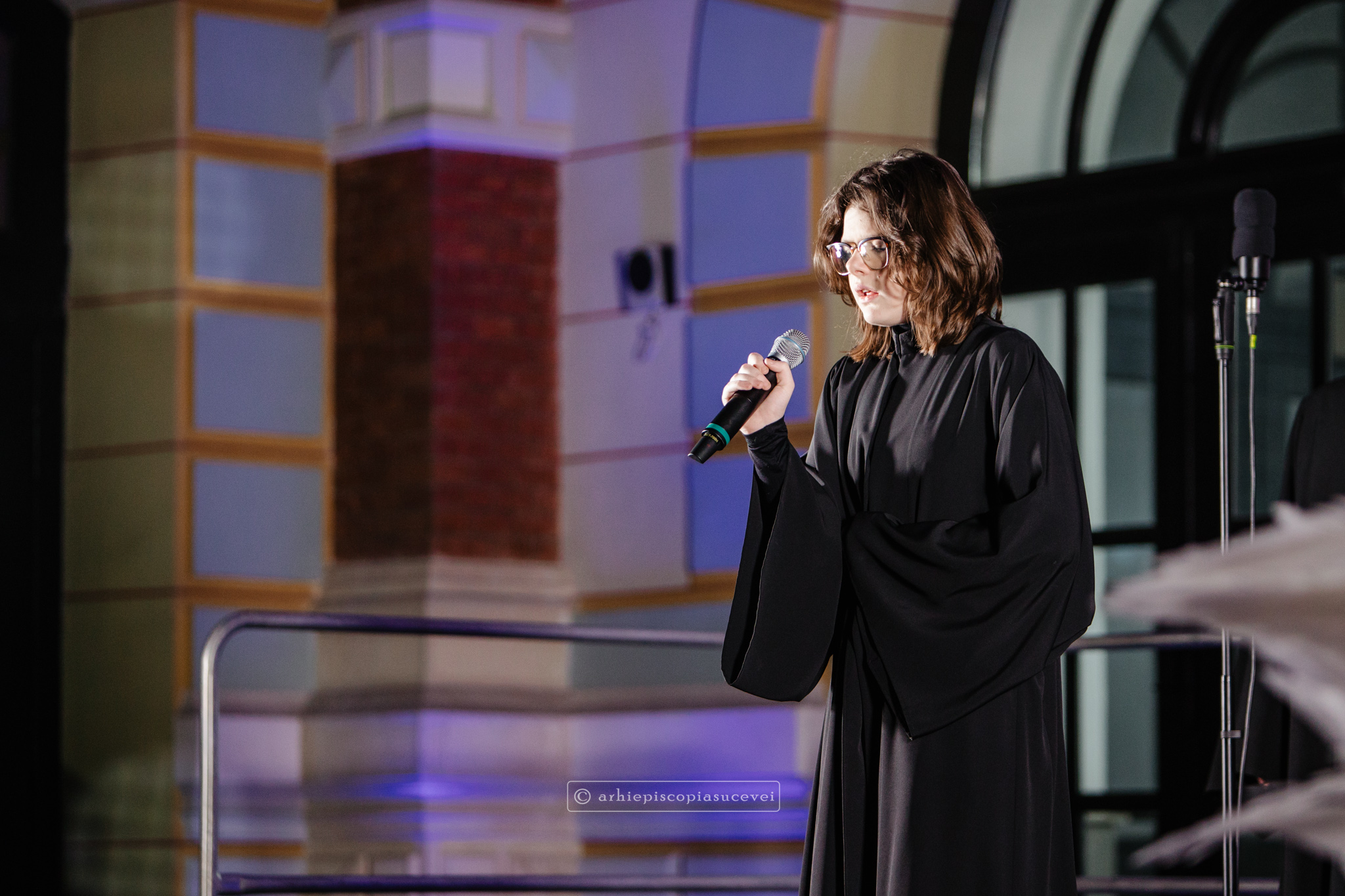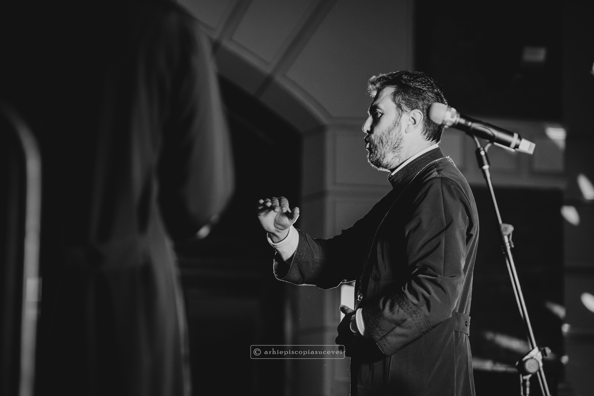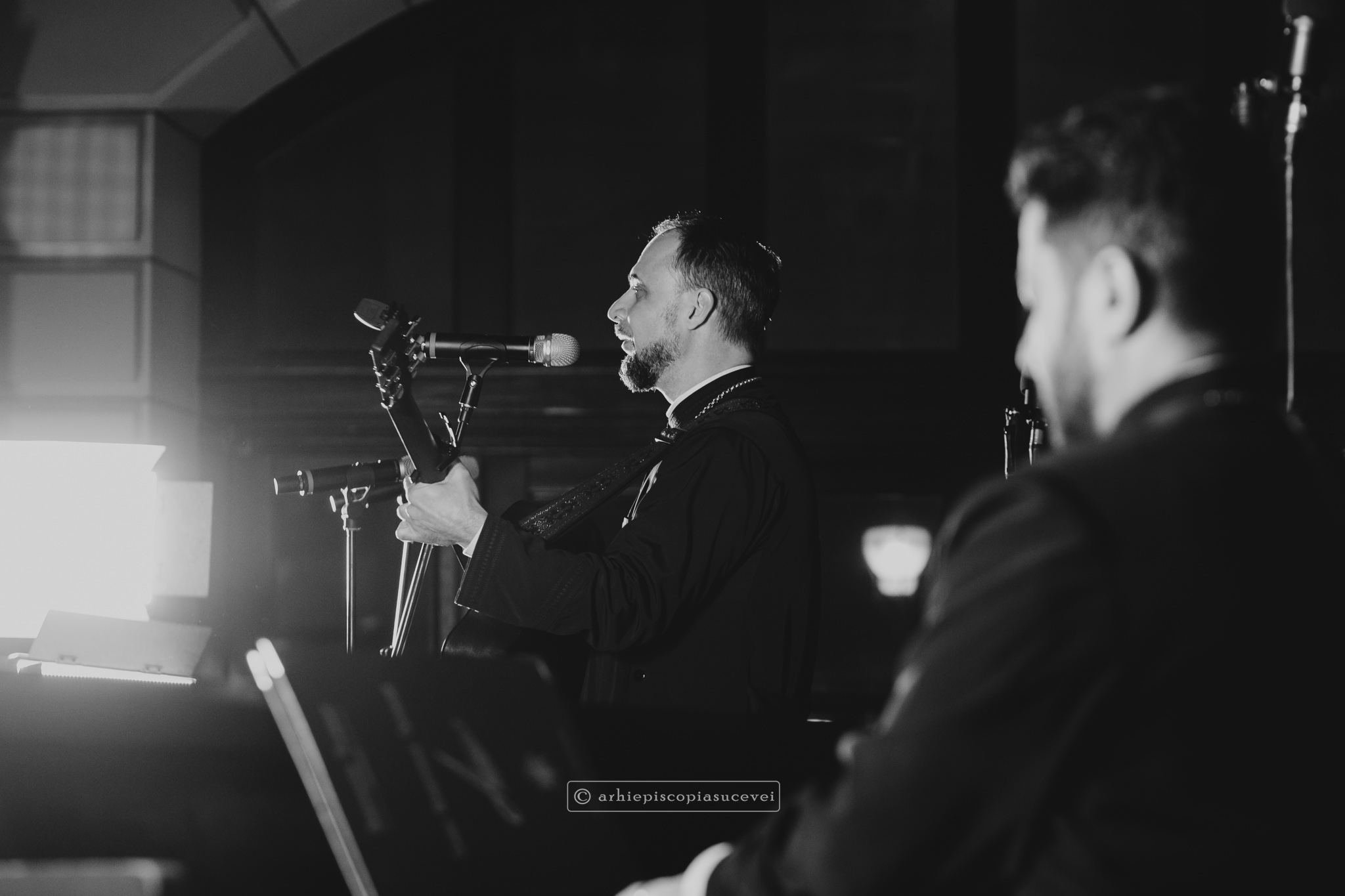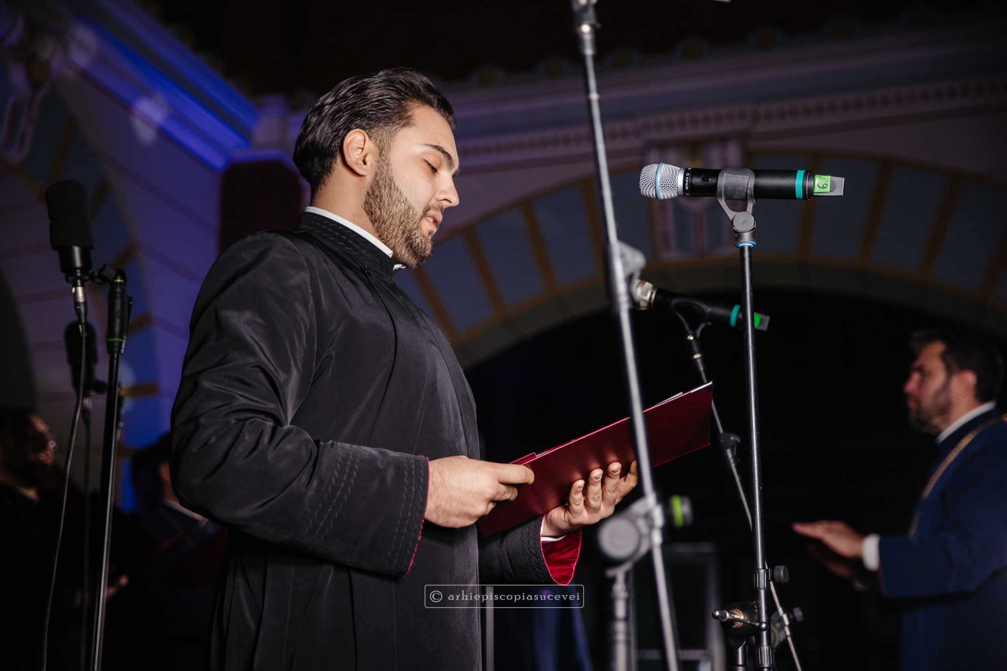 Cei dintâi care au readus în prim plan „bucuria pe care au vestit-o îngerii când S-a născut Hristos” au fost membrii Grupului Psaltic „Dimitrie Suceveanu” al Catedralei Arhiepiscopale din Suceava. Sărbătorind de curând cinci ani de activitate, grupul a fost constituit în luna noiembrie a anului 2020, la inițiativa și cu binecuvântarea Înaltpreasfințitului Părinte Arhiepiscop Calinic. Dirijat de arhid. Ilie Leonte, acesta are în componență slujitori ai Catedralei Arhiepiscopale, preoți și diaconi, cu studii teologice și conservator. Grupul psaltic poate fi audiat zilnic și în cadrul slujbelor liturgice oficiate la Mănăstirea „Sfântul Ioan cel Nou”, transmise în direct pe canalul de YouTube al Arhiepiscopiei Sucevei și Rădăuților. Prin intermediul recitalului de colinde românești din această seară au fost dăruite dăruit publicului momente alese, pline de emoție.