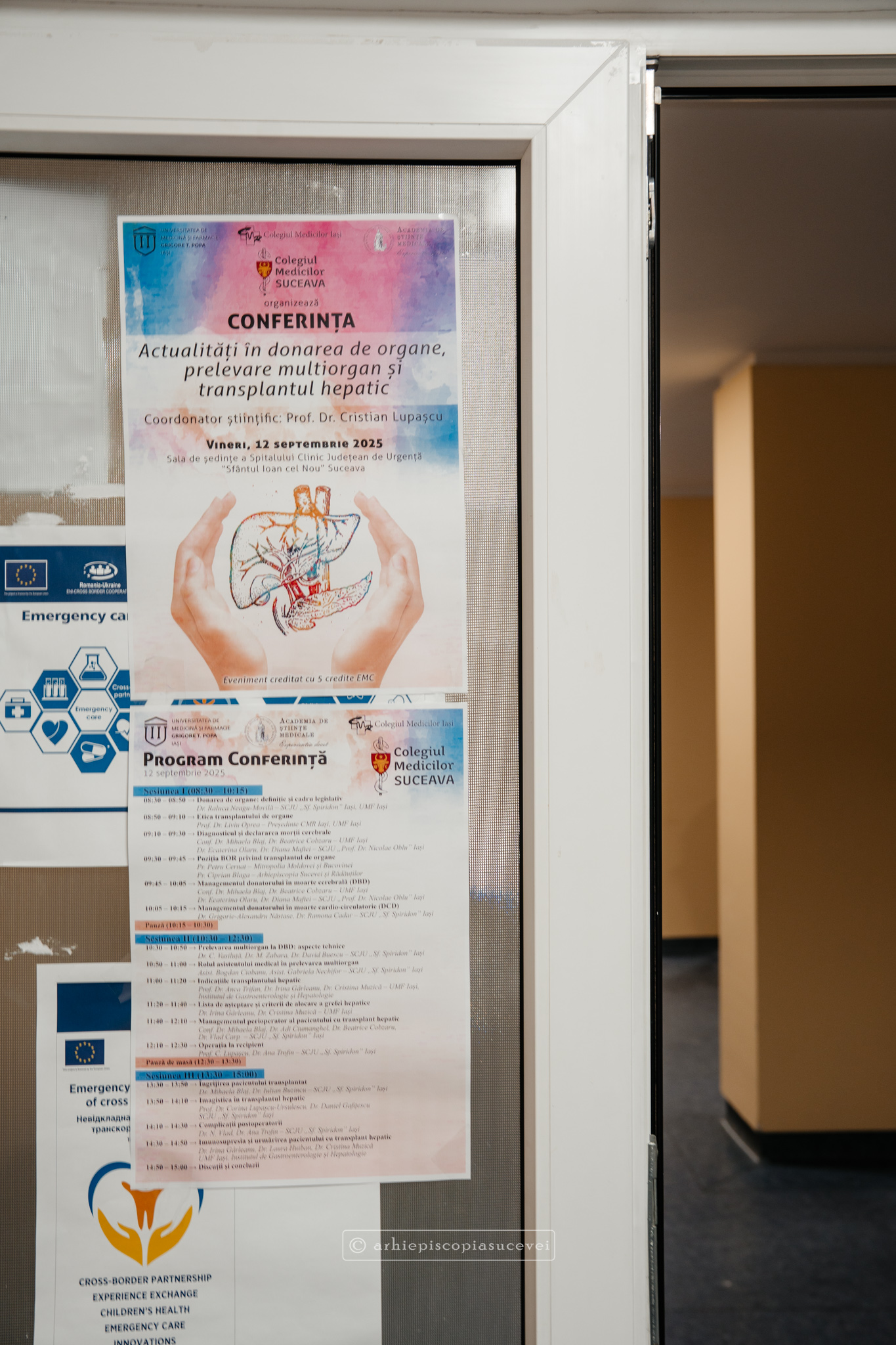 Spitalul Clinic Județean de Urgență „Sfântul Ioan cel Nou” Suceava a fost astăzi, 12 septembrie 2025, gazda unui eveniment științific de referință, Conferința „Actualități în donarea de organe, prelevare multiorgan și transplantul hepatic”. Manifestarea adresată profesioniștilor din domeniul medical a fost organizată de echipa prof. dr. Cristian Lupașcu, în parteneriat cu Colegiul Medicilor Suceava, Colegiul Medicilor Iași, Universitatea de Medicină și Farmacie „Grigore T. Popa” și Academia de Științe Medicale.