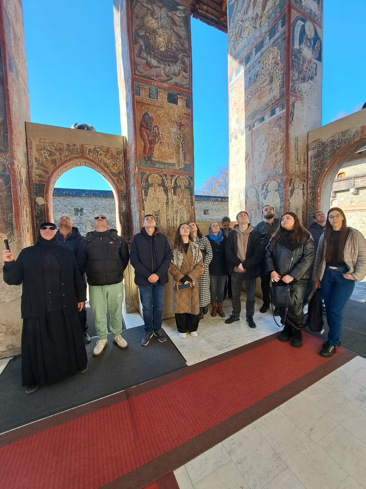 Prezentarea detaliată a semnificațiilor picturii murale a Mănăstirii Moldovița, precum și a rolului acesteia în arta și civilizația epocii lui Petru Rareș, a fost susținută de cuvioasa maică stavroforă Tatiana, cunoscută pentru dăruirea și pasiunea cu care, de decenii, transmite vizitatorilor frumusețea acestui monument. Dialogul viu, întrebările și interesul manifestat de studenți au transformat activitatea într-un veritabil atelier interdisciplinar — o îmbinare armonioasă între istorie, artă bizantină, filosofie și teologie.