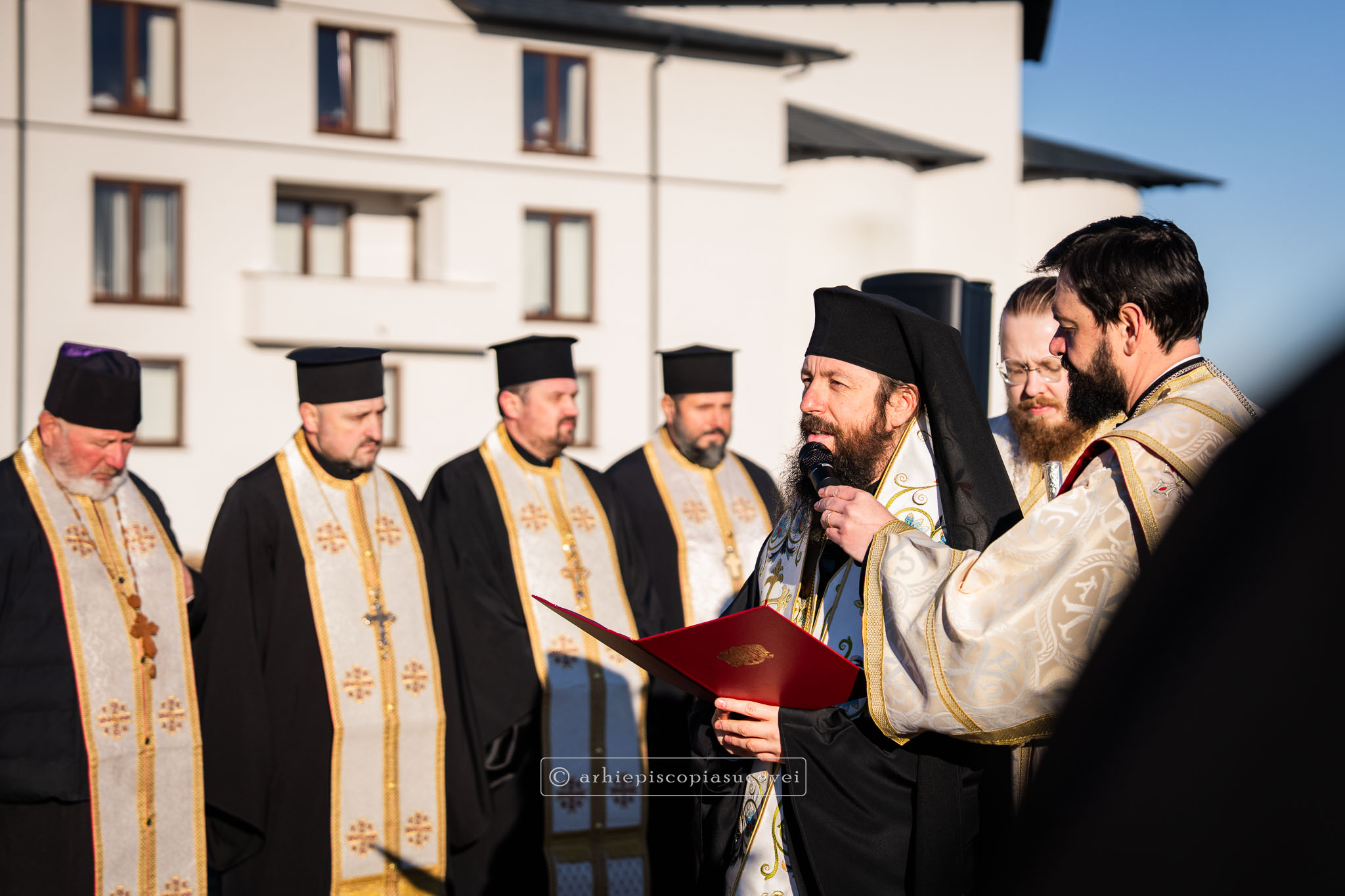 Momentul solemn la care suntem părtași este semn al lucrului bun făcut împreună. În Hrisovul citit adineauri, au fost amintite doar câteva dintre persoanele care au gândit, au lucrat, au bătut la uși, au sperat și ne-au adus până în această etapă. Dar împreună-lucrarea lor, și a altora bineînțeles, se cere concretizată, dinamizată și replicată. Iar prezența Domniilor voastre ne încurajează că așa va fi. De aceea, permiteți-mi ca, în numele IPS Părinte Arhiepiscop Calinic, să vă adresez, cu anticipație, mulțumiri pentru susținere și împreună lucrare și pe viitor. Pentru că acesta ne este crezul adânc: punerea împreună a duhului și a mâinilor, din partea Bisericii și a autorităților administrative, medicale și sociale atrag, cu prisosință, binecuvântarea lui Dumnezeu.