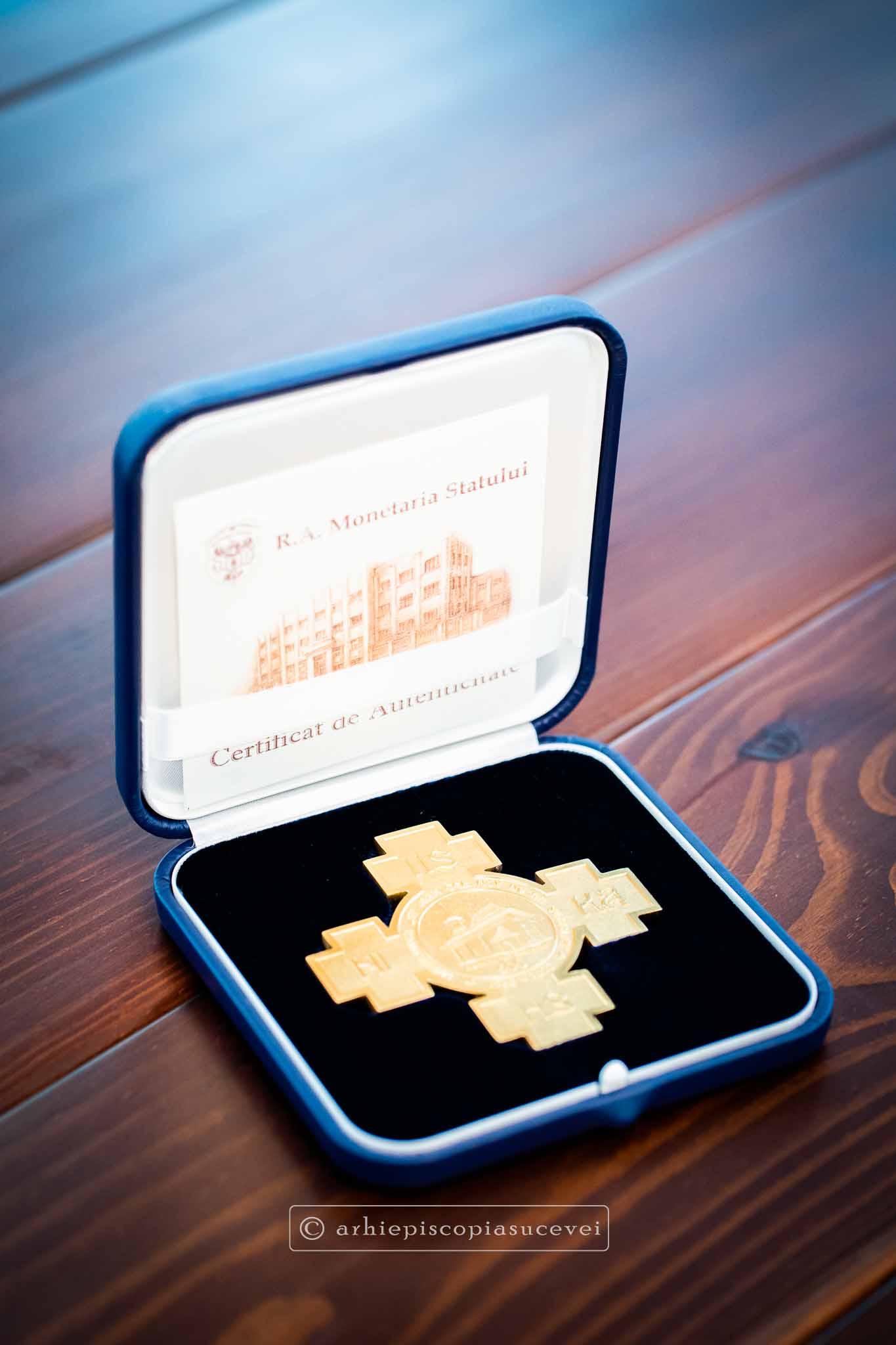 Apoi a fost înmânată Medalia jubiliară – înscrisă în crucea bimilenară a istoriei și jertfei poporului roman invitaților speciali ai evenimentului, domnului Adrian Alui Gheorghe și protosinghelului Iustin Taban, „în semn de aleasă recunoștință pentru contribuția semnificativă adusă de-a lungul timpului la păstrarea și promovarea valorilor spirituale,patrimoniale, educaționale, filantropice, misionare, edilitare, culturale și sociale ale Bisericii și Țării”.