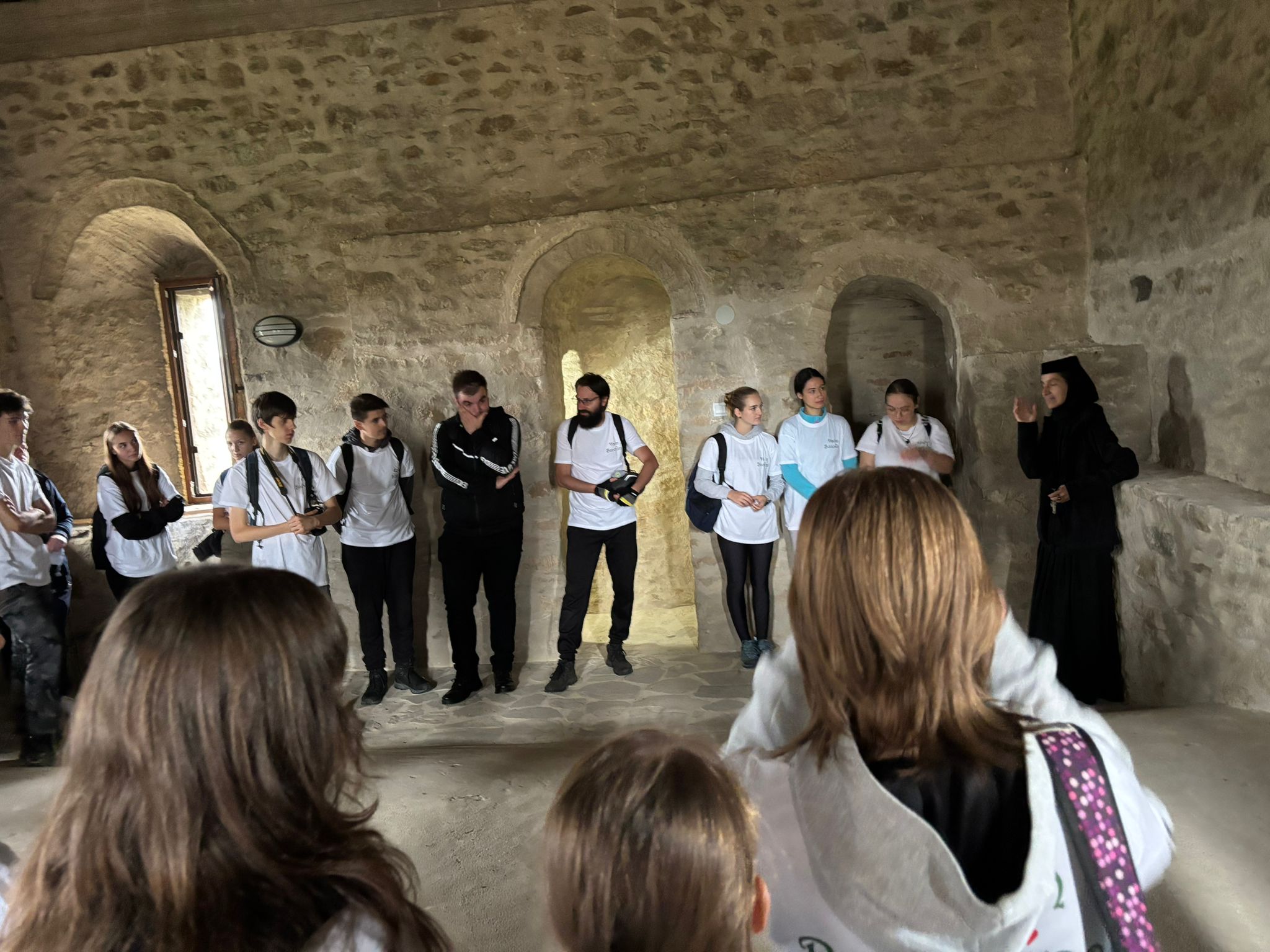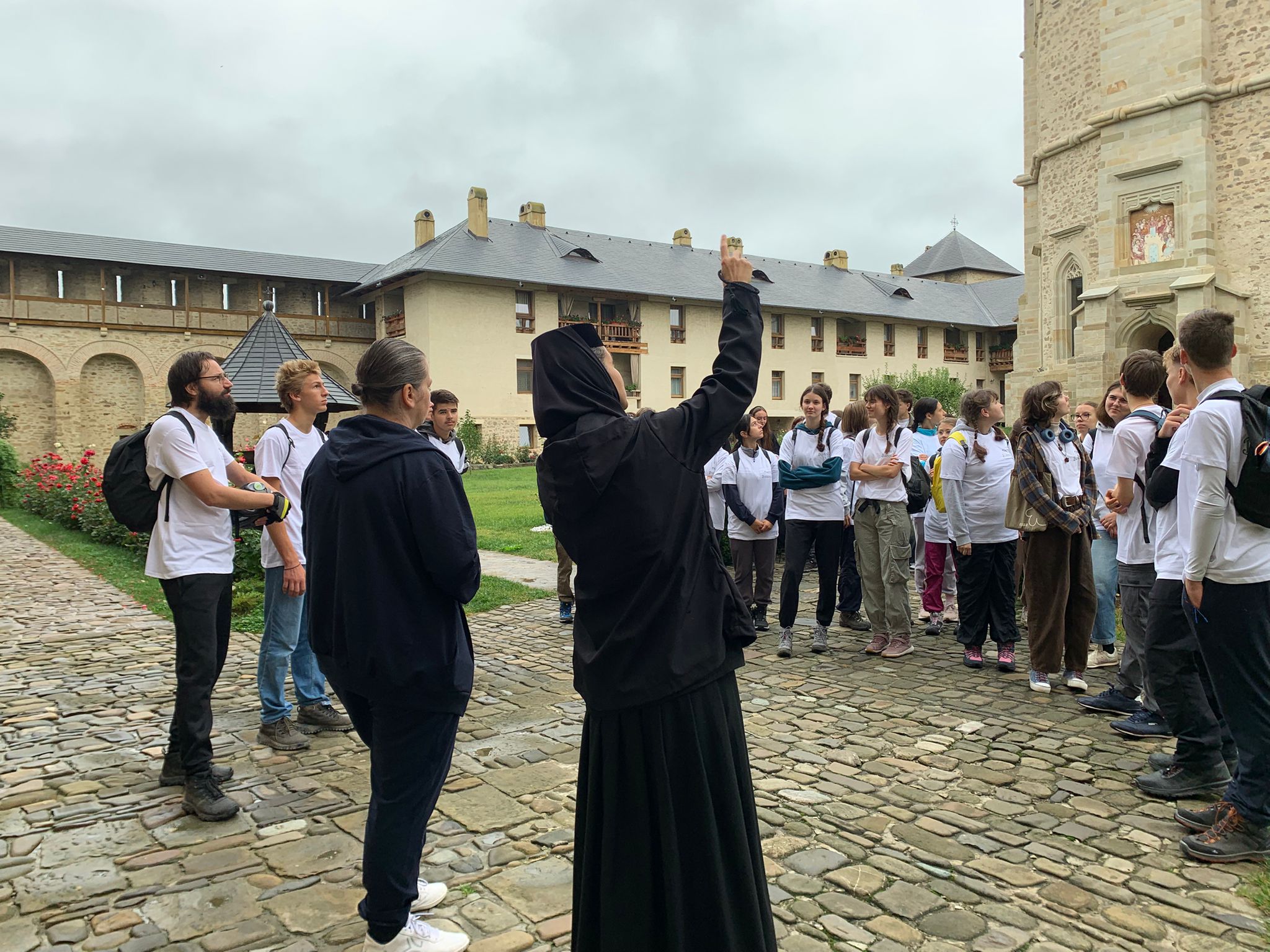 La Mănăstirea Dragomirna, ctitoria cărturarului mitropolit moldovean Anastasie Crimca de la începutul secolului al XVII-lea, tinerii au avut privilegiul să fie ghidați de Maica stareță Maria Magdalena, care le-a arătat Turnul Clopotniță, turnurile de apărare și zidurile împrejmuitoare (lucrarea Domnului Moldovei Miron Barnovschi), Paraclisul și Muzeul. Au rămas impresionați de frumusețea lăcașului de cult, zvelt, înalt, din piatră, cu o turlă cu sculpturi grozave. S-au închinat în biserică și au prins și parte din Sfânta Liturghie.