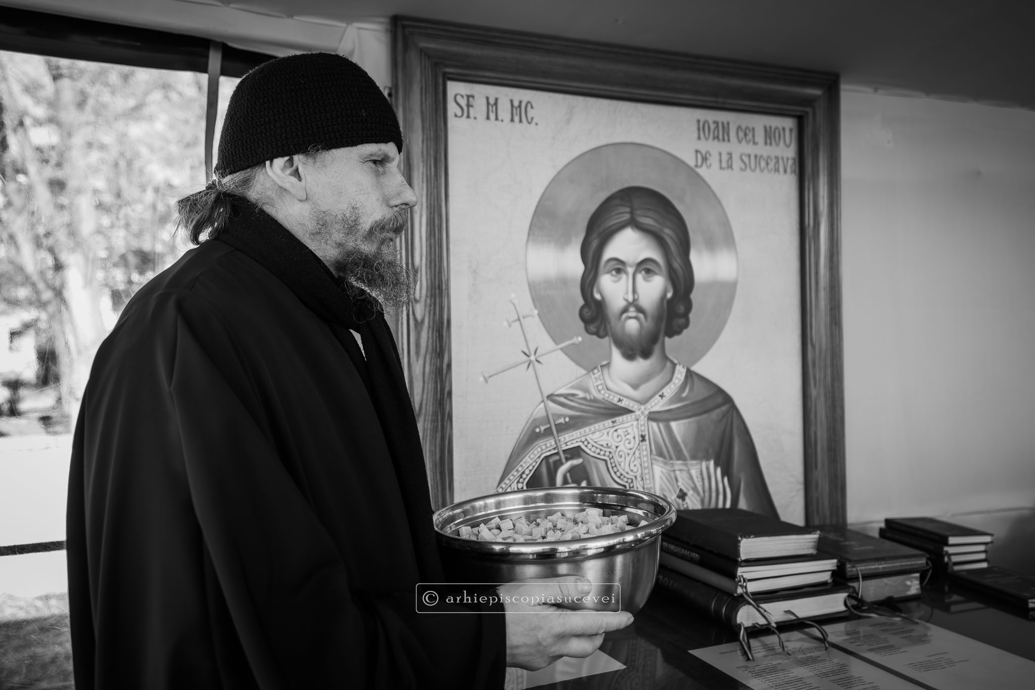 Un buchet de cinci decaloguri a fost pregătit pentru credincioșii eparhiei ocrotite de Sfântul Mare Mucenic Ioan cel Nou pentru cea de-a opta zi a lunii martie, care anul acesta a coincis cu Duminica a doua din Postul Sfintelor Paști, de către Înaltpreasfințitul Părinte Calinic, Arhiepiscop al Sucevei și Rădăuților. În această zi, cunoscută și ca Duminica Sfântului Grigorie Palama, când în Bisericile Ortodoxe se lecturează textul despre Minunea vindecării slăbănogului din Capernaum, Înaltpreasfinția Sa a săvârșit Sfânta Liturghie a Sfântului Vasile cel Mare la altarul exterior al Catedralei Arhiepiscopale cu hramurile „Sfântul Mare Mucenic Gheorghe, purtătorul de biruință” și „Sfântul Mare Mucenic Ioan cel Nou”. Din soborul împreună slujitor au făcut parte clerici ai Centrului Eparhial și slujitori ai mănăstirii, între care părintele stareț, arhim. Serafim Grigoraș.