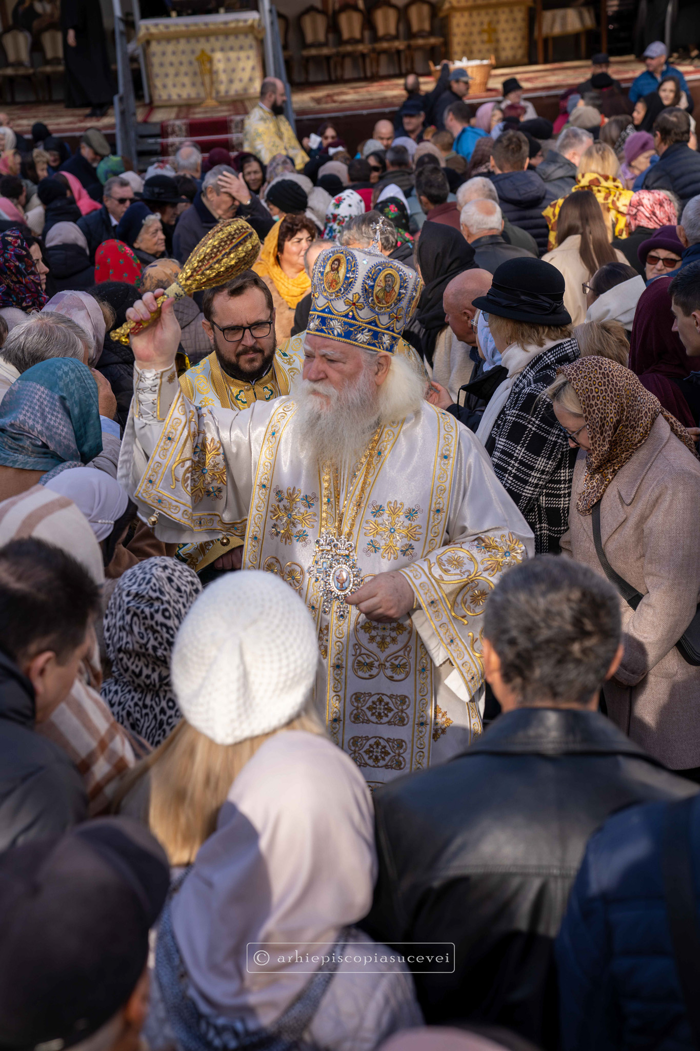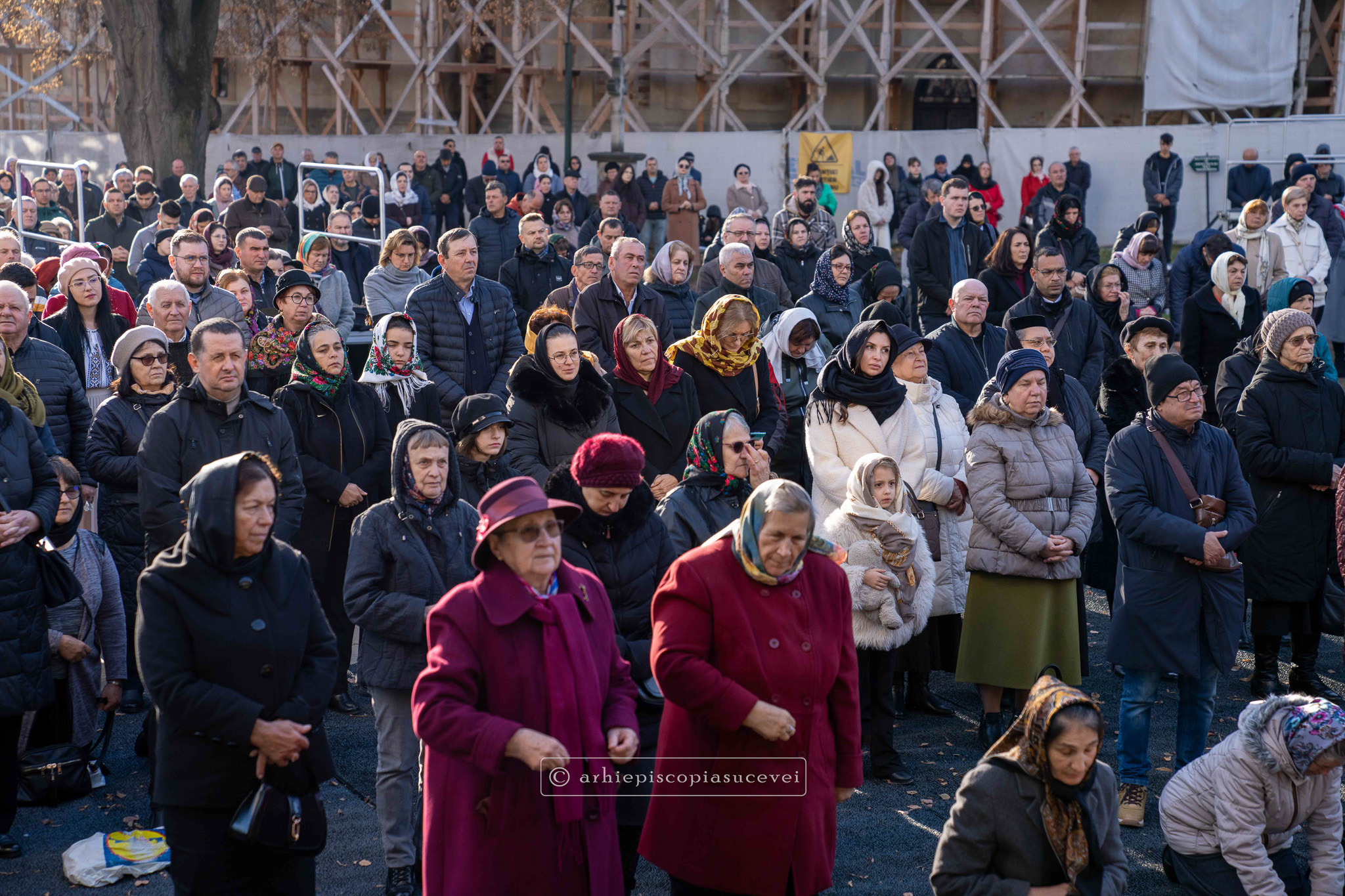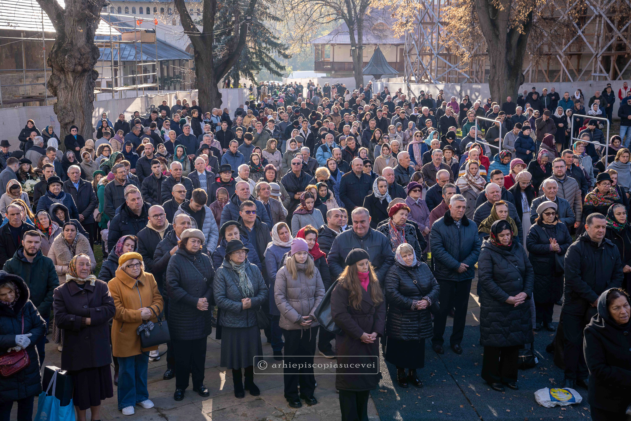 La eveniment au fost prezenți numeroși credincioși, veniți să se bucure de binecuvântarea arhierească și să înalțe rugăciuni la racla cu moaștele ocrotitorului Sucevei, grabnic ajutător și mare făcător de minuni, răspunsurile liturgice fiind date de Corul Mixt al Catedralei Arhiepiscopale, dirijat de părintele Ionuț Lucian Tablan Popescu.