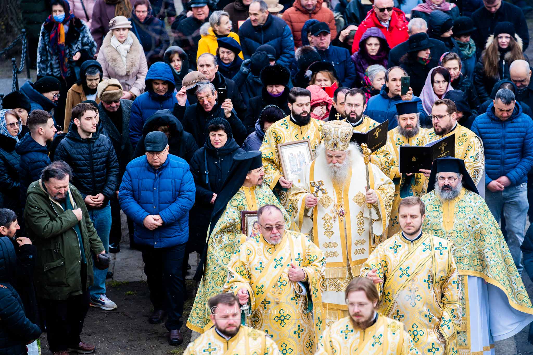 Cu această ocazie, în Duminica dreptei credințe și a unității Bisericii, Înaltpreasfințitul Părinte Calinic, Arhiepiscop al Sucevei și Rădăuților, a săvârșit Sfânta și Dumnezeiasca Liturghie a Sfântului Vasile cel Mare împreună cu un sobor de preoți și diaconi, din care au făcut parte slujitori ai așezământului monahal și clerici de la Centrul Eparhial Suceava, pe scena amenajată în curtea Mănăstirii „Sfântul Ioan cel Nou de la Suceava”.