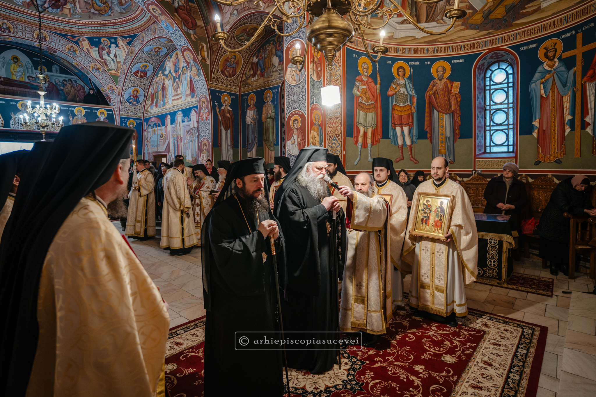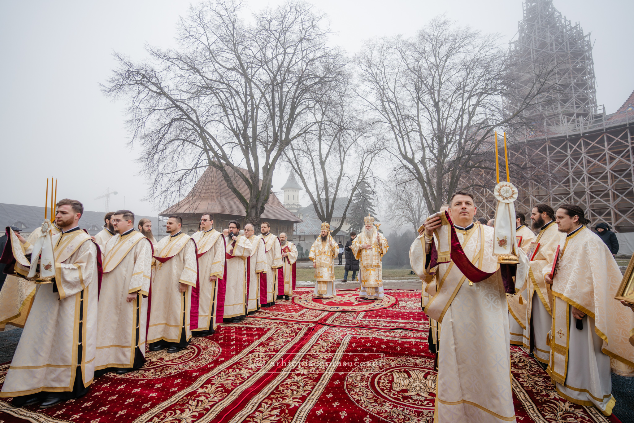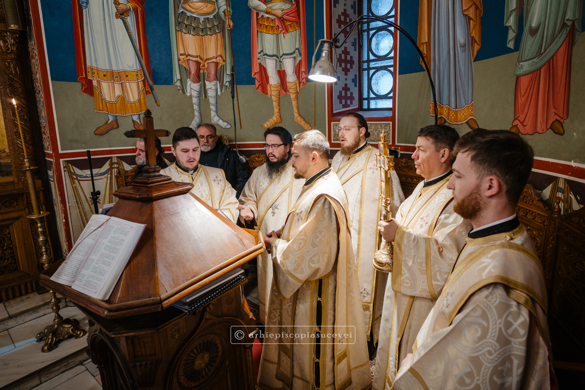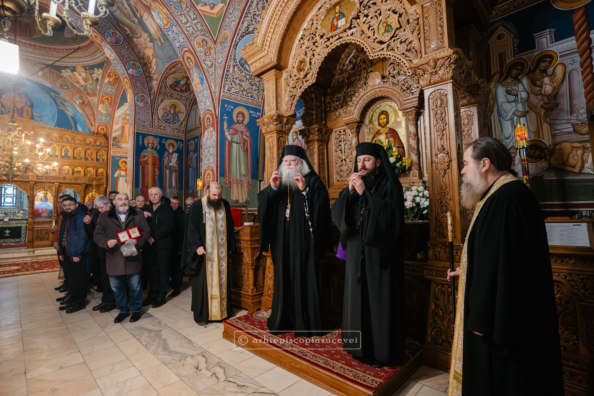 În Duminica biruinței dreptei credințe, 1 martie 2026, Înaltpreasfințitul Părinte Calinic, Arhiepiscop al Sucevei și Rădăuților, și Preasfințitul Părinte Damaschin Dorneanul, Episcop-Vicar, au săvârșit Sfânta și Dumnezeiasca Liturghie a Sfântului Vasile cel Mare împreună cu un sobor de preoți și diaconi, la altarul exterior al Catedralei Arhiepiscopale din Suceava.