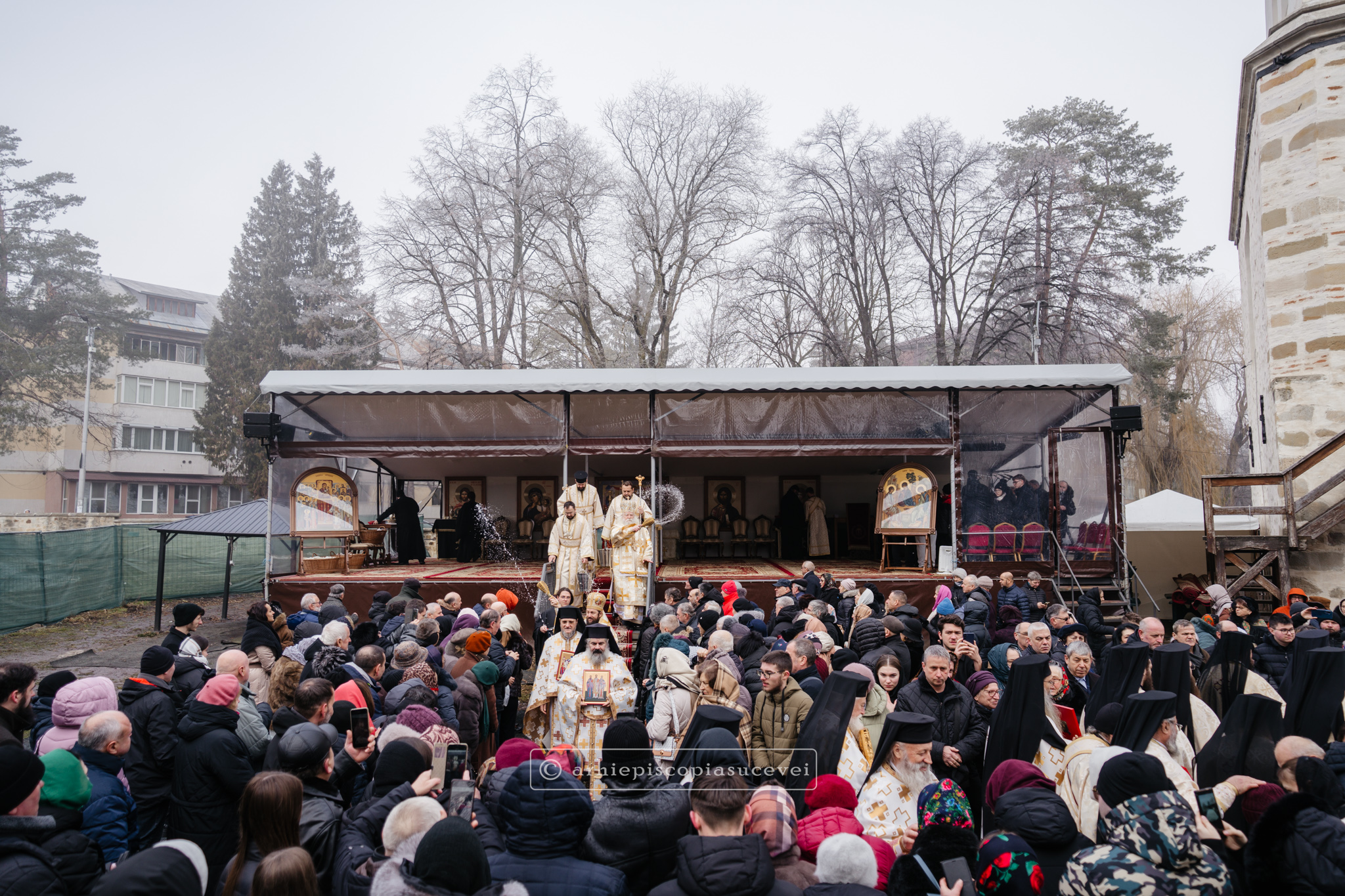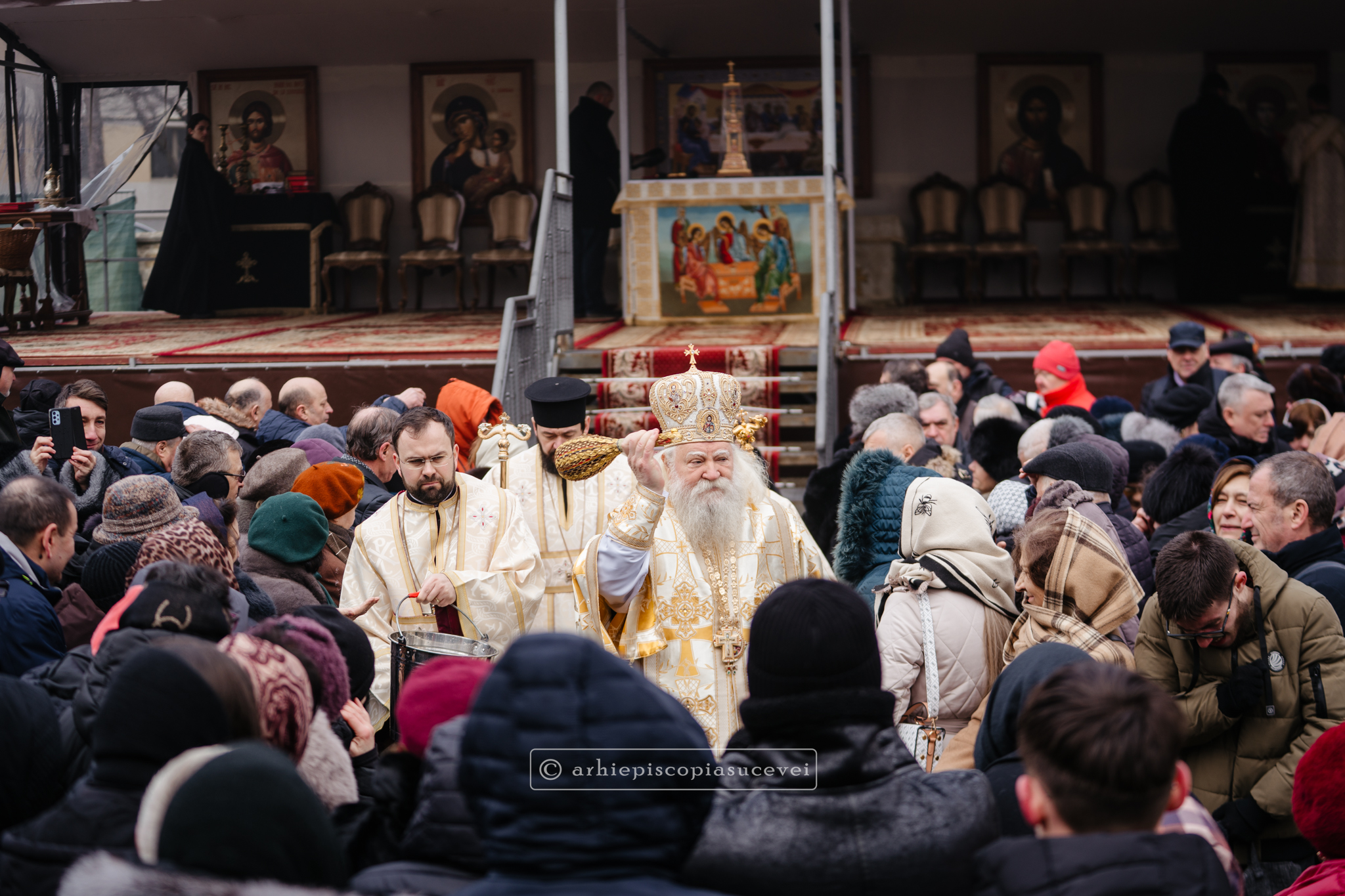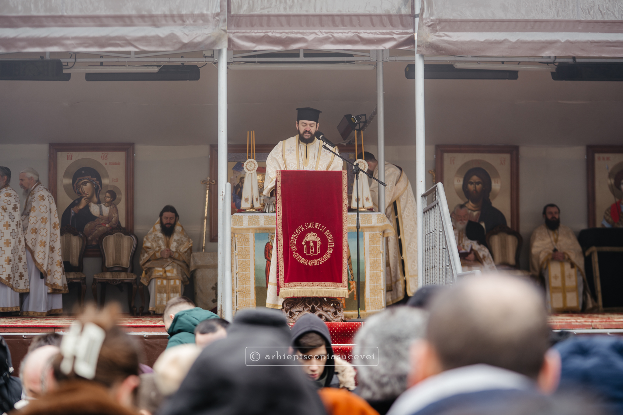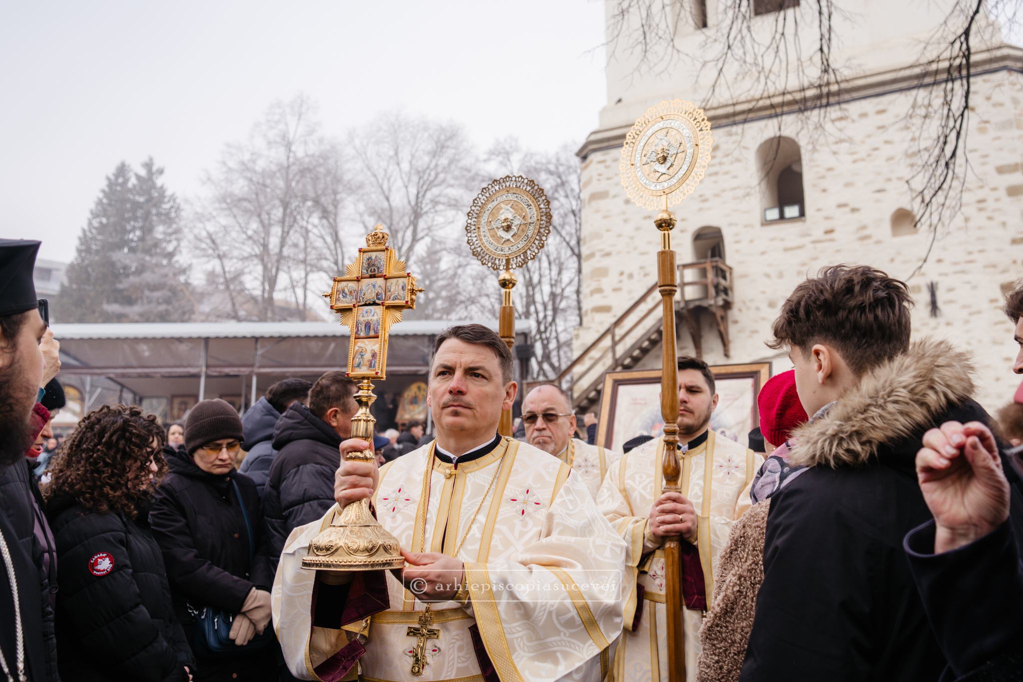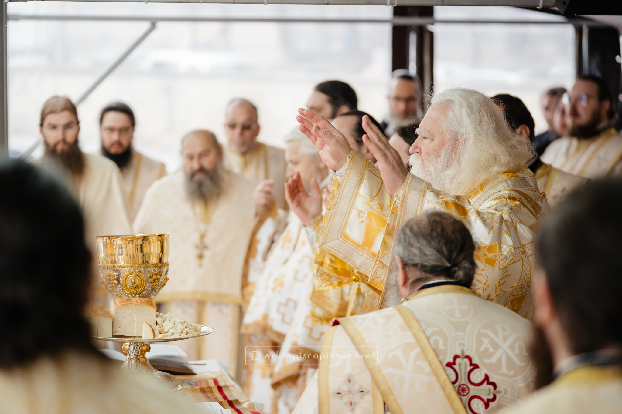 În Duminica biruinței dreptei credințe, 1 martie 2026, Înaltpreasfințitul Părinte Calinic, Arhiepiscop al Sucevei și Rădăuților, și Preasfințitul Părinte Damaschin Dorneanul, Episcop-Vicar, au săvârșit Sfânta și Dumnezeiasca Liturghie a Sfântului Vasile cel Mare împreună cu un sobor de preoți și diaconi, la altarul exterior al Catedralei Arhiepiscopale din Suceava.
