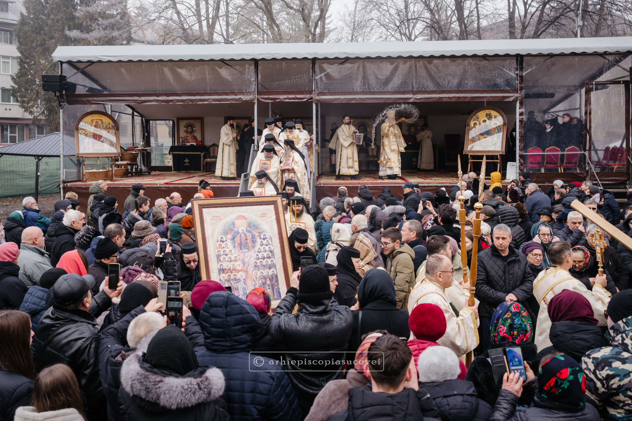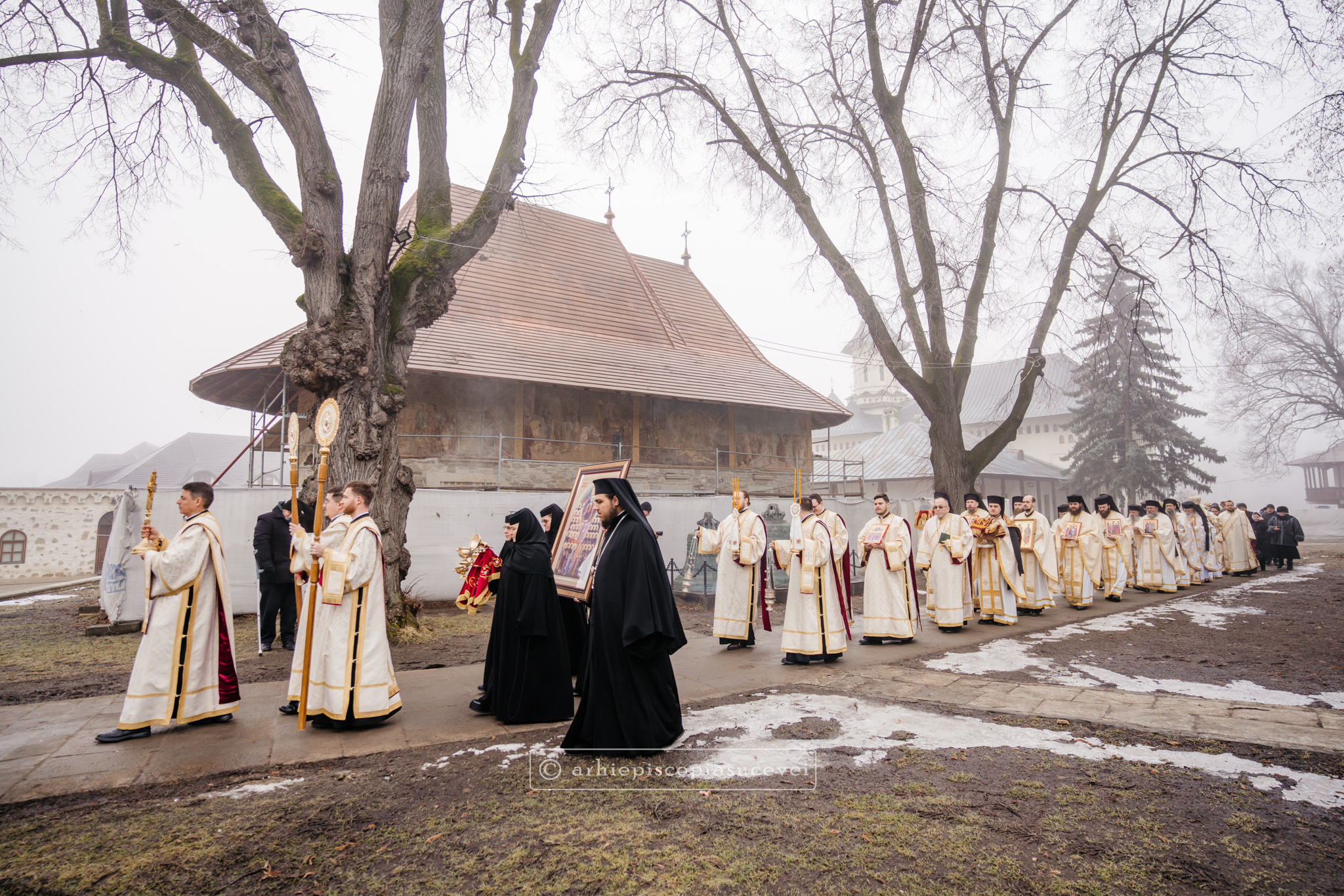 În amintirea biruinței Ortodoxiei asupra iconoclasmului la Sinodul al VII-lea Ecumenic, după Sfânta Liturghie a avut loc o procesiune cu Sfintele Icoane spre Paraclisul Mănăstirii „Sfântul Ioan cel Nou”. Ierarhii, preoții, diaconii și credincioșii au adus slavă lui Dumnezeu și tuturor celor care au luptat pentru cinstirea sfintelor icoane. Odoarele au fost purtate în mâini de cei prezenți în semn de mărturisire a importanței cultului icoanei în viața Bisericii. După ce s-au închinat la racla cu moaștele întregi ale Sfântului Mare Mucenic Ioan cel Nou, credincioșii au primit în dar iconițe cu reprezentarea Soborului Sfintelor Femei Românce, icoana Anului Omagial 2026.