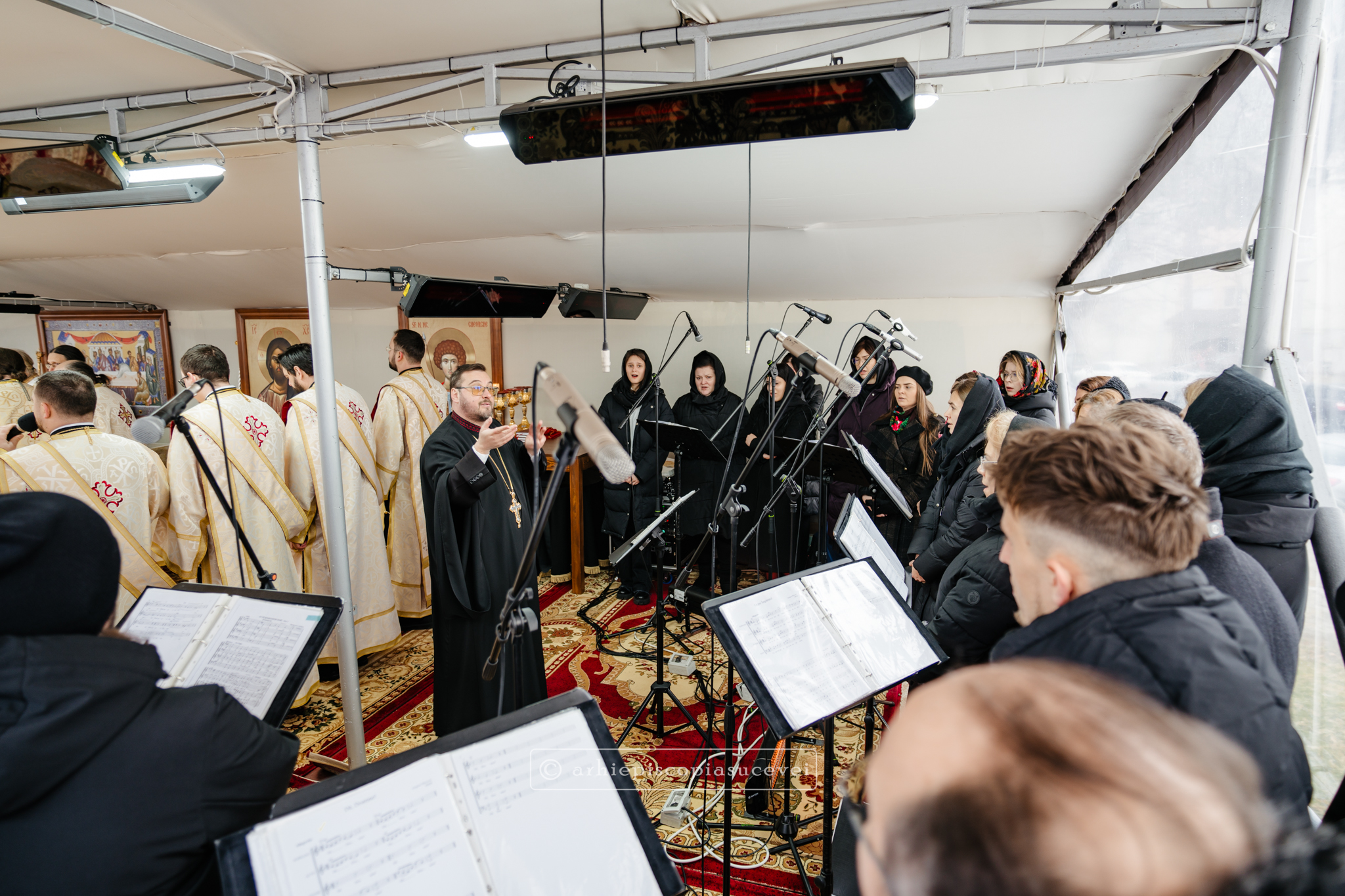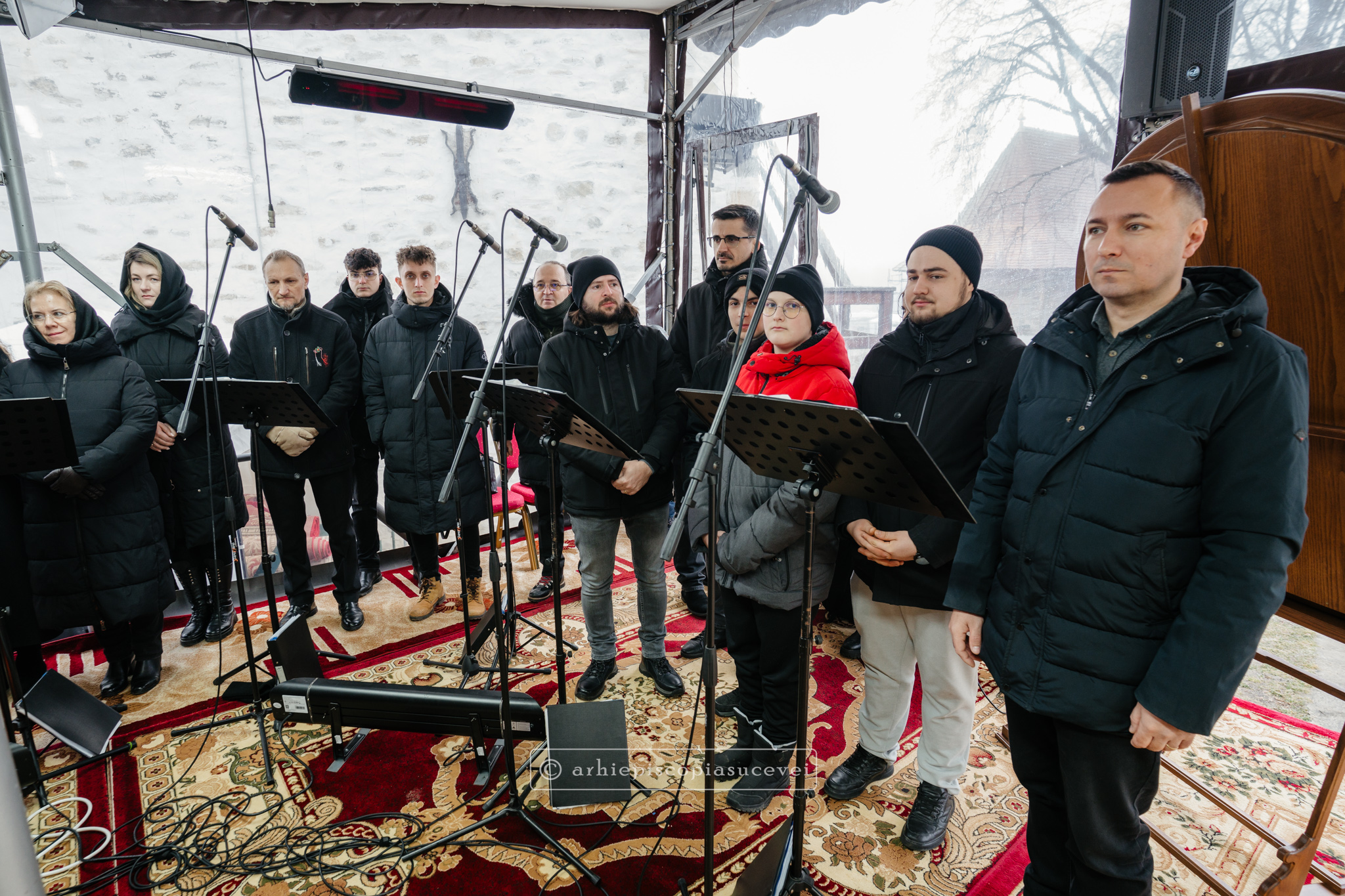 În incinta așezământului monahal care îi are ca ocrotitori pe Sfinții Mari Mucenici Ioan cel Nou și Gheorghe, purtătorul de biruință, au răsunat răspunsurile liturgice oferite de corul mixt al Catedralei Arhiepiscopale din Suceava, dirijat de părintele Ionuț Lucian Tablan Popescu,