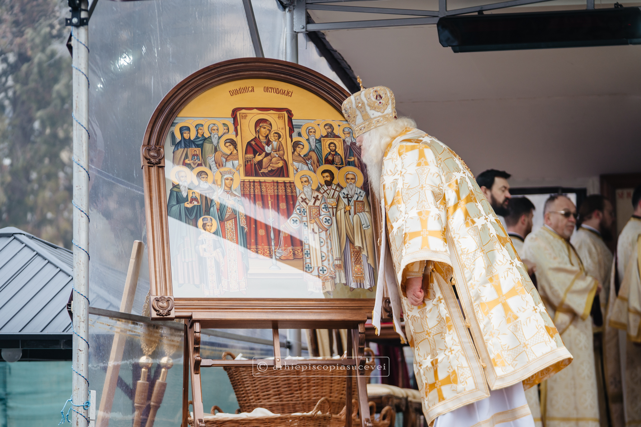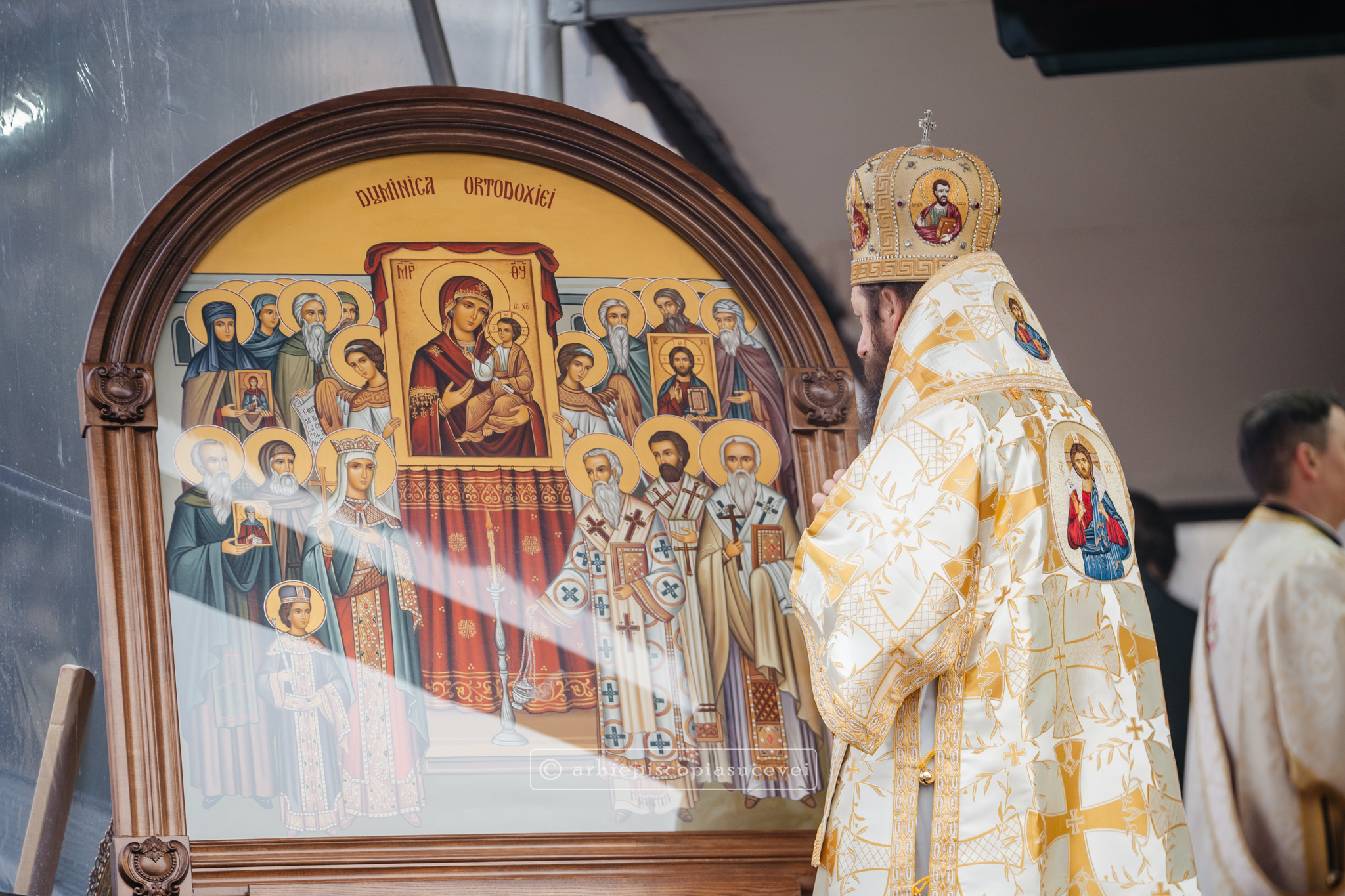 „În prima duminică a Postului Sfintelor Paști, ce ne aduce aminte de încununarea efortului Sinoadelor Ecumenice de limpezire a exprimărilor dreptei credinţe, întemeiată pe învăţătura Mântuitorului Hristos, Calea, Adevărul şi Viaţa, Înaltpreasfințitul Părinte Calinic, Arhiepiscop al Sucevei și Rădăuților, a adresat prin intermediul Decalogului la Duminica Ortodoxiei îndemnul de a (re)afirma cultul sfintelor icoane, teofanii ale inexprimabilului și spaţiu haric de întâlnire cu Dumnezeu şi cu sfinţii Săi.”