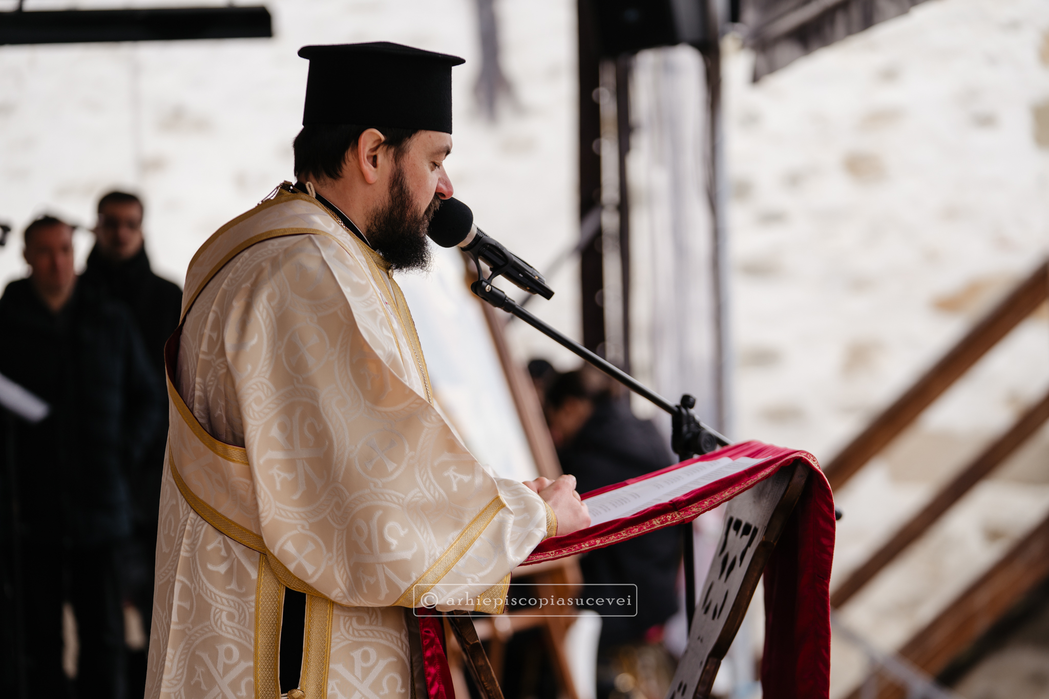 La finalul Sfintei Liturghii, arhid. Bogdan-Mihai Hrișcă, director al Liceului Teologic „Mitropolitul Dosoftei” din Suceava, a dat citire mesajului pastoral transmis în anul Domnului 2026 de către membrii Sfântului Sinod al Bisericii Ortodoxe Române, cu ocazia primei duminici din Postul Mare.