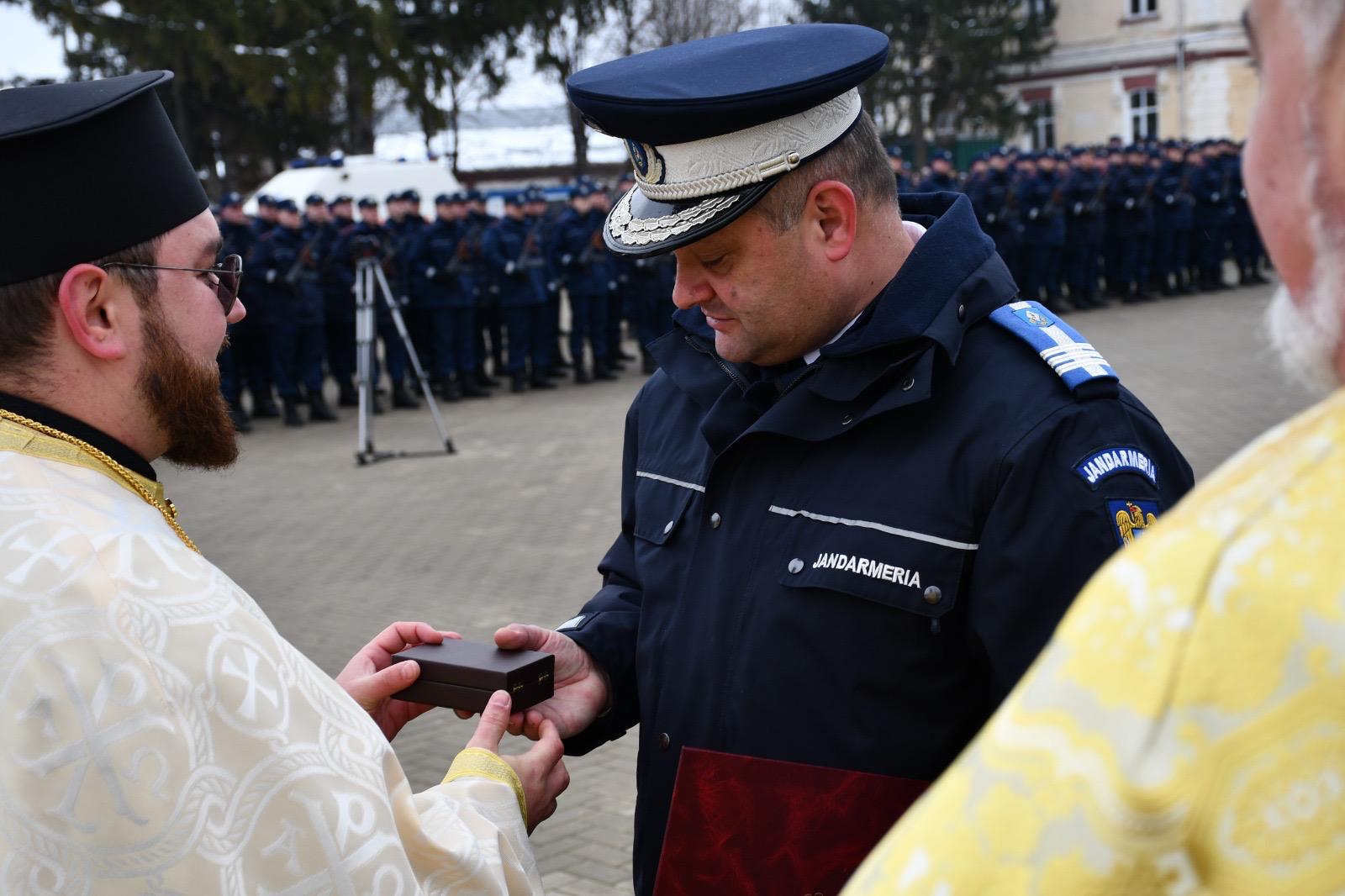 Vineri, 20 februarie a.c., o nouă serie de elevi jandarmi ai Școlii Militare de Subofițeri de Jandarmi „Petru Rareș” Fălticeni a depus jurământul militar. Cu binecuvântarea Înaltpreasfințitului Părinte Calinic, Arhiepiscop al Sucevei și Rădăuților, slujba religioasă de sacralizare a jurământului a fost oficiată de PC Pr. Andrei Mocanu, consilier eparhial la Sectorul de Asistență Socială și Medicală, împreună cu PC Pr. Tiberiu Bardan, inspector eparhial pentru asistența religioasă, preotul militar (r) Simion Gheorghe Cătălin – Școala Militară de Subofițeri de Jandarmi „Petru Rareș” Fălticeni, precum și preotul militar Radu Nicolau Șerban – Inspectoratul de Jandarmi „Bogdan Vodă” Suceava.