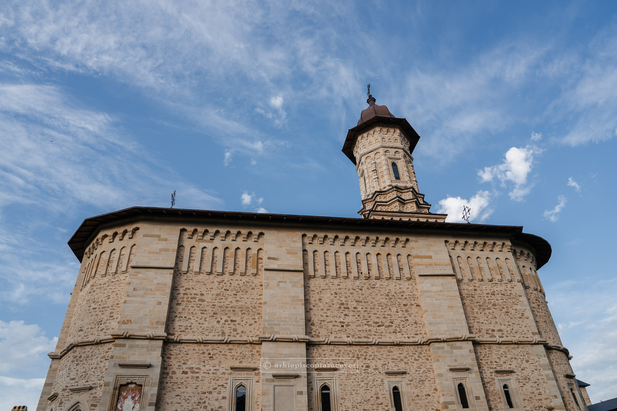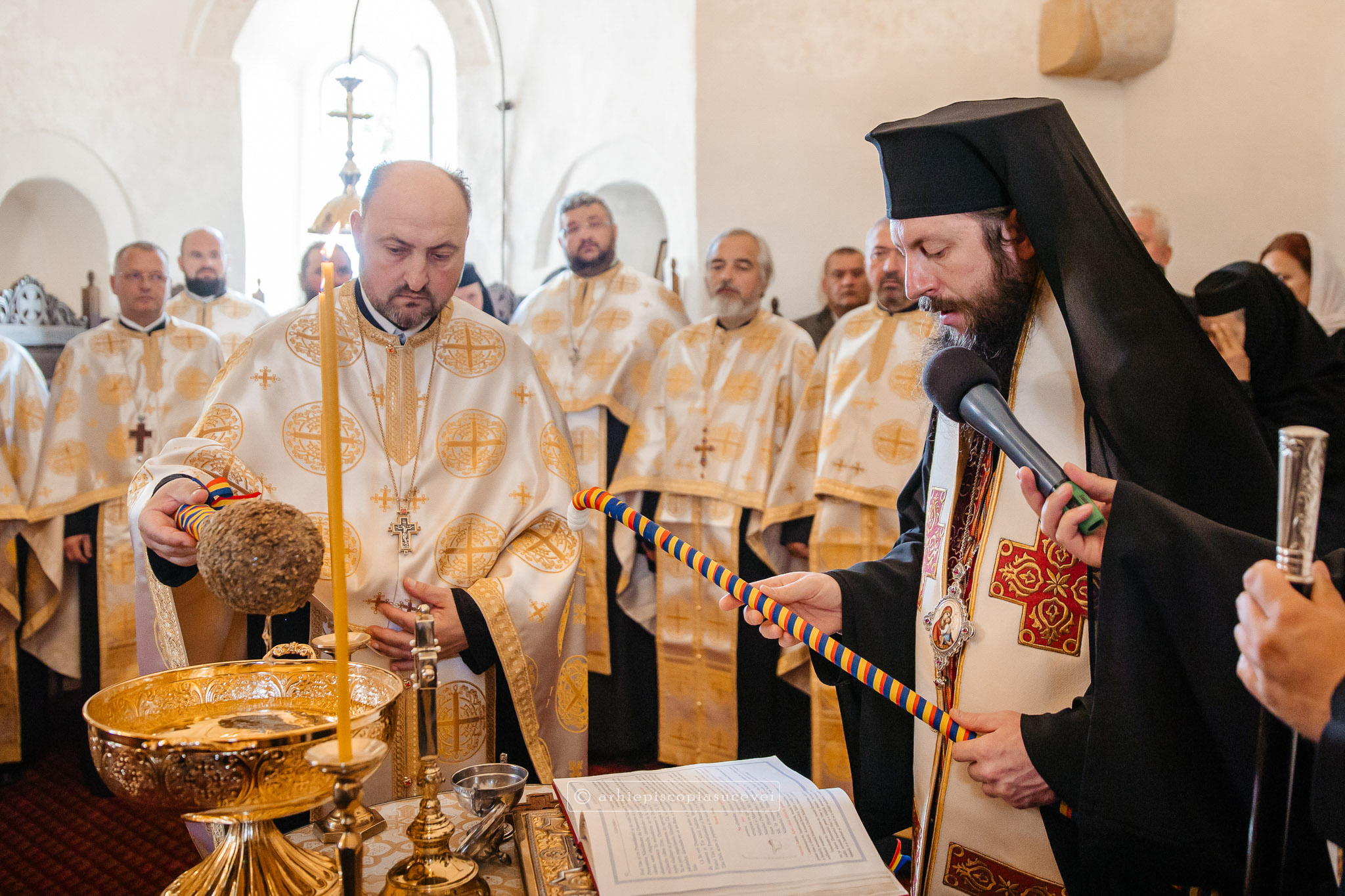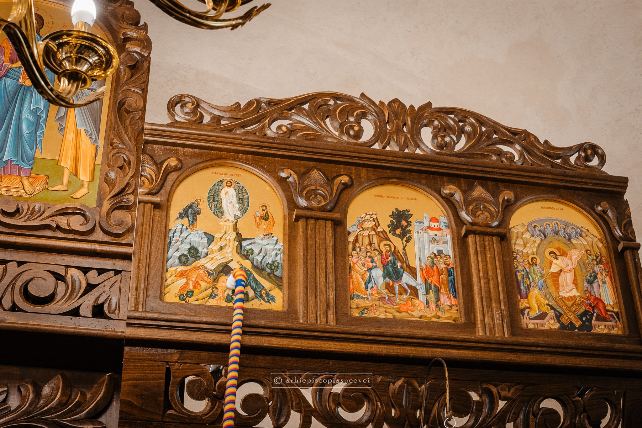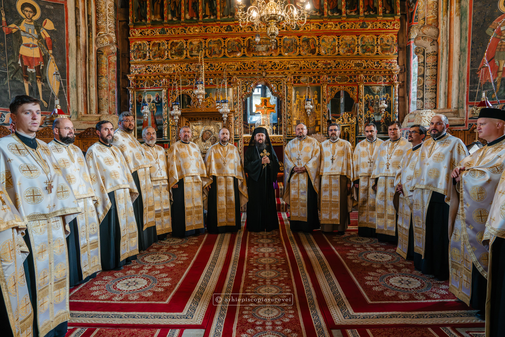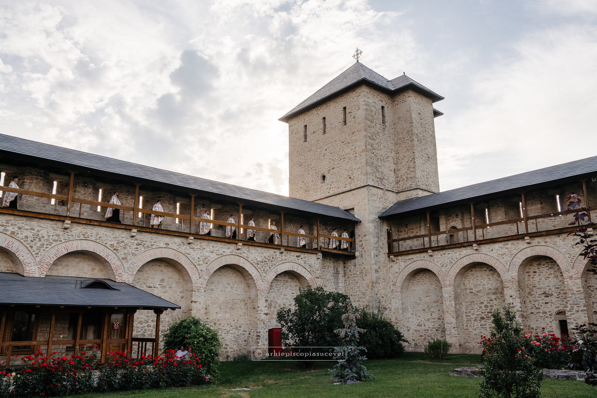 Slujba de târnosire a fost săvârșită de Preasfințitul Damaschin Dorneanul, Episcop-Vicar al Arhiepiscopiei Sucevei și Rădăuților, înconjurat de un sobor de preoți, sub protia pr. Doru-Ionel Budeanu, protoiereu al Protopopiatului Suceava I, din care au făcut parte clerici de la Centrul Eparhial Suceava, precum și invitați ai maicii starețe, stavrofora Maria Magdalena Gherghina. Lor li s-au alăturat monahiile care se vor odihni aici duhovnicește, la ceas de Laudă bisericească ori de Liturghie, unind rucodelia zilei cu rugăciunea către Dumnezeu, precum și oaspeți eleni, între care arhim. Kallinikos Georgakopoulos, vicar administrativ al Mitropoliei Dimitriadelor, Grecia. La momentul îndătinat din slujbă, icoanele de pe catapeteasma sfântului lăcaș au fost binecuvântate prin stropirea cu apă sfințită și ungerea cu Sfântul și Marele Mir.