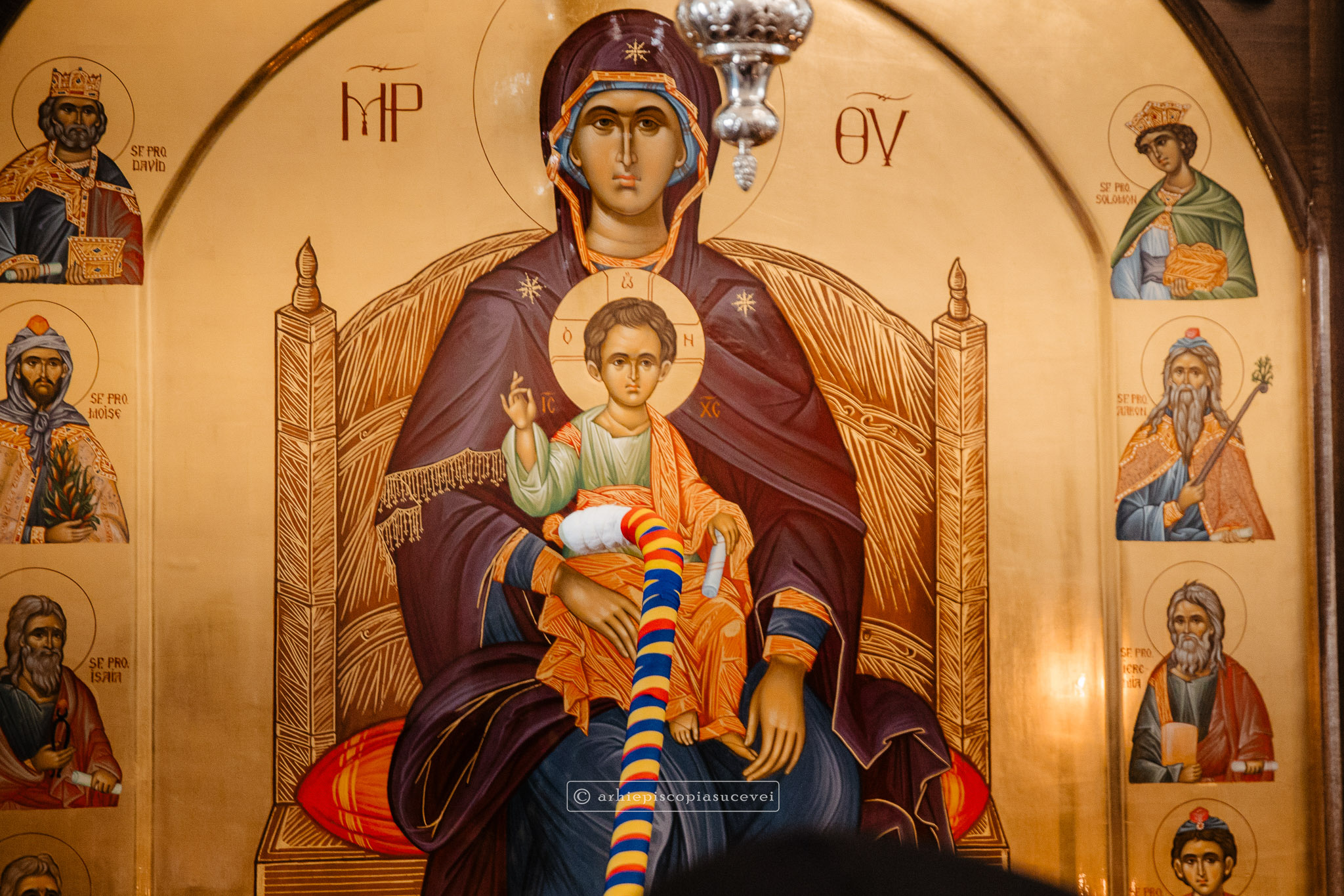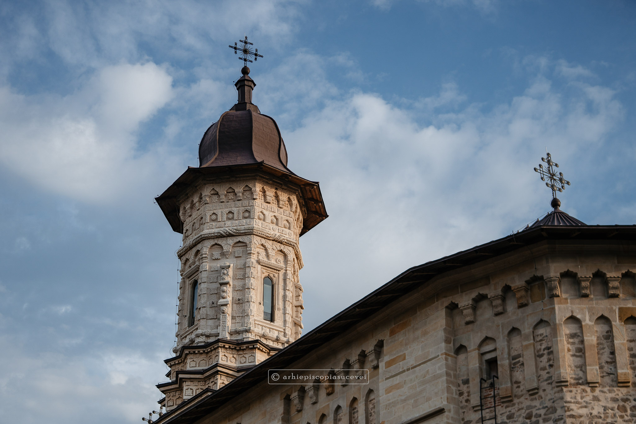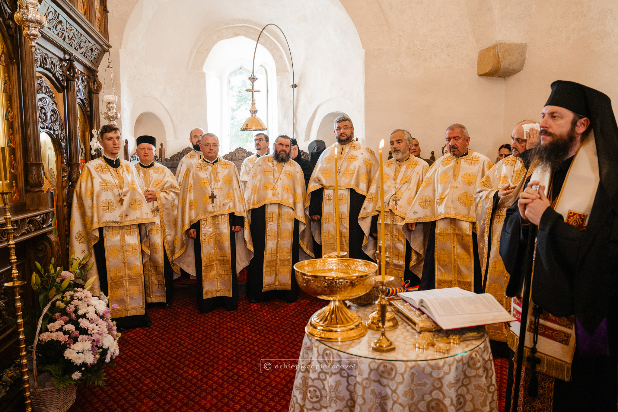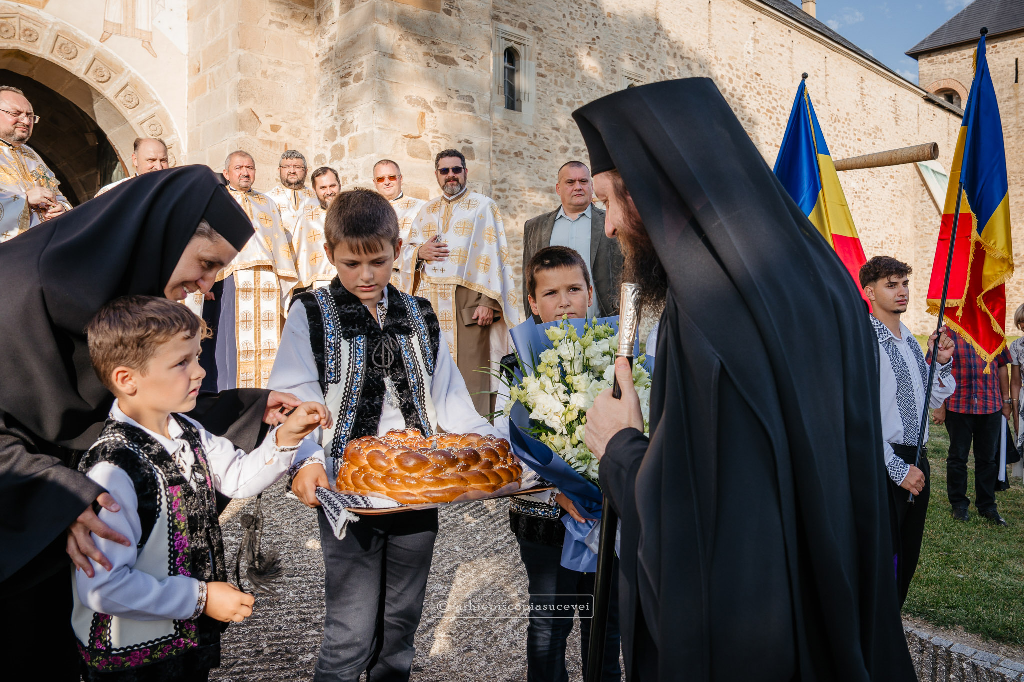 Slujba de târnosire a fost săvârșită de Preasfințitul Damaschin Dorneanul, Episcop-Vicar al Arhiepiscopiei Sucevei și Rădăuților, înconjurat de un sobor de preoți, sub protia pr. Doru-Ionel Budeanu, protoiereu al Protopopiatului Suceava I, din care au făcut parte clerici de la Centrul Eparhial Suceava, precum și invitați ai maicii starețe, stavrofora Maria Magdalena Gherghina. Lor li s-au alăturat monahiile care se vor odihni aici duhovnicește, la ceas de Laudă bisericească ori de Liturghie, unind rucodelia zilei cu rugăciunea către Dumnezeu, precum și oaspeți eleni, între care arhim. Kallinikos Georgakopoulos, vicar administrativ al Mitropoliei Dimitriadelor, Grecia. La momentul îndătinat din slujbă, icoanele de pe catapeteasma sfântului lăcaș au fost binecuvântate prin stropirea cu apă sfințită și ungerea cu Sfântul și Marele Mir.