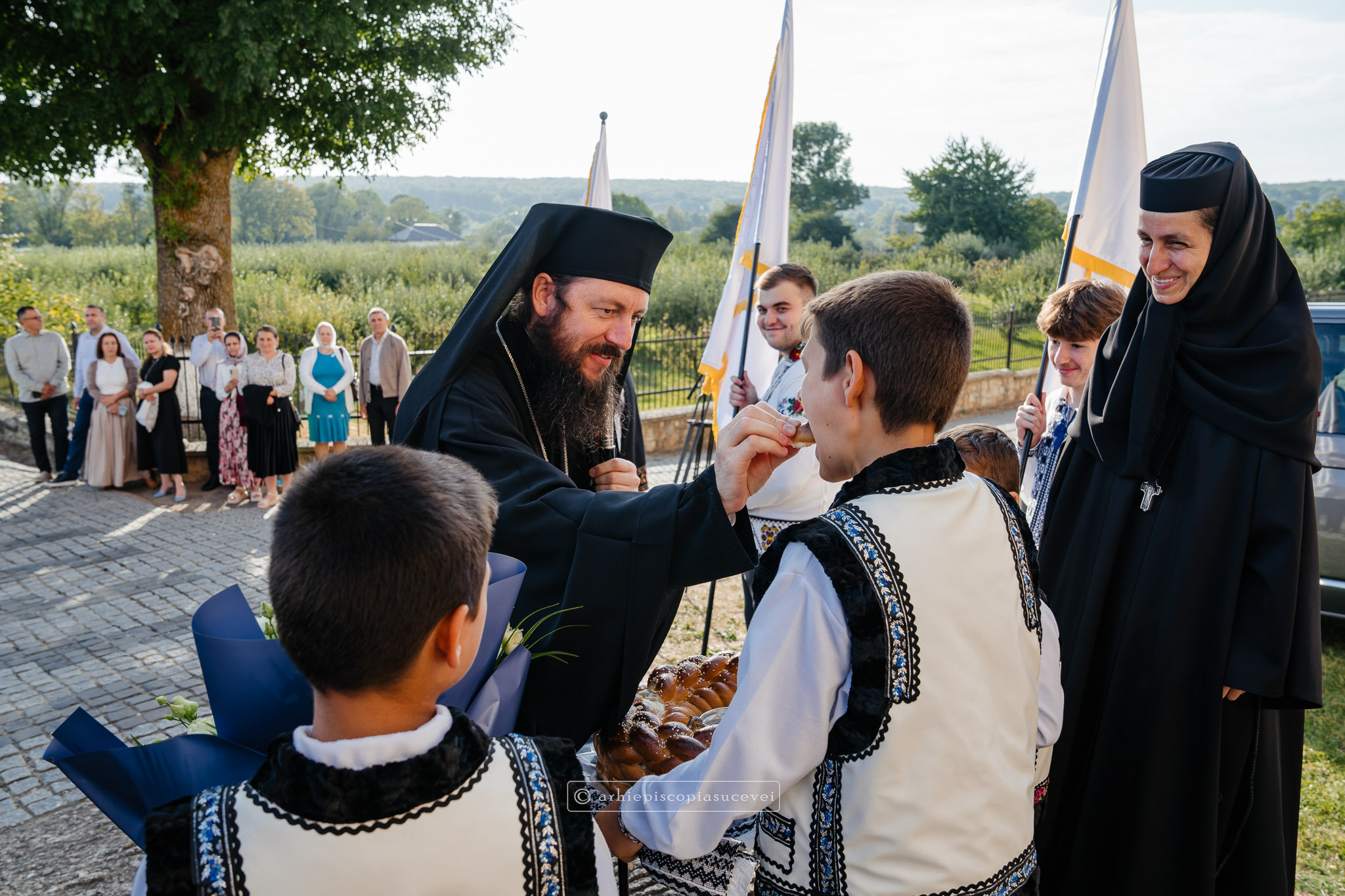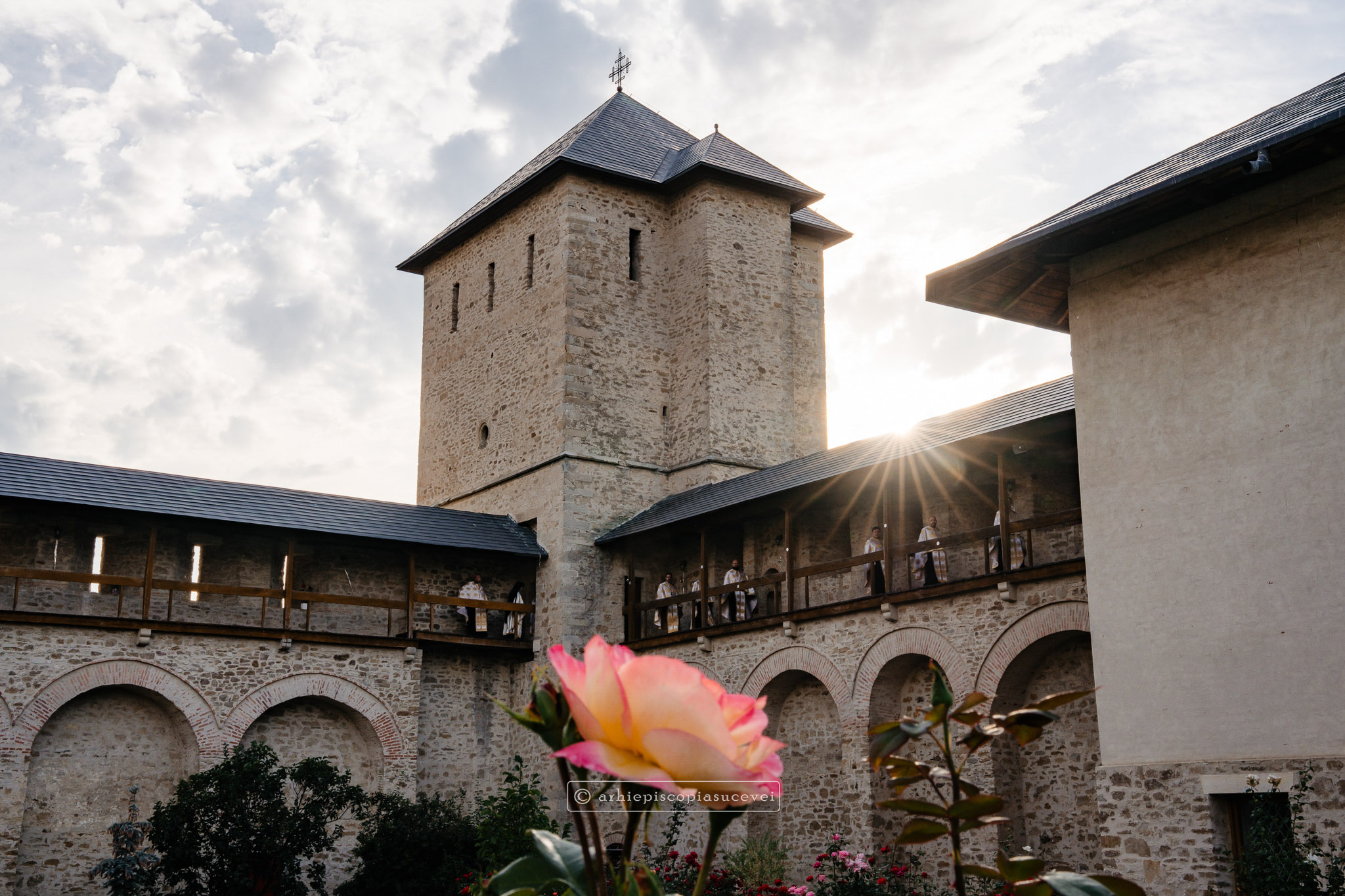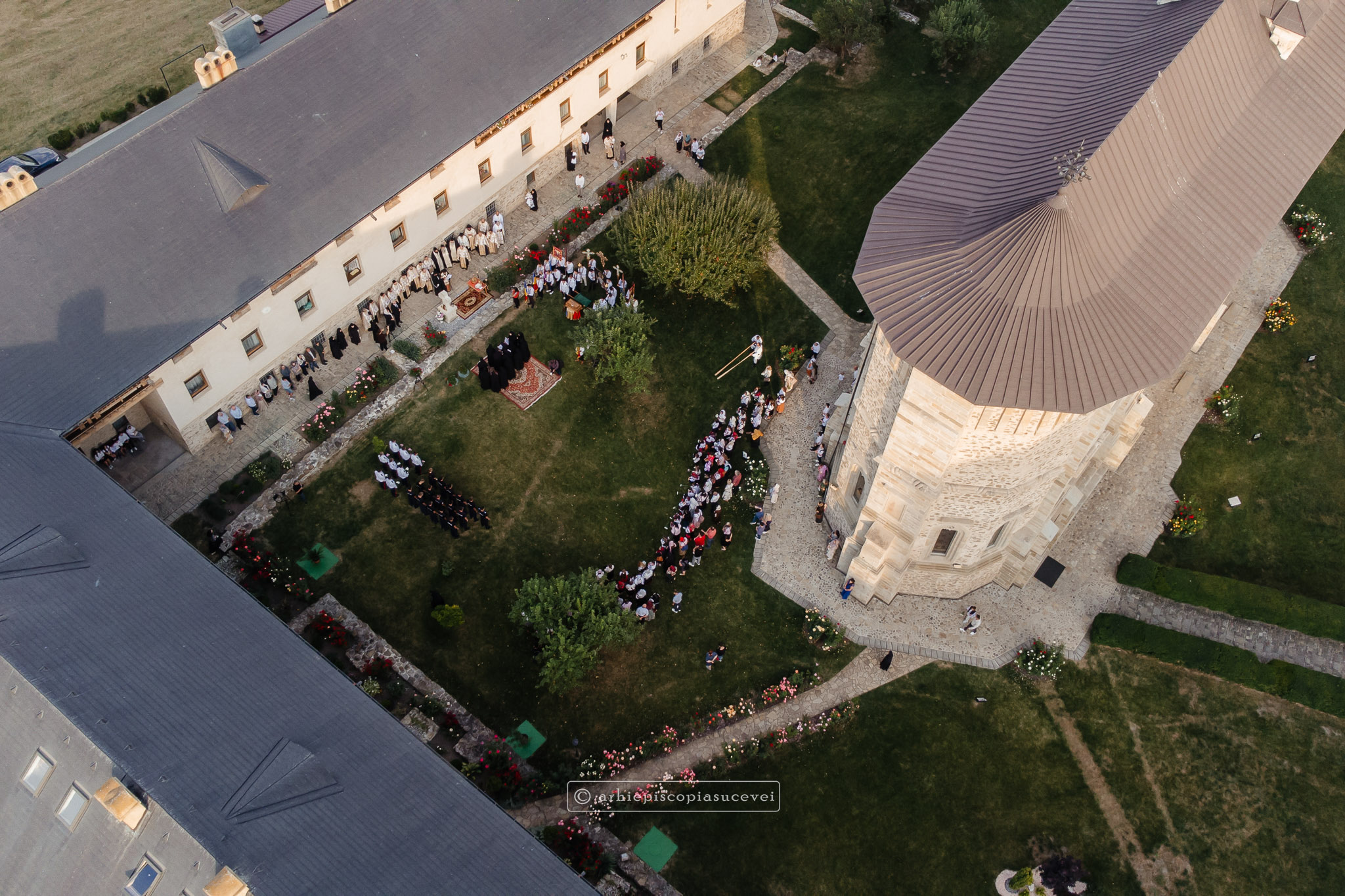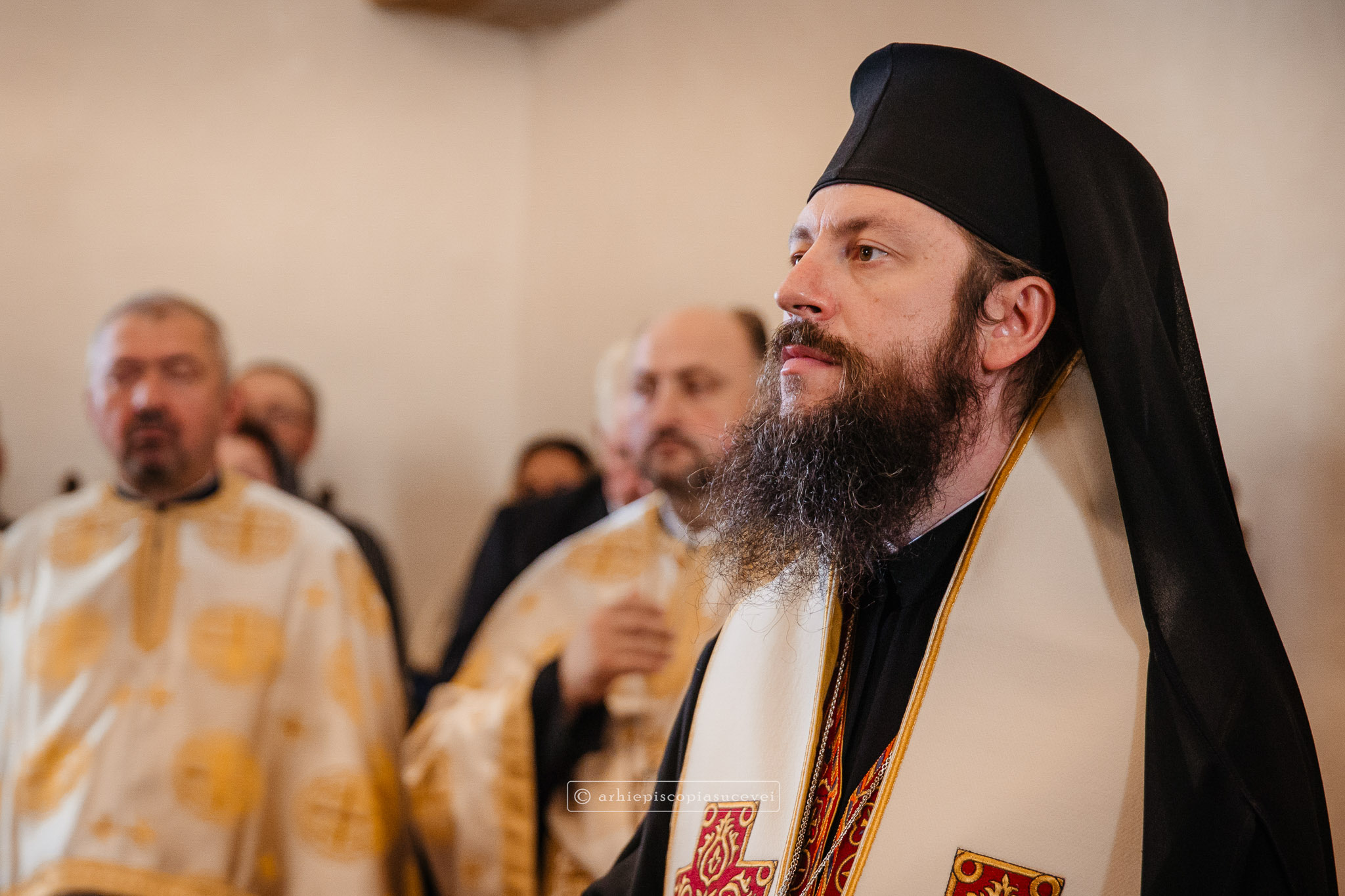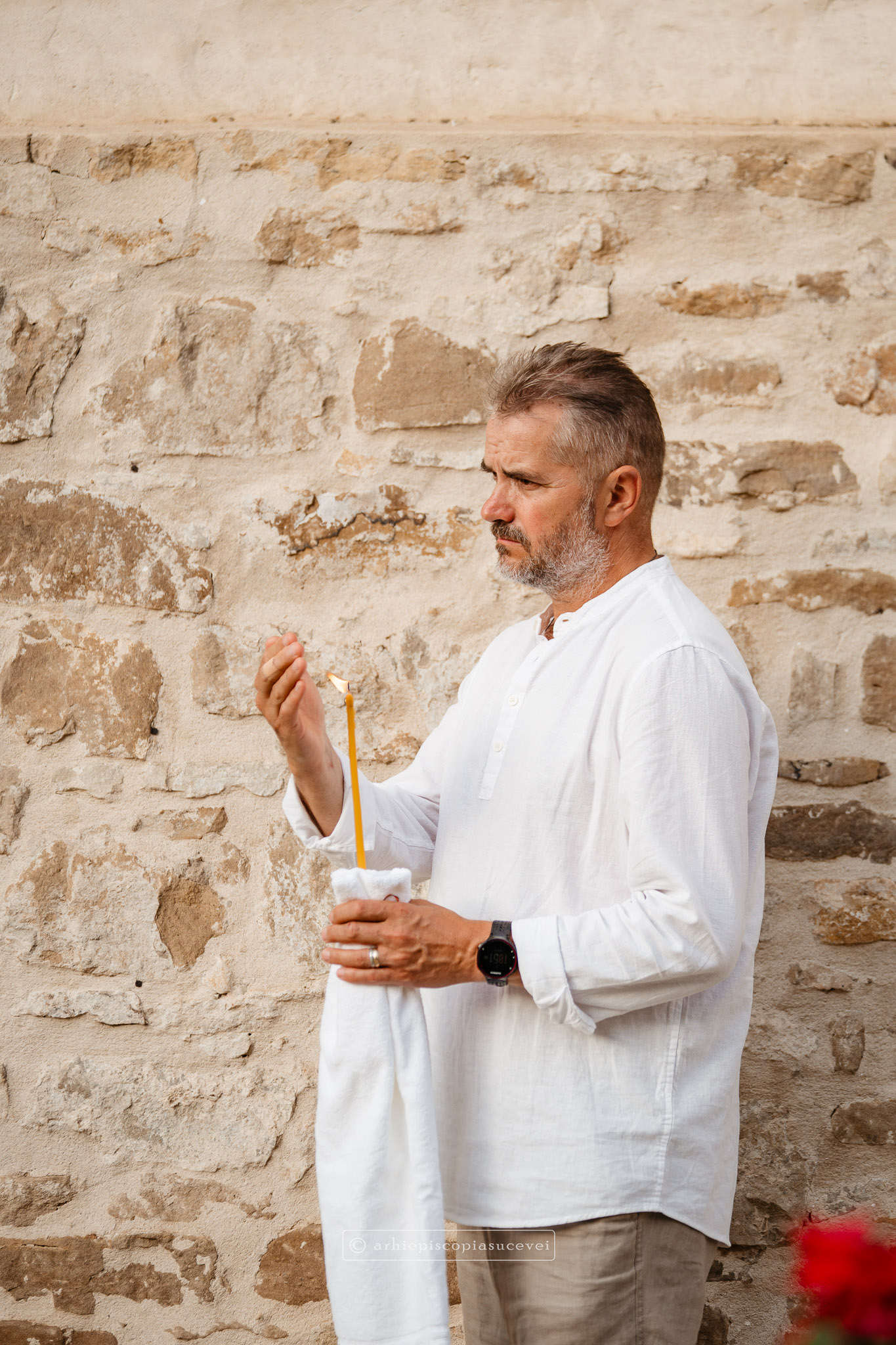 Slujba de târnosire a fost săvârșită de Preasfințitul Damaschin Dorneanul, Episcop-Vicar al Arhiepiscopiei Sucevei și Rădăuților, înconjurat de un sobor de preoți, sub protia pr. Doru-Ionel Budeanu, protoiereu al Protopopiatului Suceava I, din care au făcut parte clerici de la Centrul Eparhial Suceava, precum și invitați ai maicii starețe, stavrofora Maria Magdalena Gherghina. Lor li s-au alăturat monahiile care se vor odihni aici duhovnicește, la ceas de Laudă bisericească ori de Liturghie, unind rucodelia zilei cu rugăciunea către Dumnezeu, precum și oaspeți eleni, între care arhim. Kallinikos Georgakopoulos, vicar administrativ al Mitropoliei Dimitriadelor, Grecia. La momentul îndătinat din slujbă, icoanele de pe catapeteasma sfântului lăcaș au fost binecuvântate prin stropirea cu apă sfințită și ungerea cu Sfântul și Marele Mir.