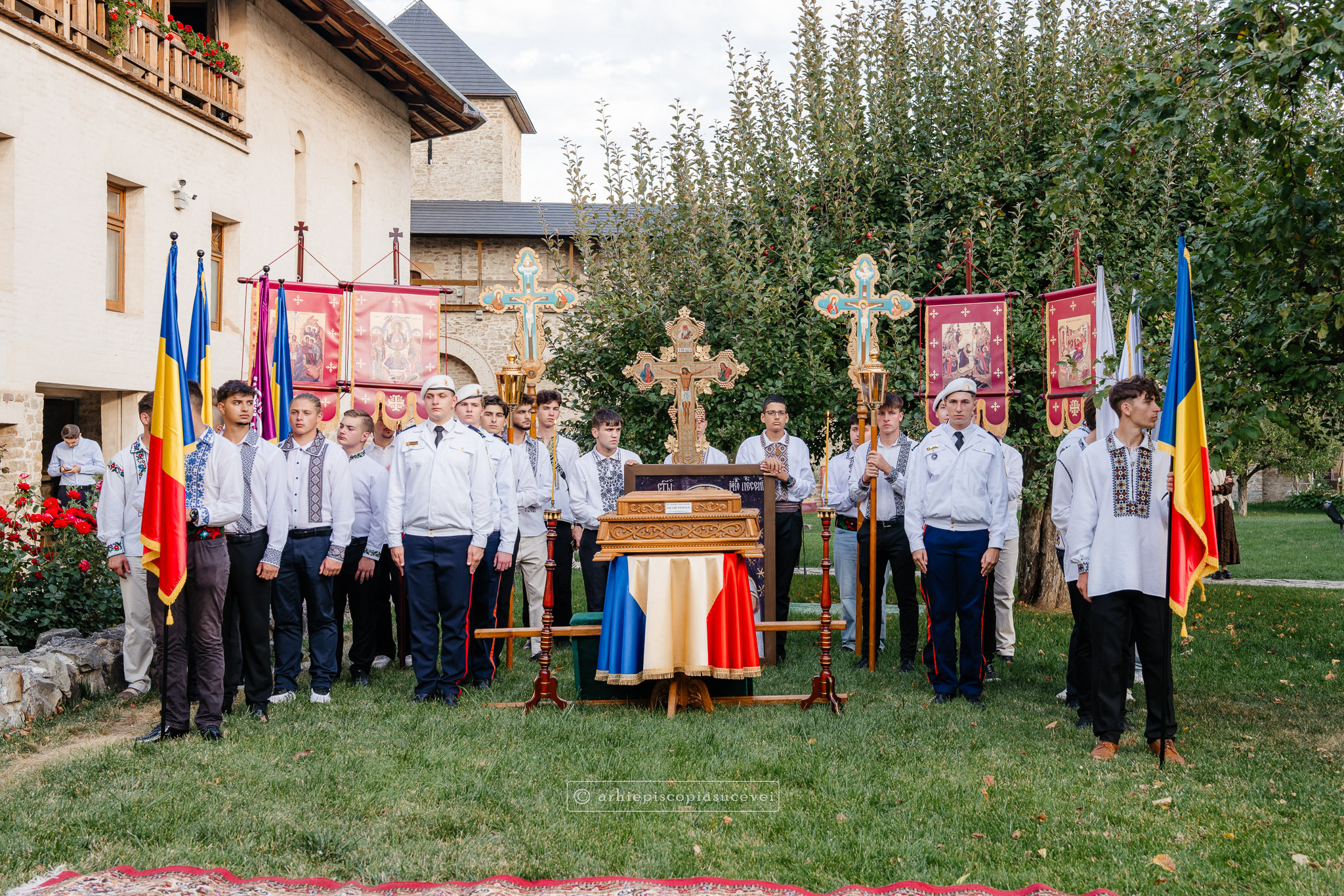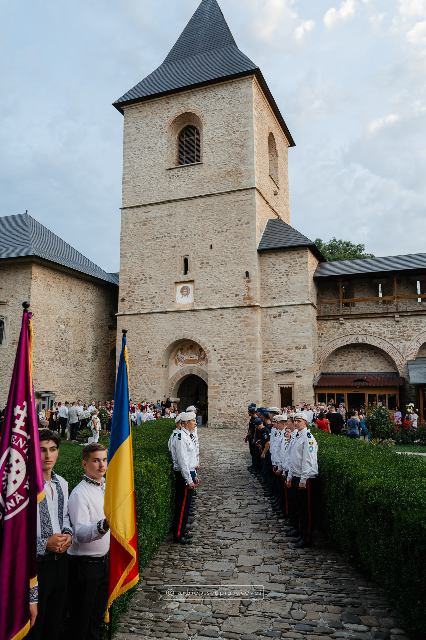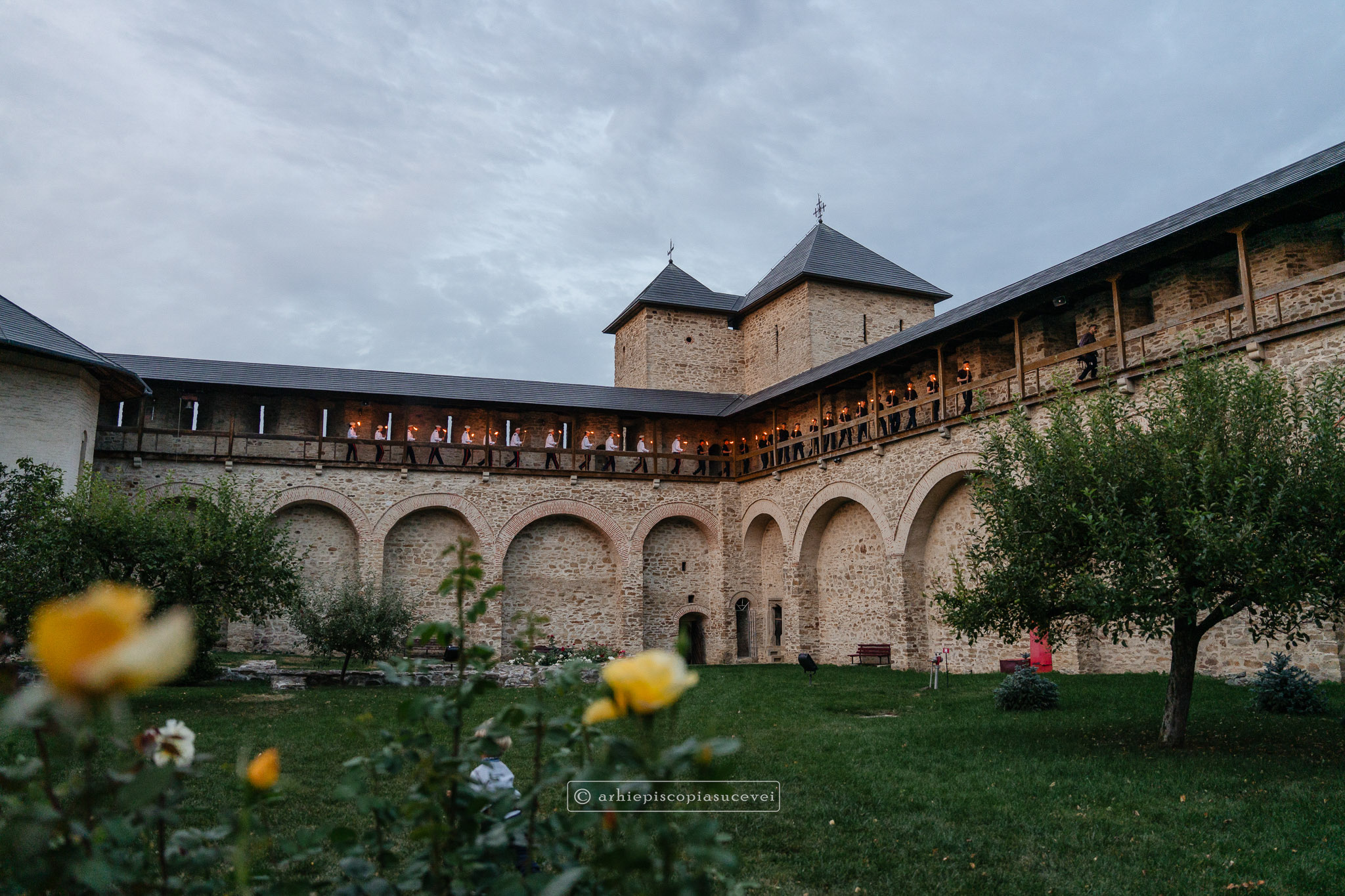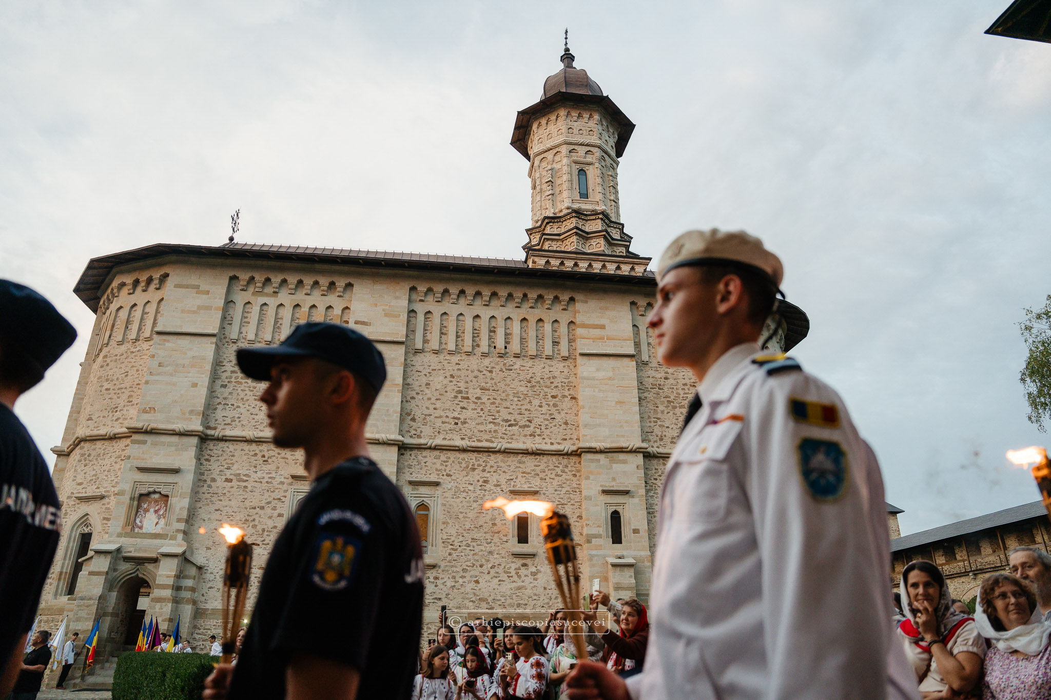 Seara s-a încheiat cu retragerea elevilor de la cele două școli militare cu torțe pe drumul de strajă al Cetății Dragomirnei, moment impresionant prin care au dorit să amintească atât de flacăra rugăciunii nestinse, cât și de vremurile de restriște, când mănăstirea a slujit drept adăpost pentru obște și căpeteniilor țării.