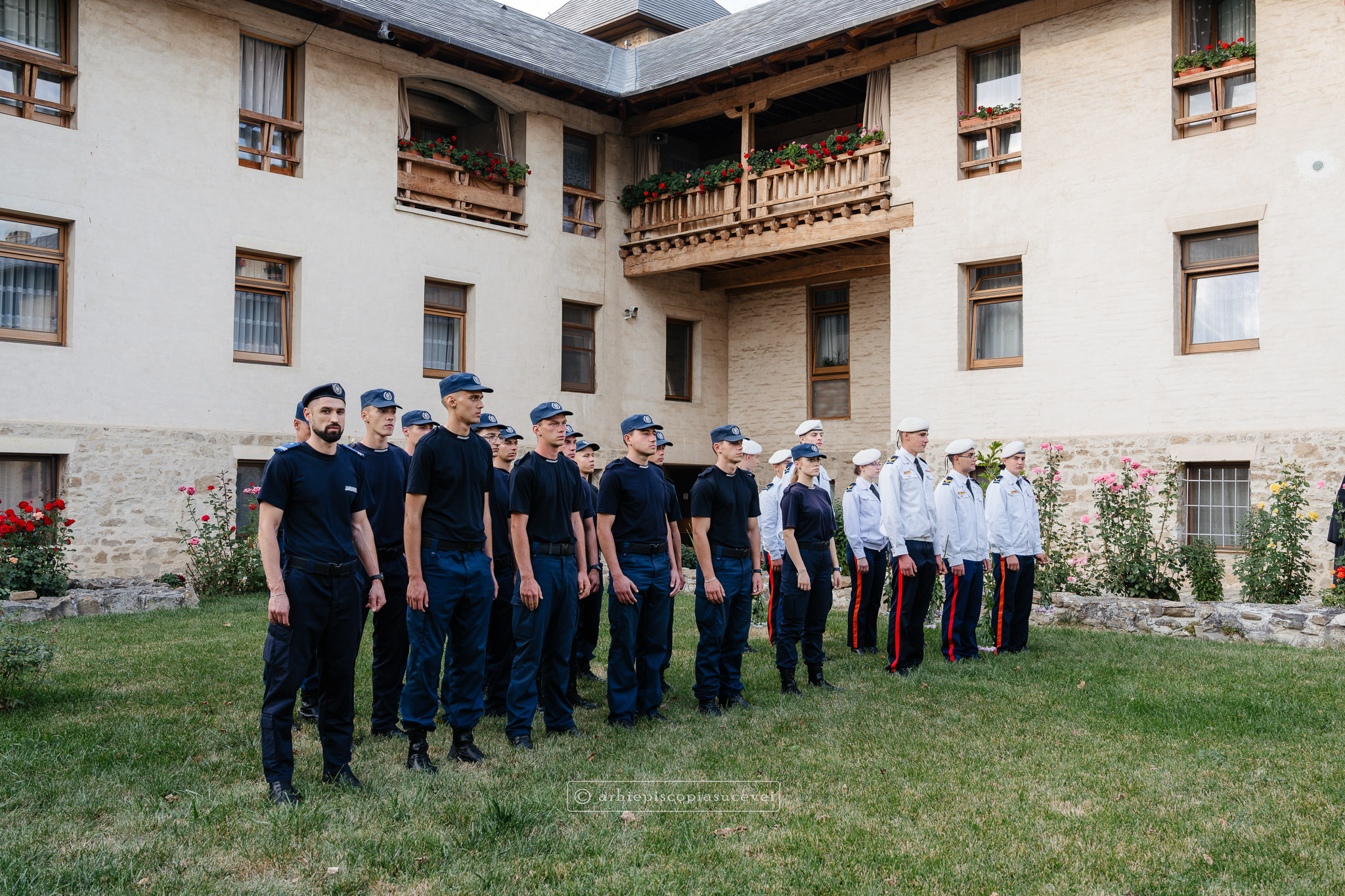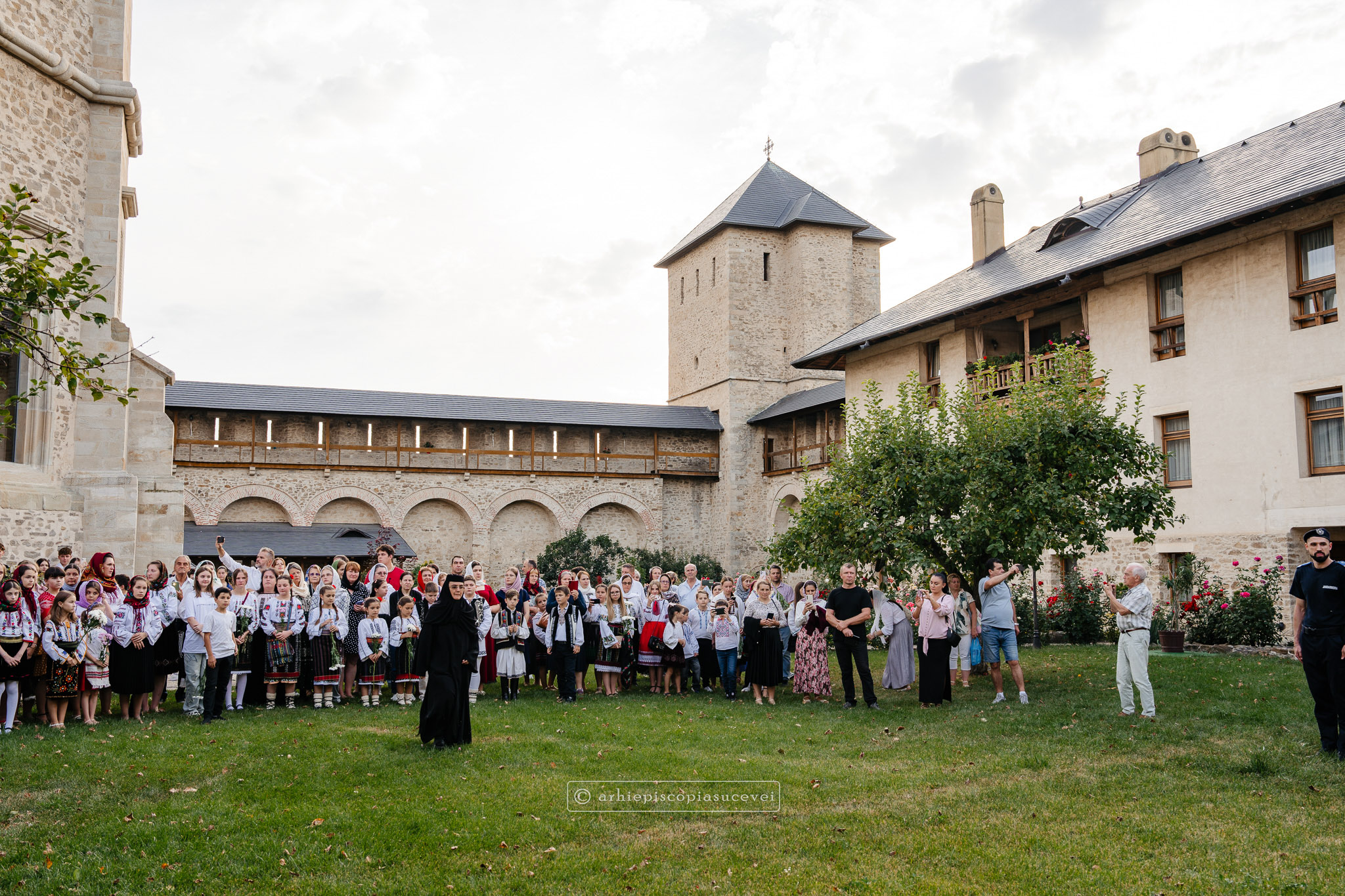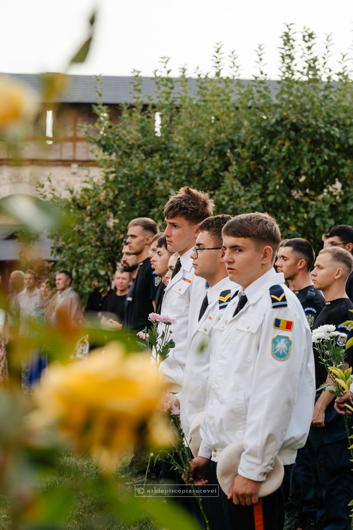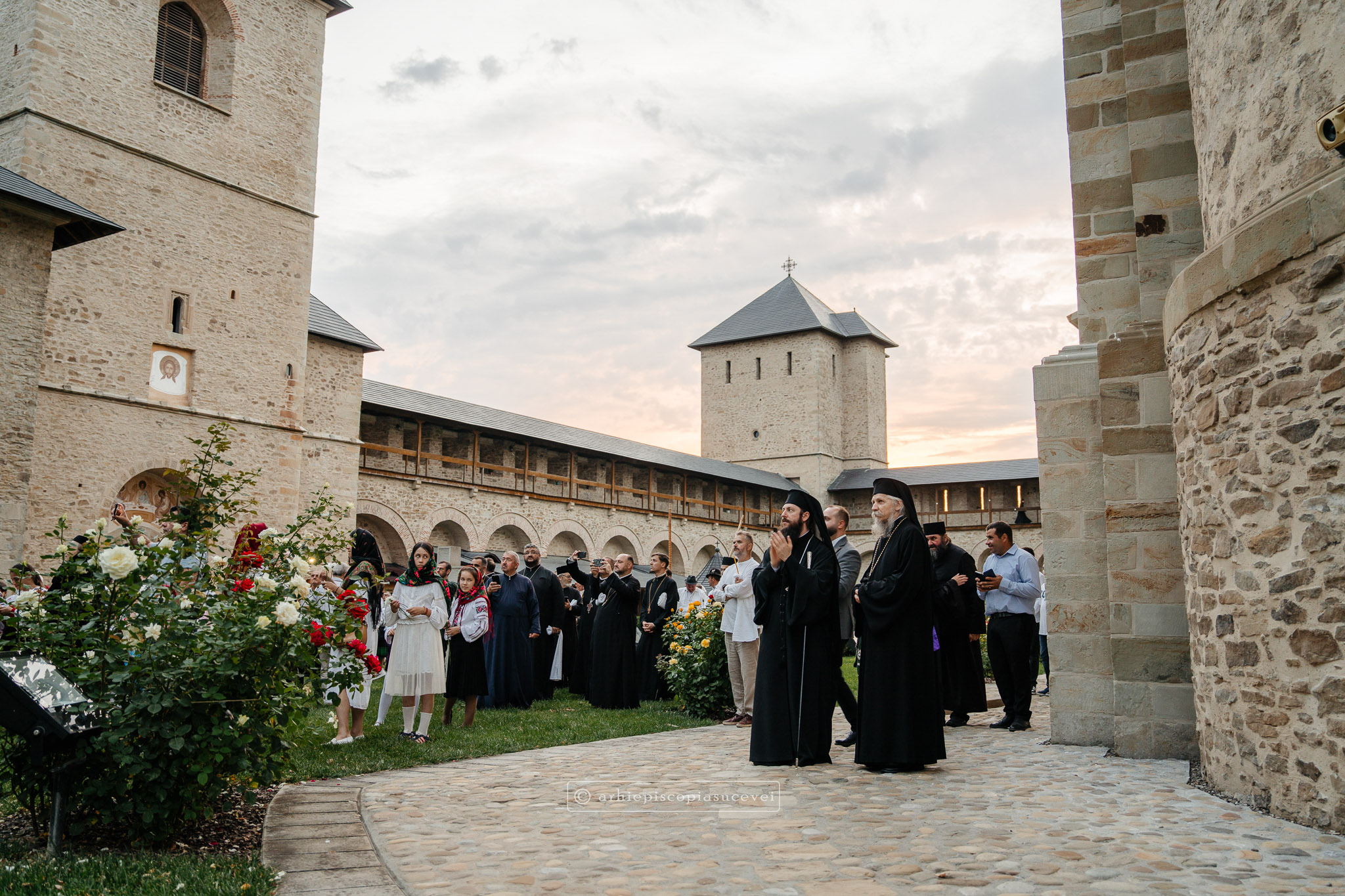 Seara s-a încheiat cu retragerea elevilor de la cele două școli militare cu torțe pe drumul de strajă al Cetății Dragomirnei, moment impresionant prin care au dorit să amintească atât de flacăra rugăciunii nestinse, cât și de vremurile de restriște, când mănăstirea a slujit drept adăpost pentru obște și căpeteniilor țării.
